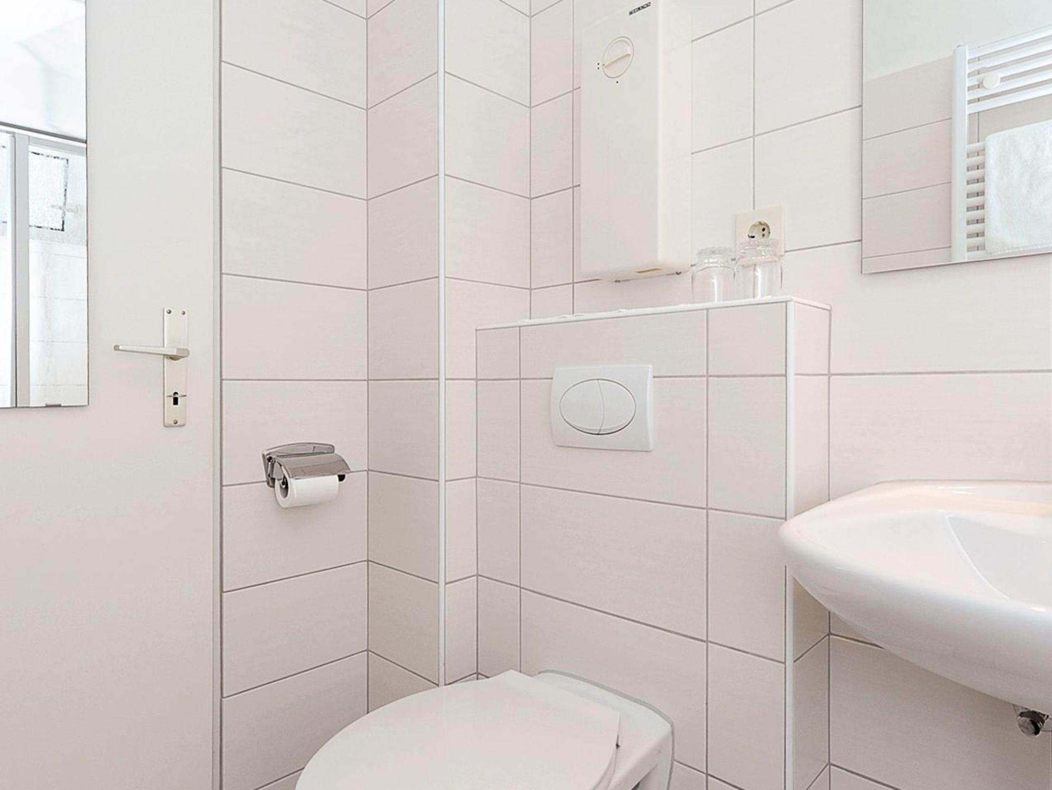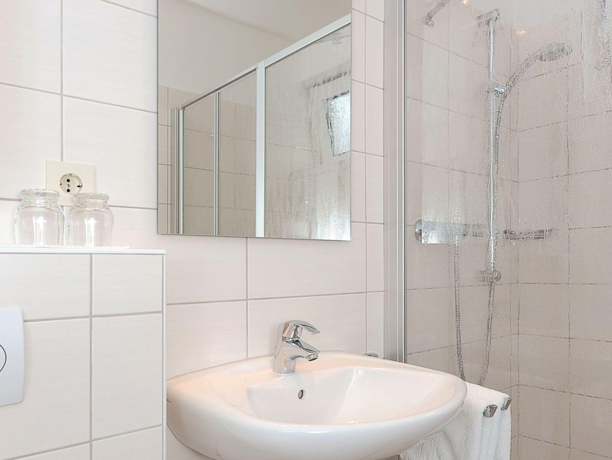 Badezimmer mit Dusche, Waschtisch und WC