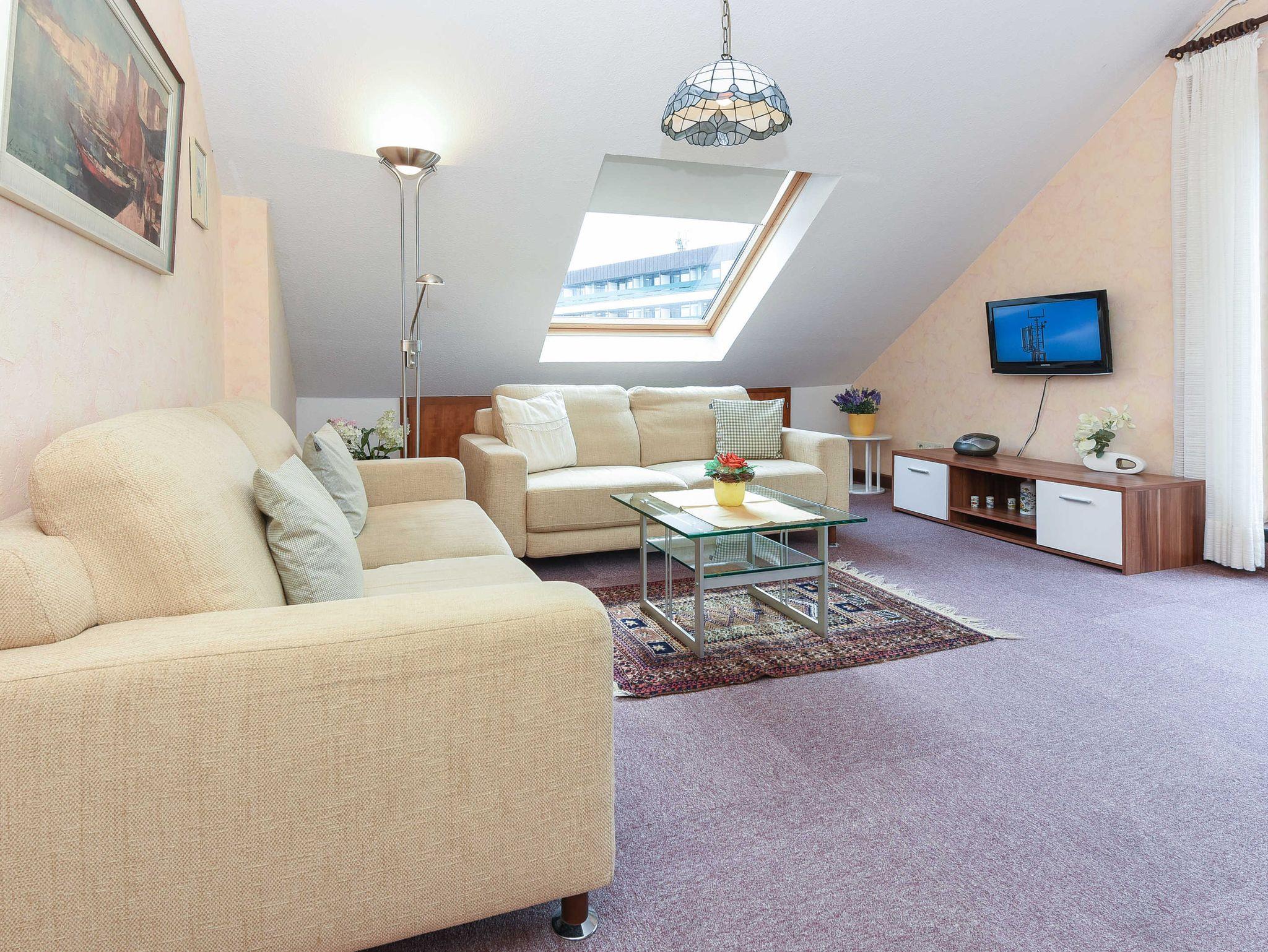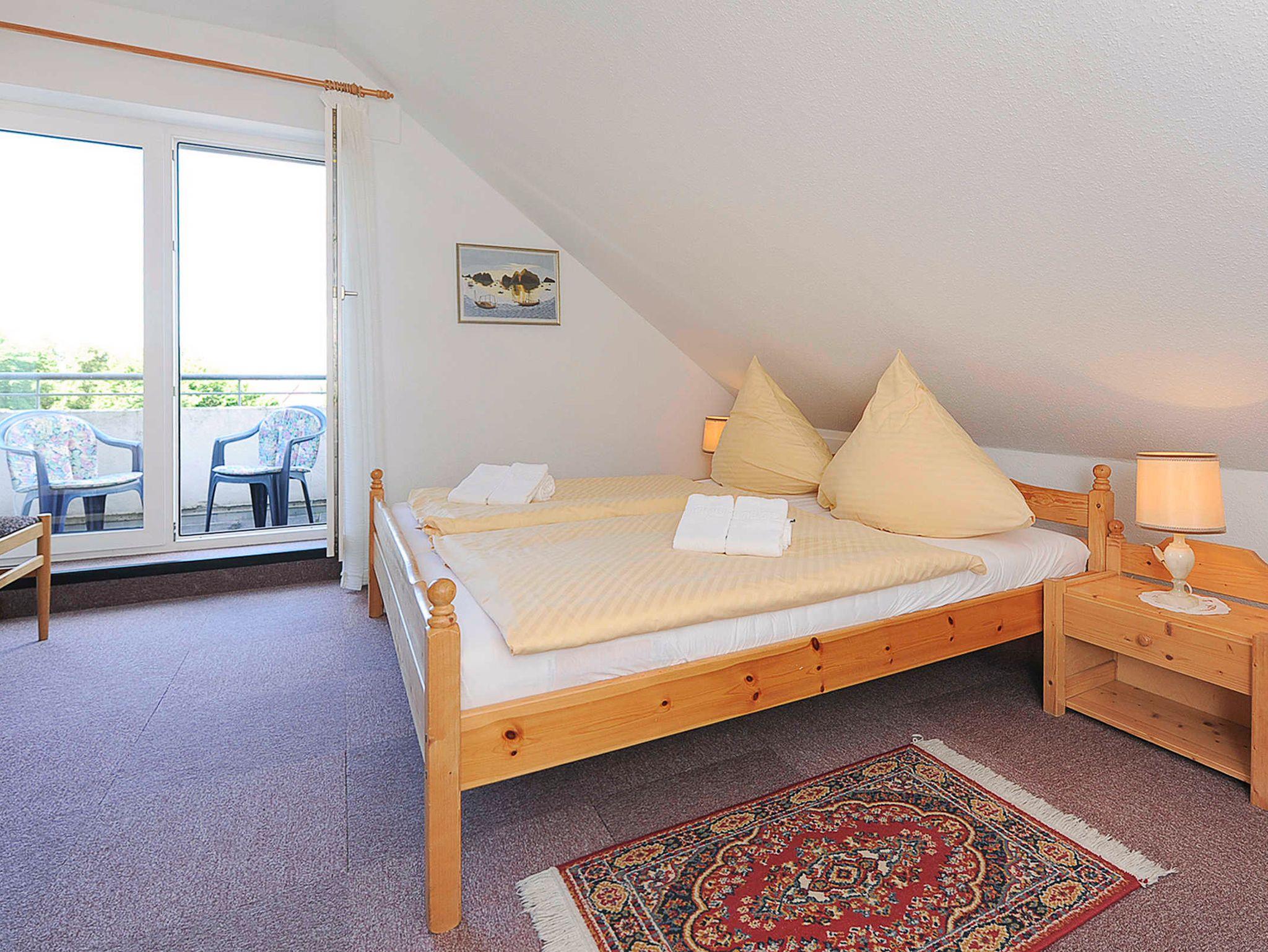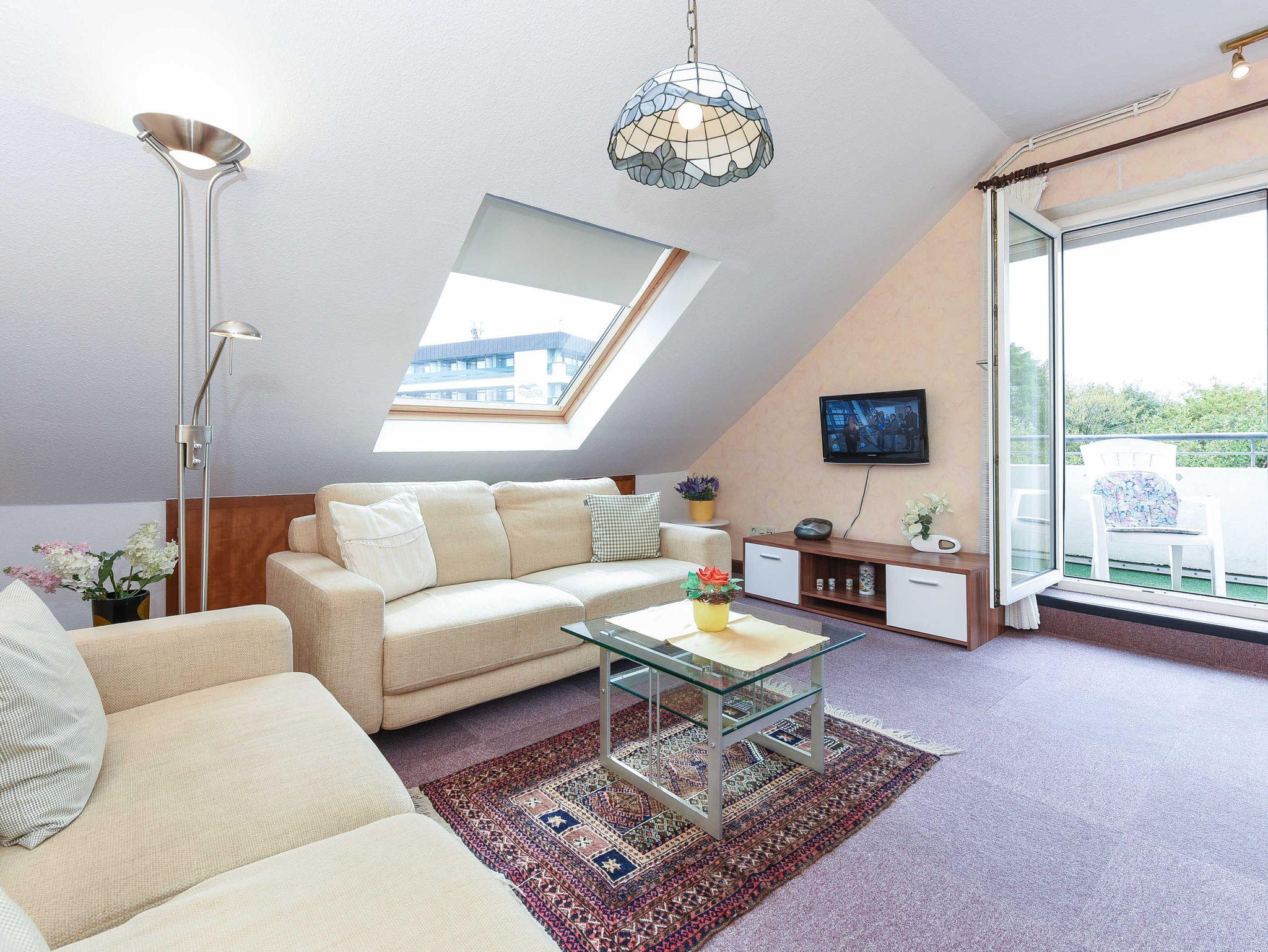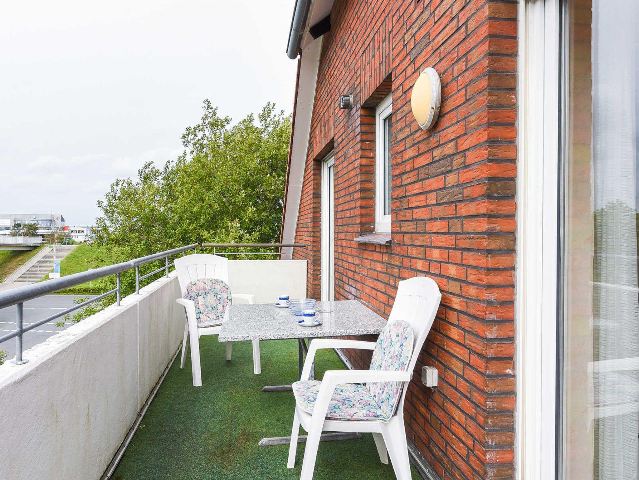 Vom Balkon aus haben Sie einen herrlichen Blick auf die Nordsee, Strand, Inseln und Hafen.