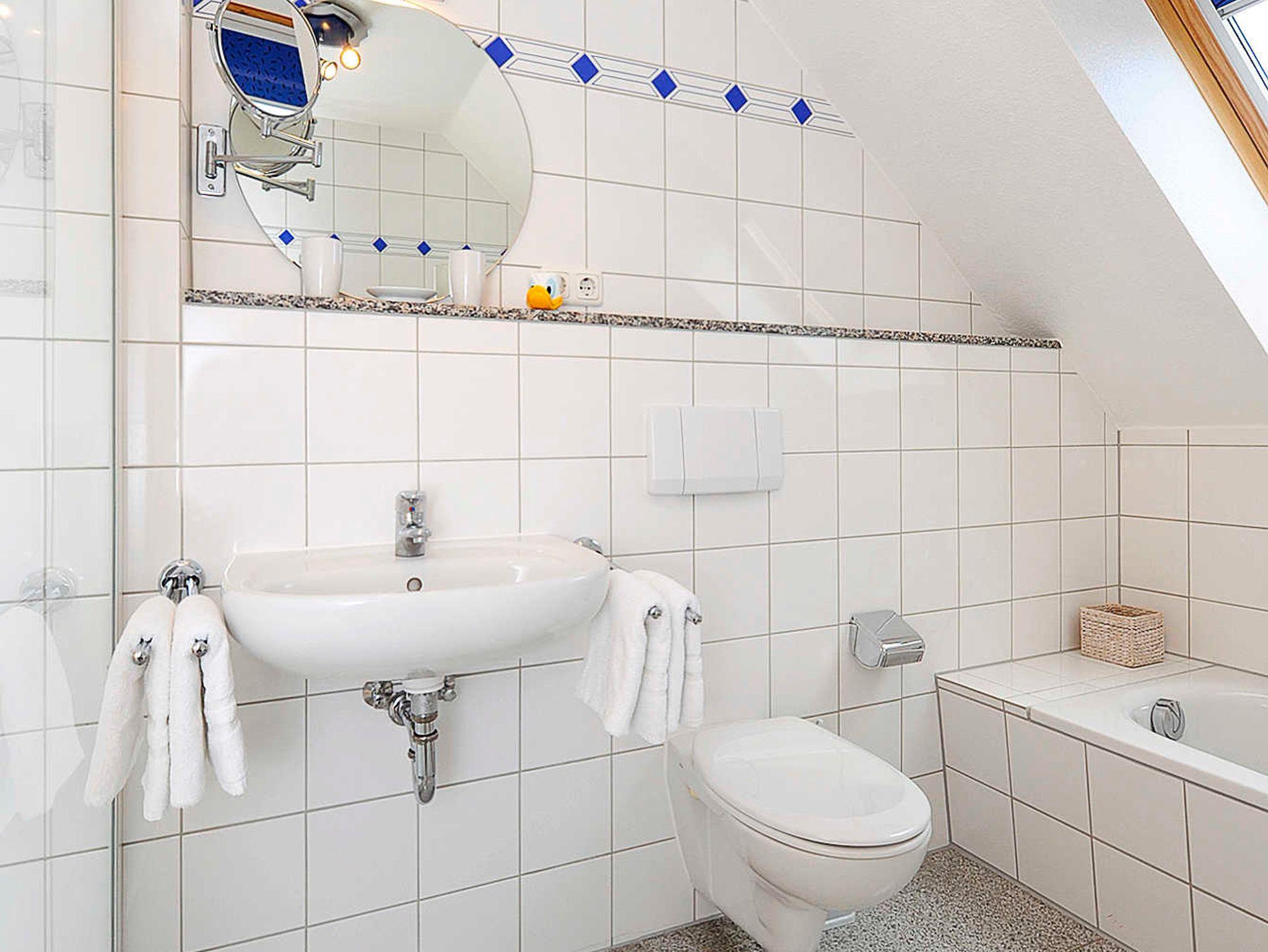 Badezimmer mit Badewanne, Dusche und WC
