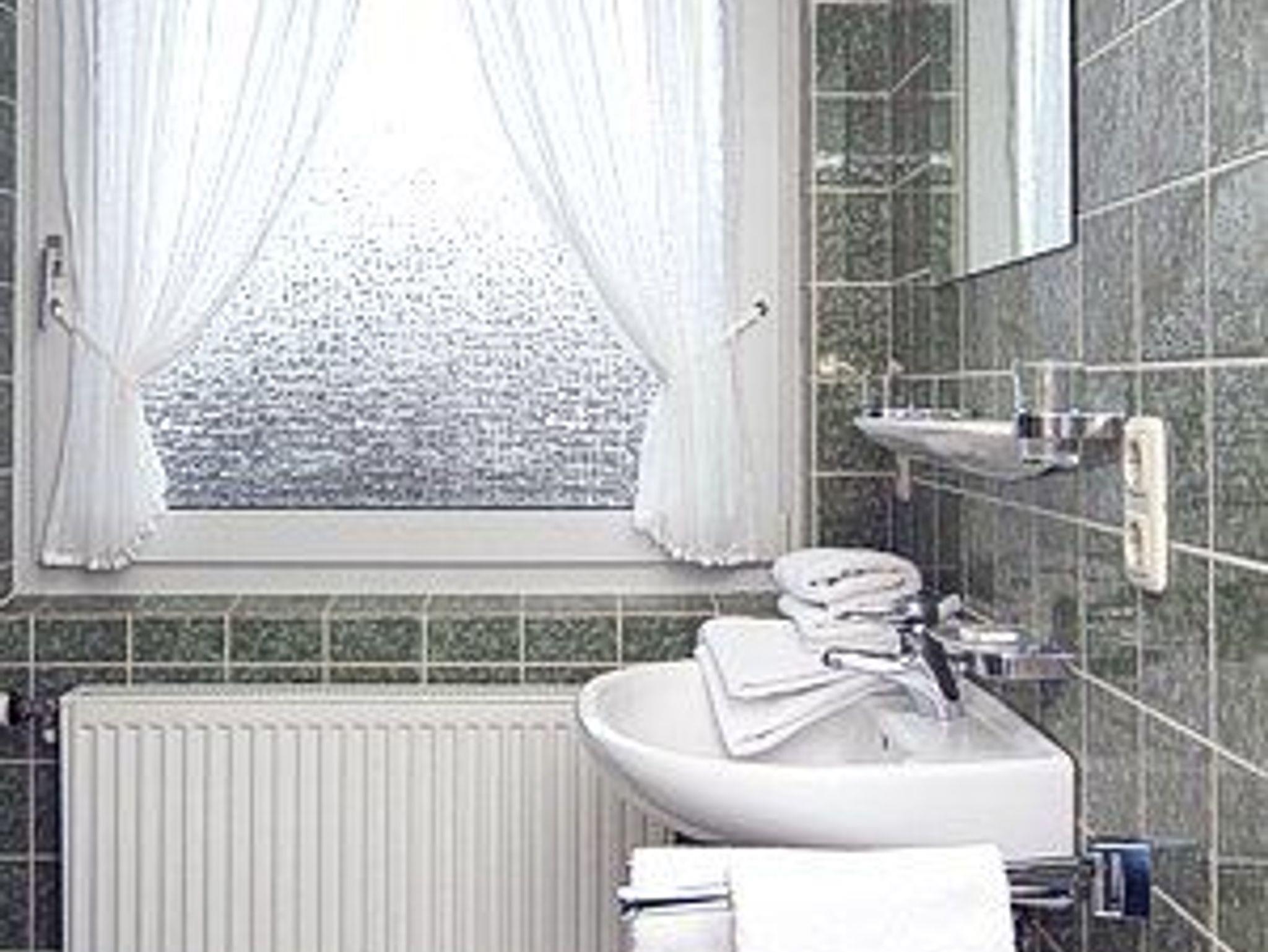 Badezimmer mit Dusche, Waschtisch und WC
