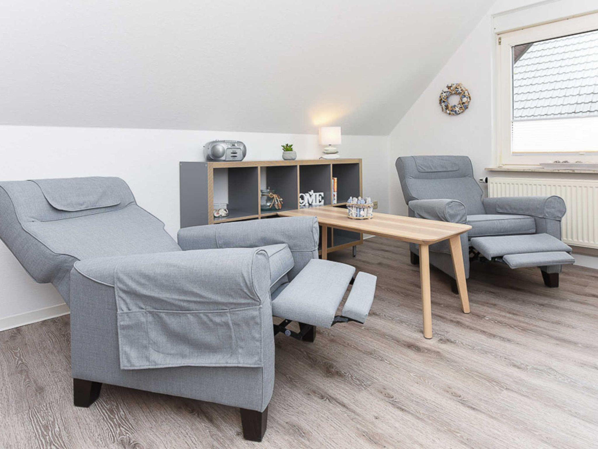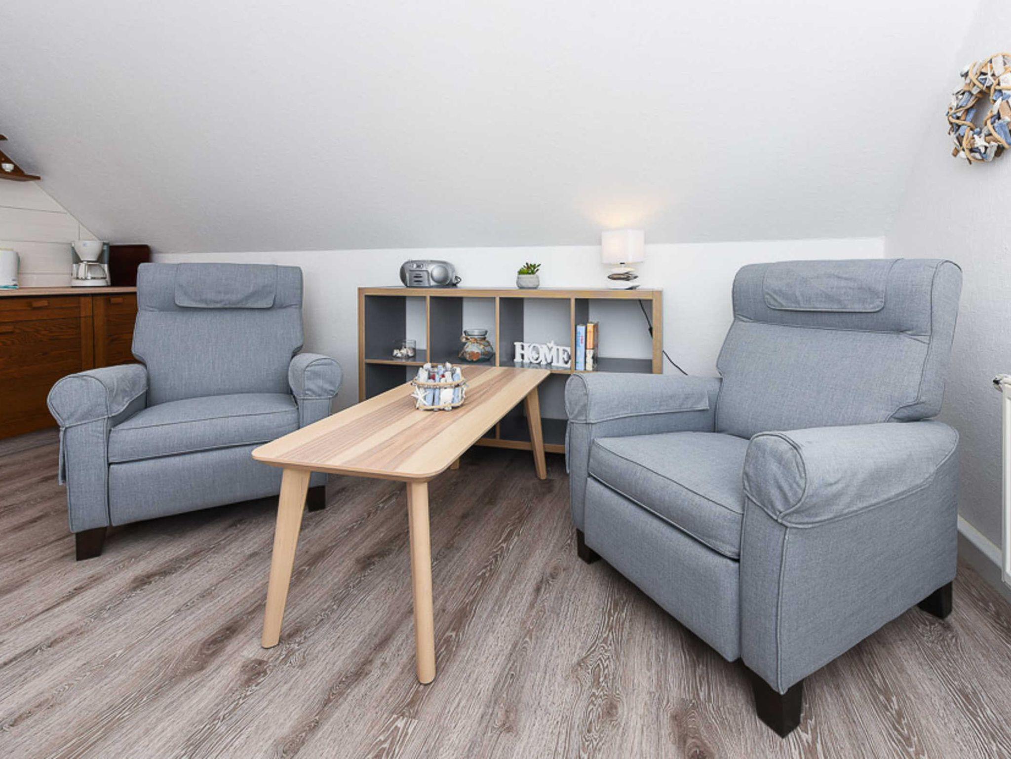 Die Wohnungen Strandnest und Strandmuschel sind jeweils ungefähr 35Quadratmeter groß und ideal für Paare geeignet, ausgestattet mit Schlafzimmer, Badezimmer und Wohnzimmer mit integrierter Küche.