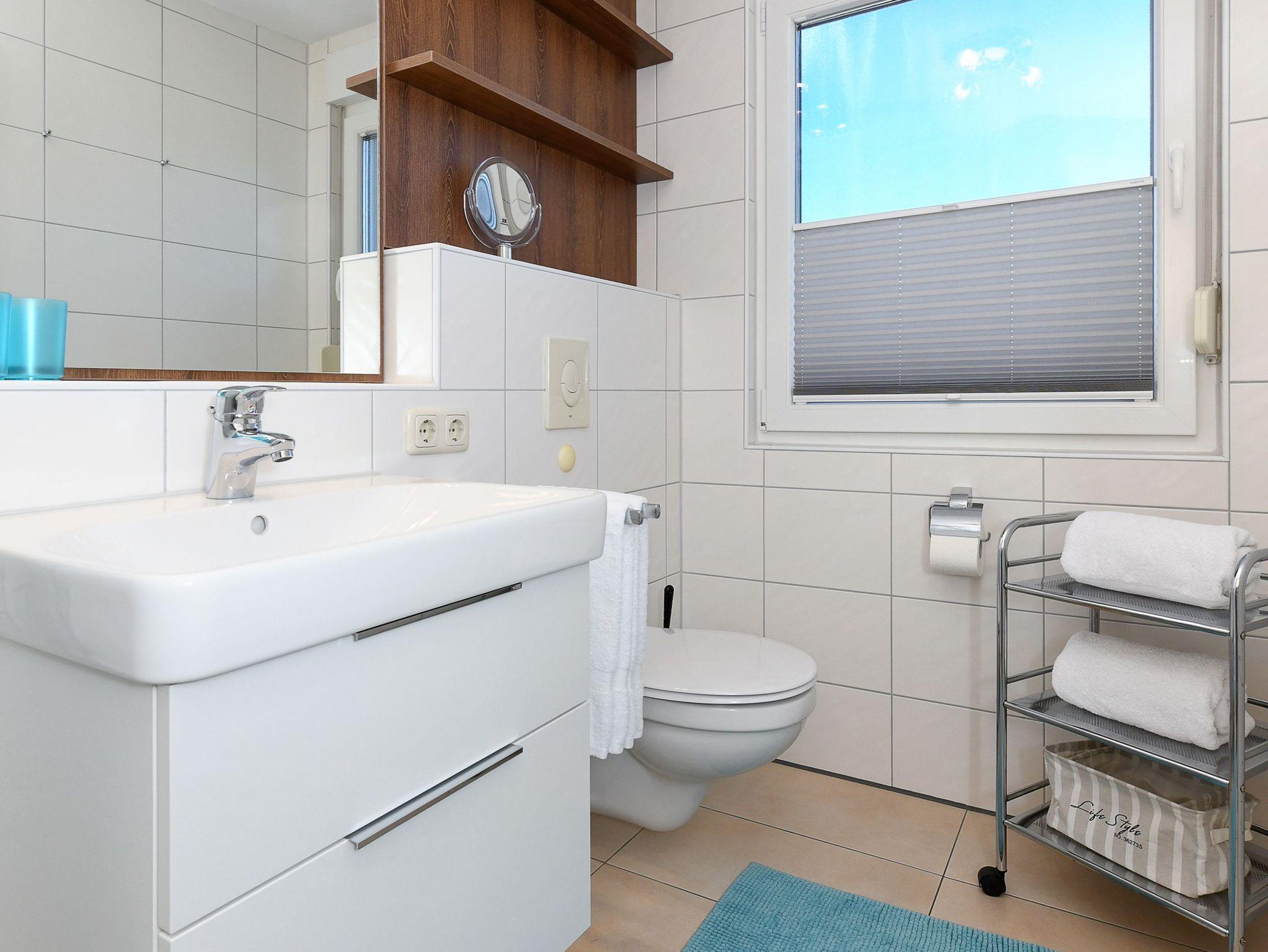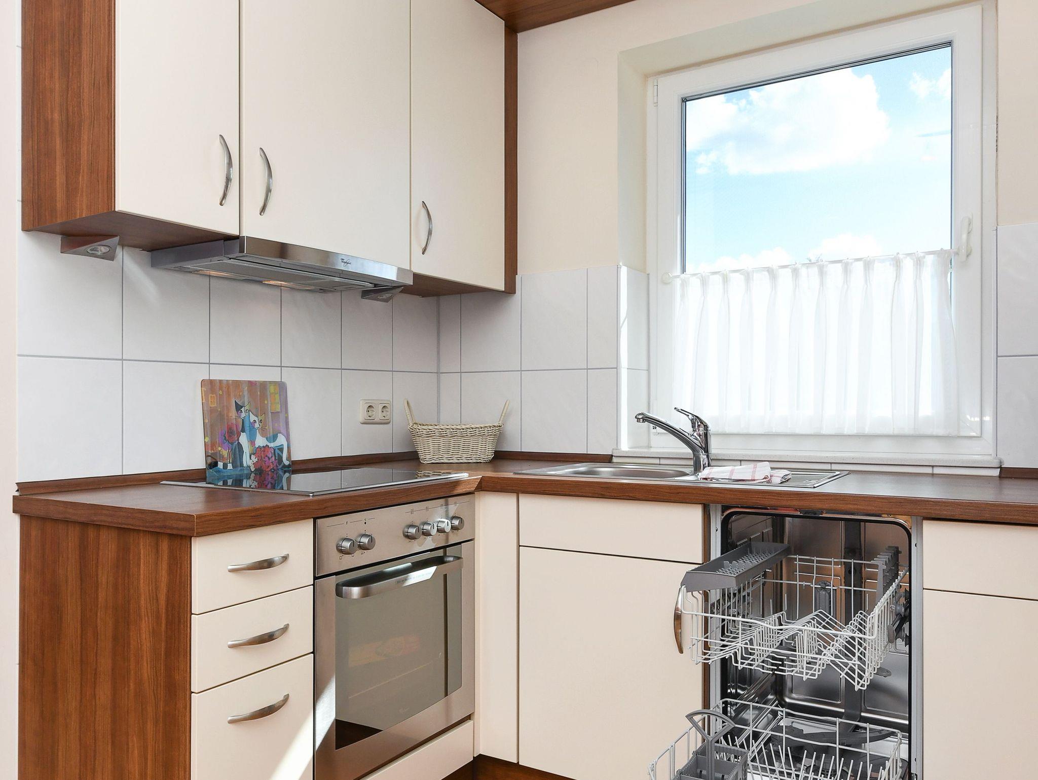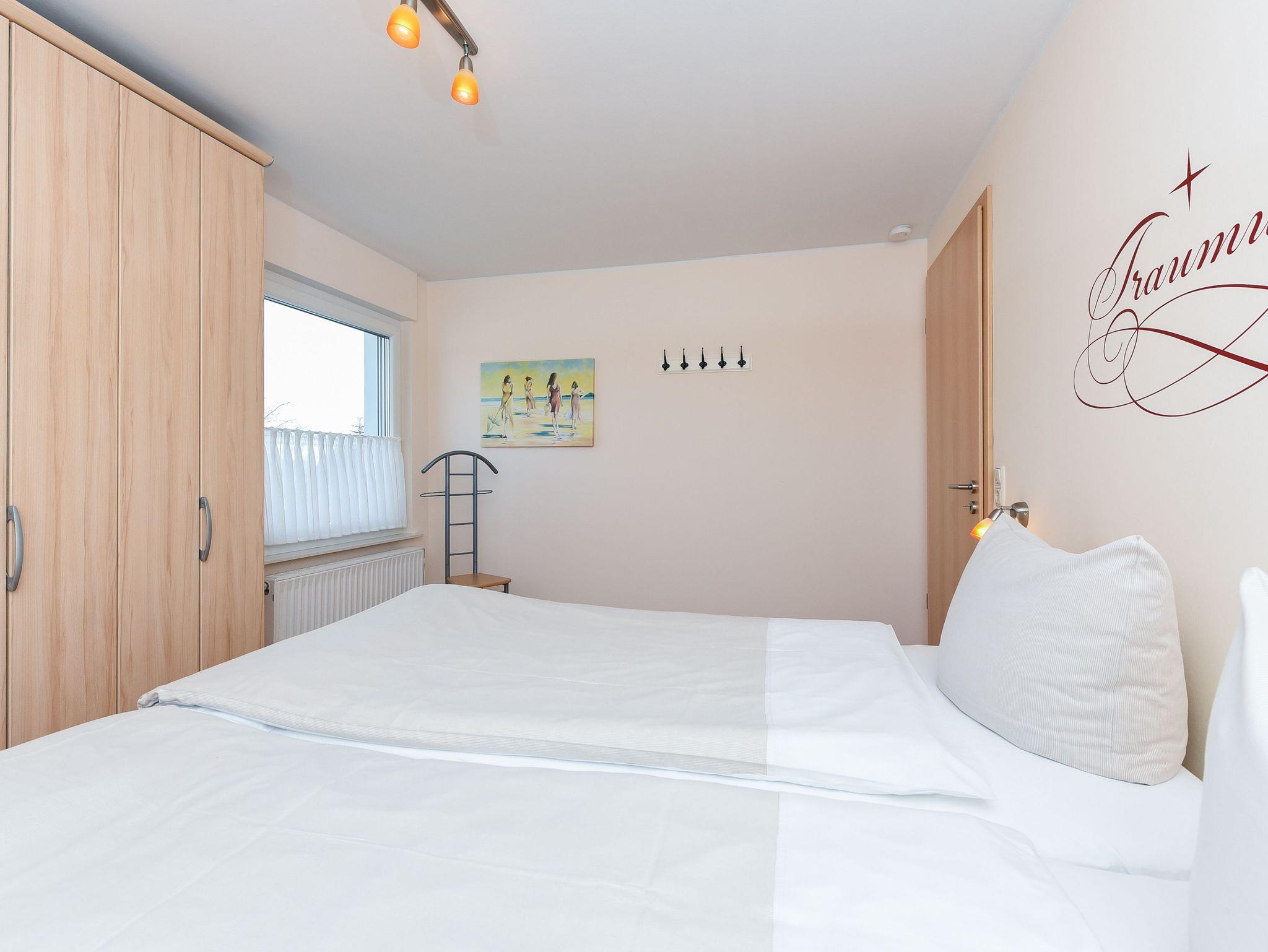 Größe ca. 57 Quadratmeter, Wohnraum mit integrierter Küche, Schlafzimmer, zweites separates, Schlafzimmer/Kinderzimmer, Badezimmer mit Dusche, Waschtisch und WC, Obergeschoss, Balkon, optimal für 1 bis 3 Personen und auf Anfrage zusätzlich ein Kleinkind.