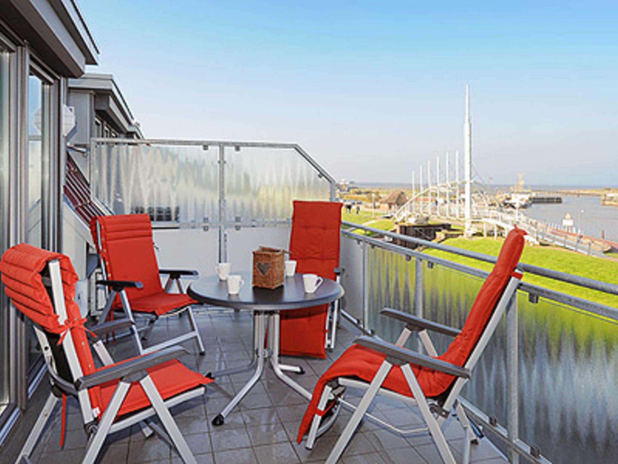 Erstklassiger Urlaub mitten in Bensersiel: Ferienwohnungen in der „Residenz am Hafen“ mit fantastischer Aussicht auf den Hafen, die Nordsee und die Inseln!