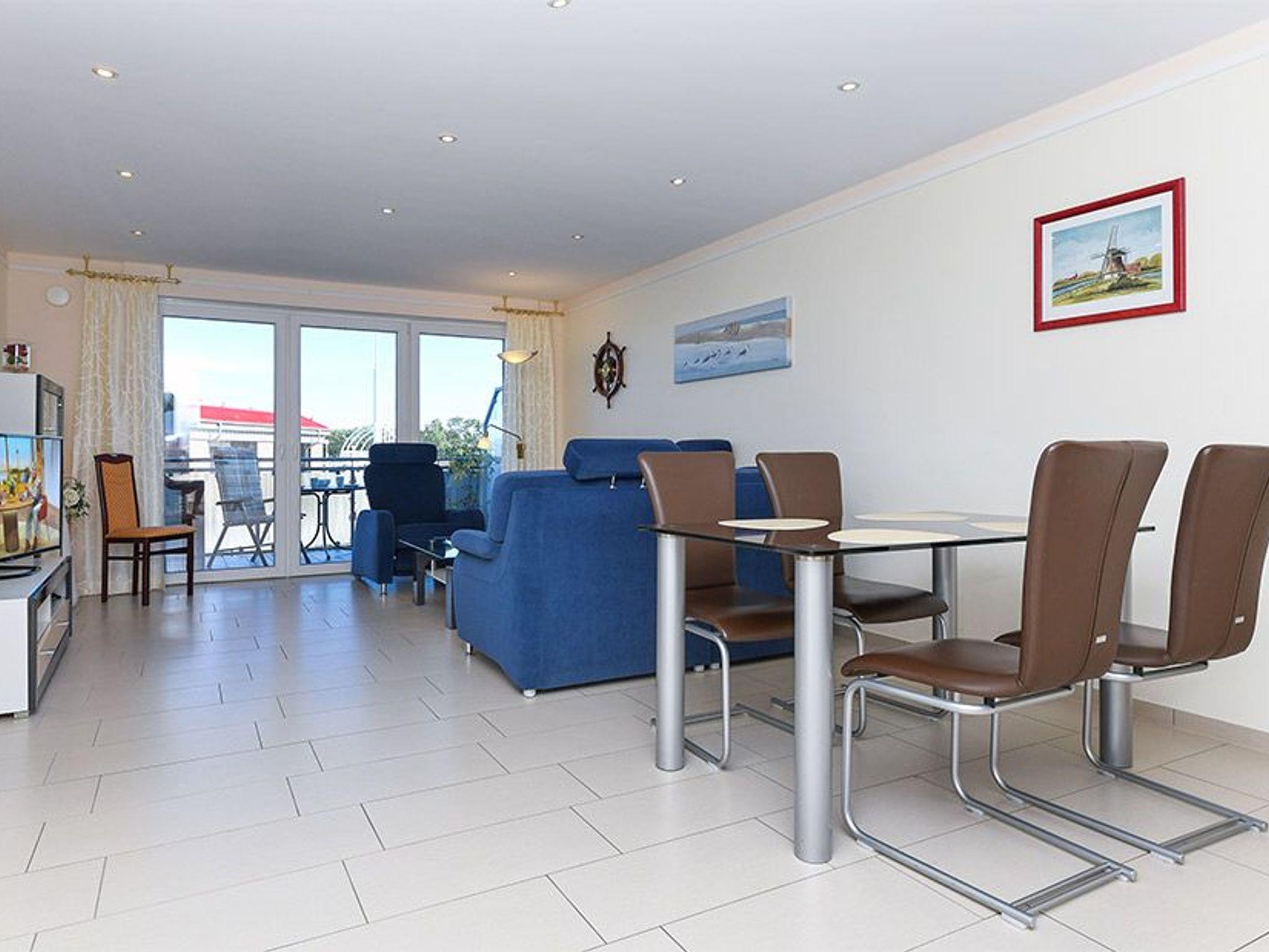 Vom Balkon aus haben Sie einen herrlichen Blick über den Deich hinweg auf den Bensersieler Hafen, auf die Nordsee und auf mehrere Ostfriesischen Inseln! Ihre Ferienwohnung ist von der Tiefgarage und allen anderen Eingängen des Hauses aus mit Fahrstühlen und völlig ohne Treppen erreichbar.