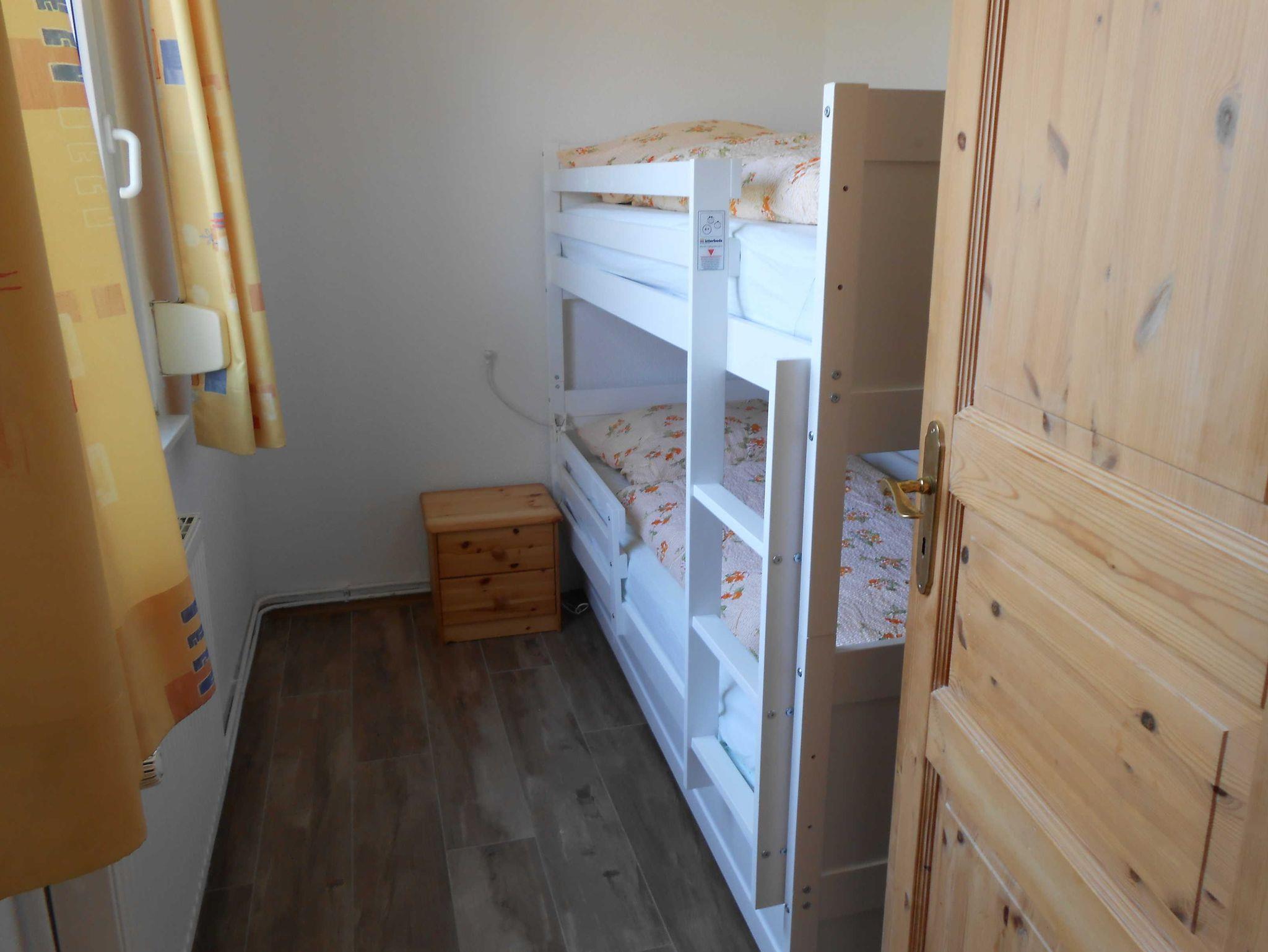 Unser Bungalow verfügt über 2 Schlafzimmer, ein Kinderzimmer mit Etagenbett. Kinderbett oder eine zusätzliche Schlafmatratze finden in einem der Schlafzimmer noch Platz. Der Wohnraum ist gemütlich eingerichtet mit Essecke, TV und CD-Radio. Die separate Küchenzeile ist gut sortiert ausgestattet mit Geschirrspüler, Ceranfeld, Backofen, Wasser- und Eierkocher, Toaster und Kaffeemaschine. Mikrowelle auf Wunsch. Im Duschbad steht Ihnen ein Fön zur Verfügung. Auf der Südterrasse finden Sie Gartenmöbel und einen Grill.