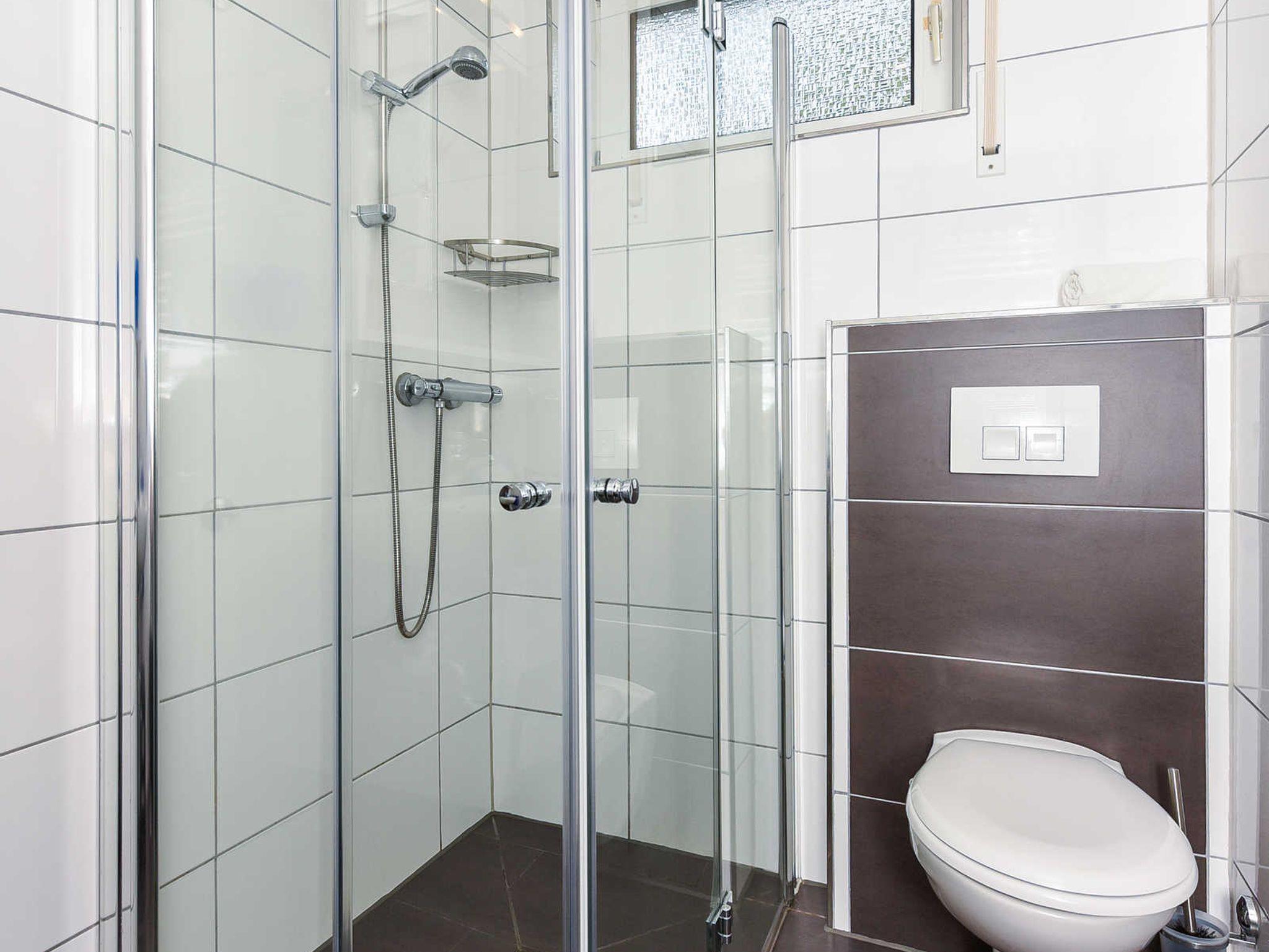 Badezimmer mit Dusche, Waschtisch und WC