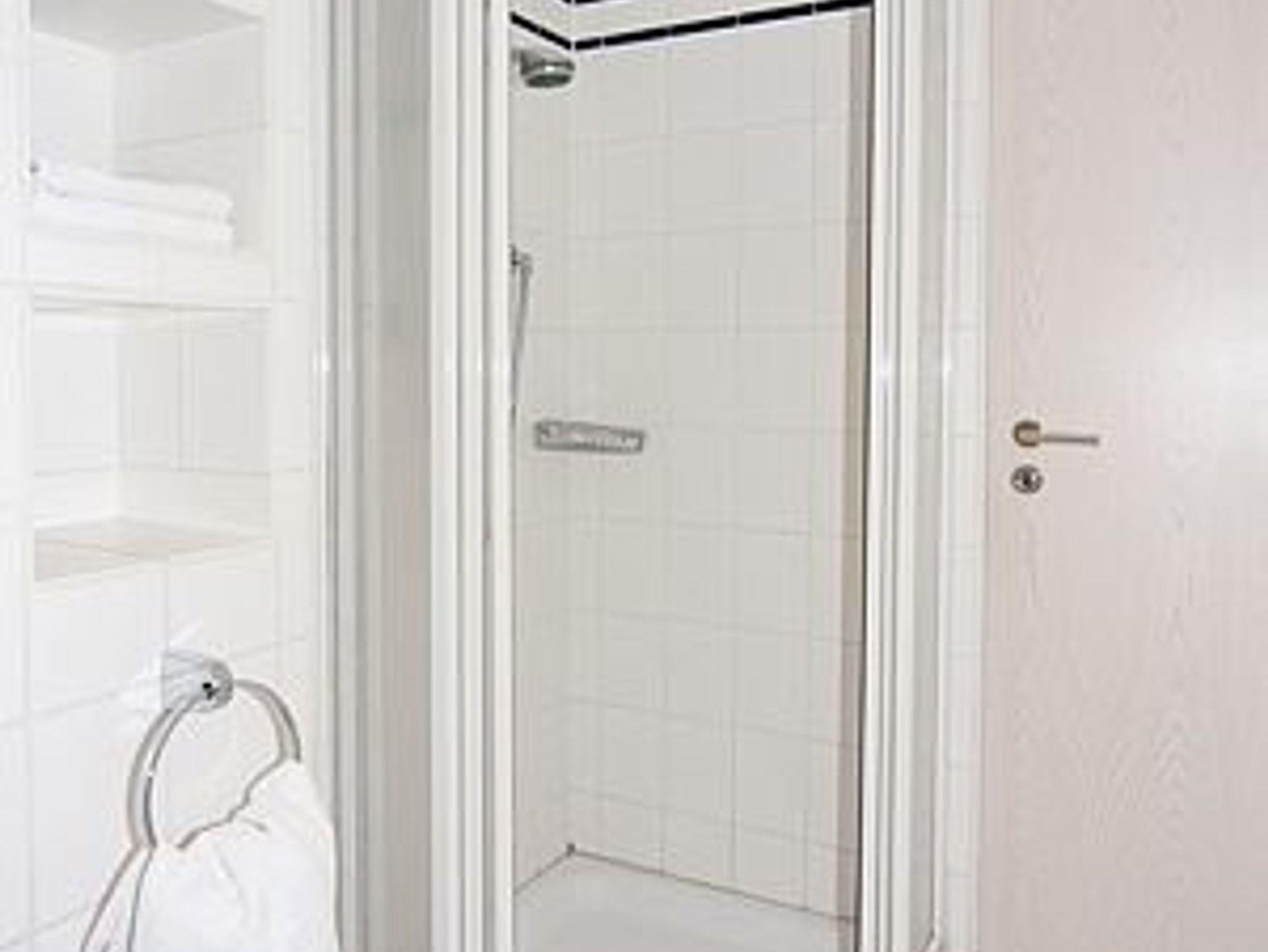 Badezimmer mit Dusche, Waschtisch und WC