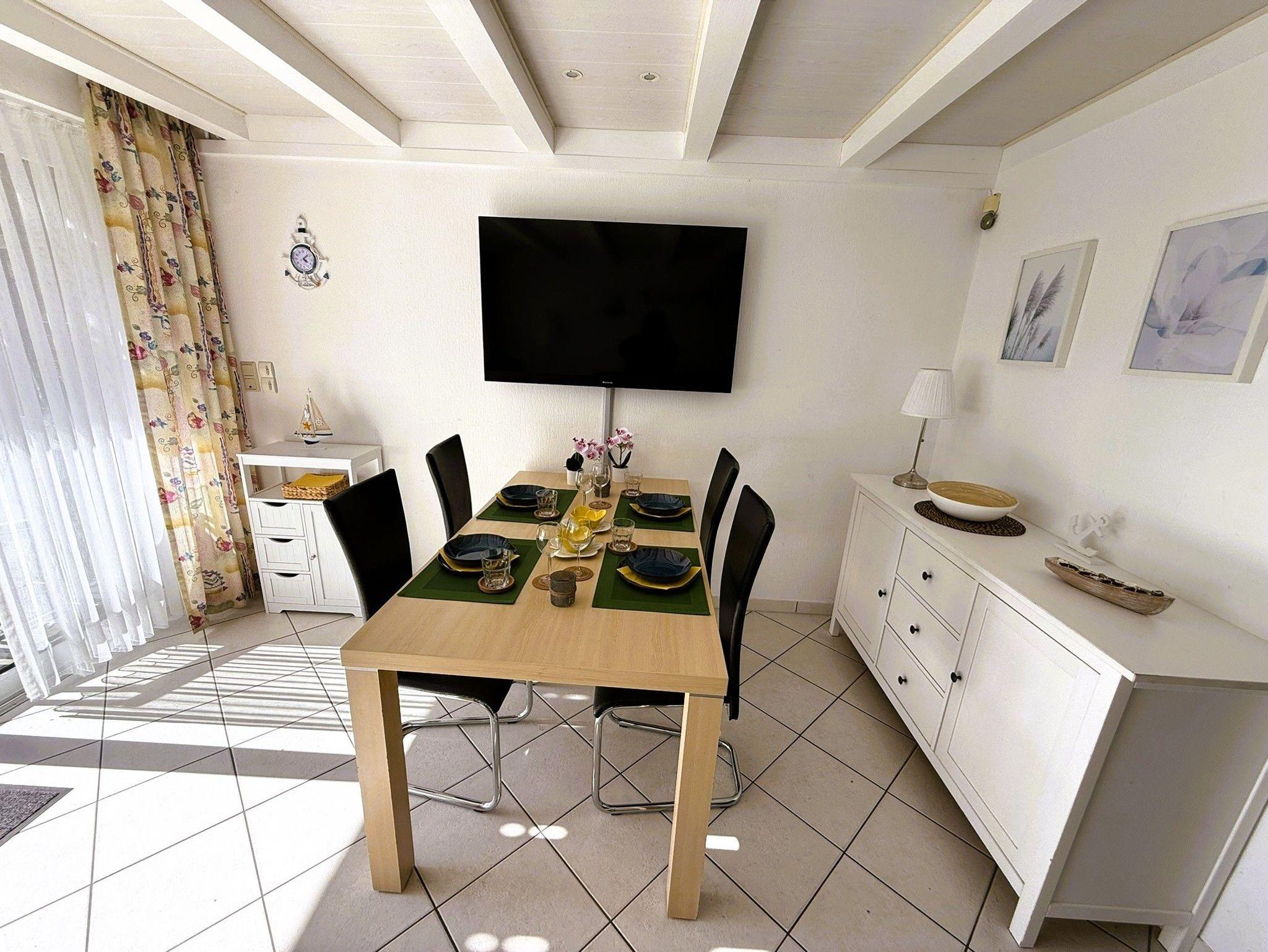 Der Deich ist etwa 450 Meter entfernt und Einkaufsmöglichkeiten, Restaurants sowie weitere Annehmlichkeiten sind bequem zu Fuß in wenigen Minuten erreichbar.