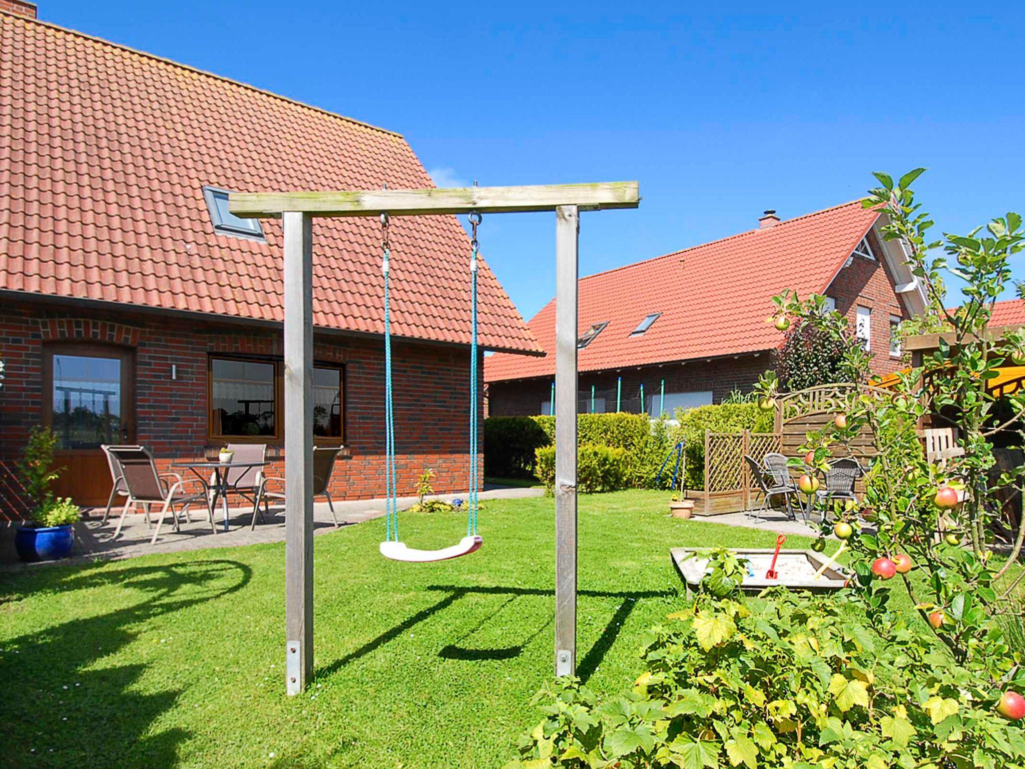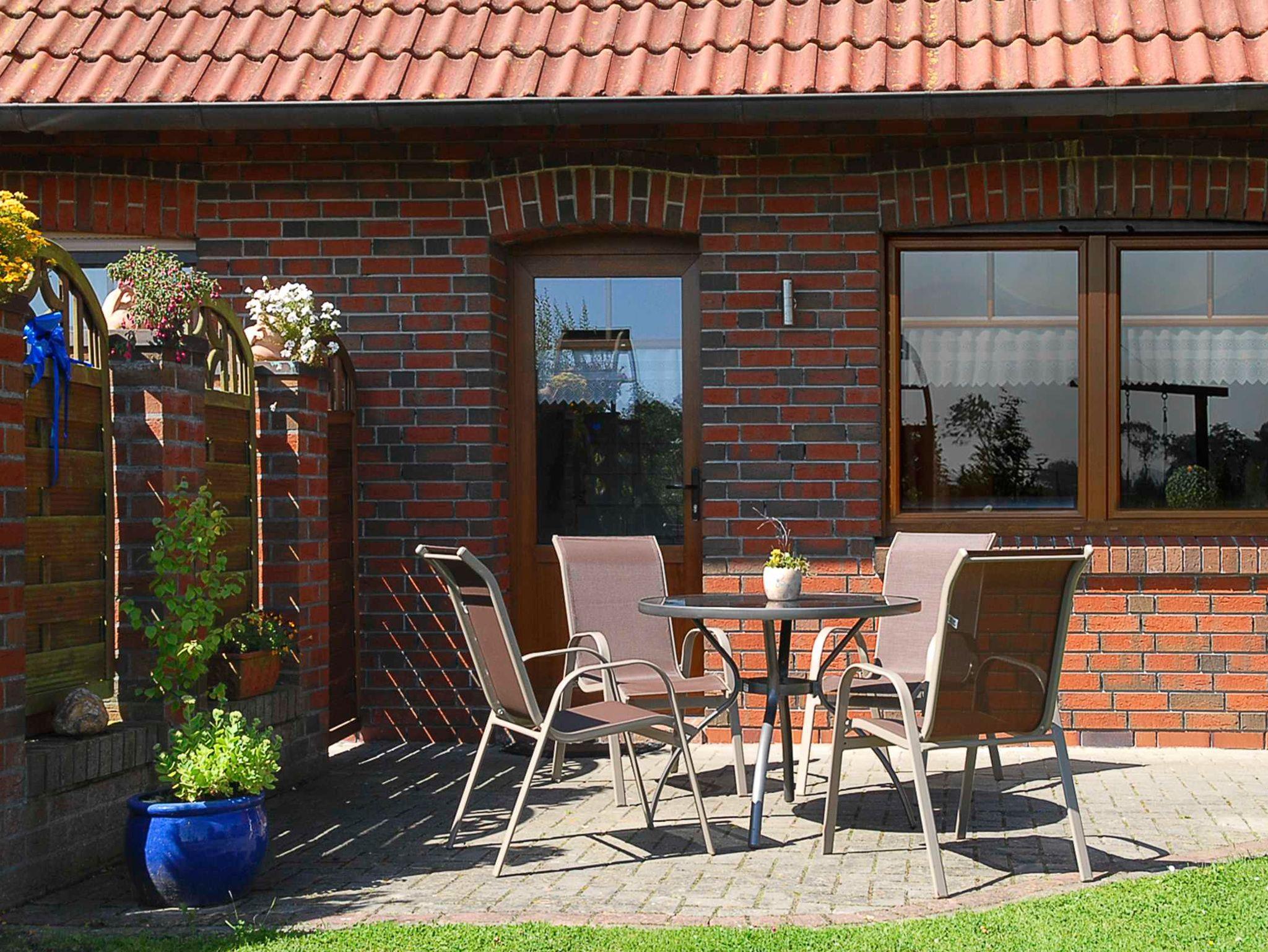 Zum Beispiel steht für jede Ferienwohnung eine Terrasse zur Verfügung, die eine direkt an der Ferienwohnung und die andere im Garten. Ein kleiner Spielplatz ist ebenfalls im Garten vorhanden.