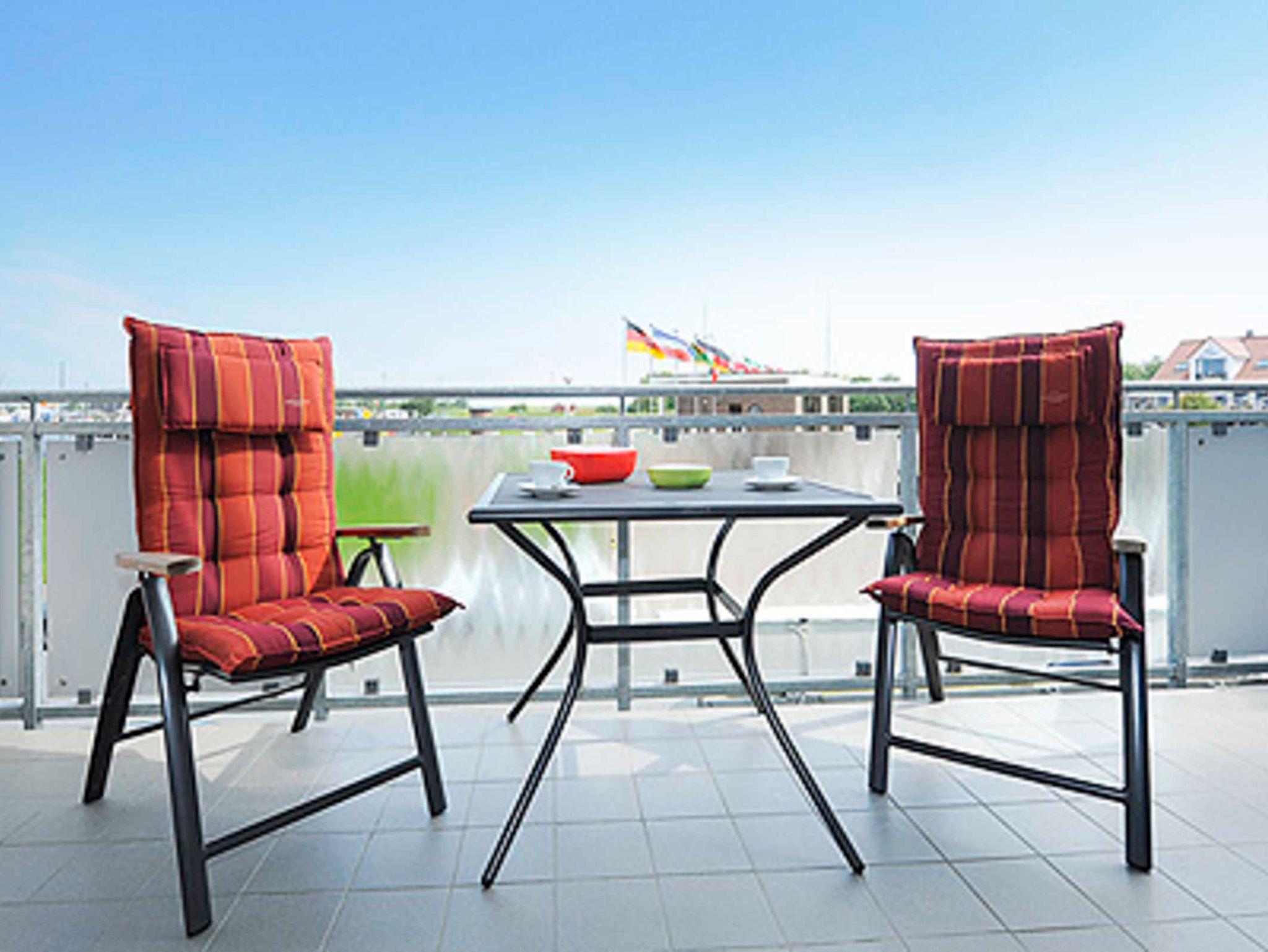 Vom Balkon aus haben Sie einen herrlichen Blick über den Deich hinweg auf den Bensersieler Hafen, auf die Nordsee und auf mehrere Ostfriesischen Inseln! Ihre Ferienwohnung ist von der Tiefgarage und allen anderen Eingängen des Hauses aus mit Fahrstühlen und völlig ohne Treppen erreichbar.