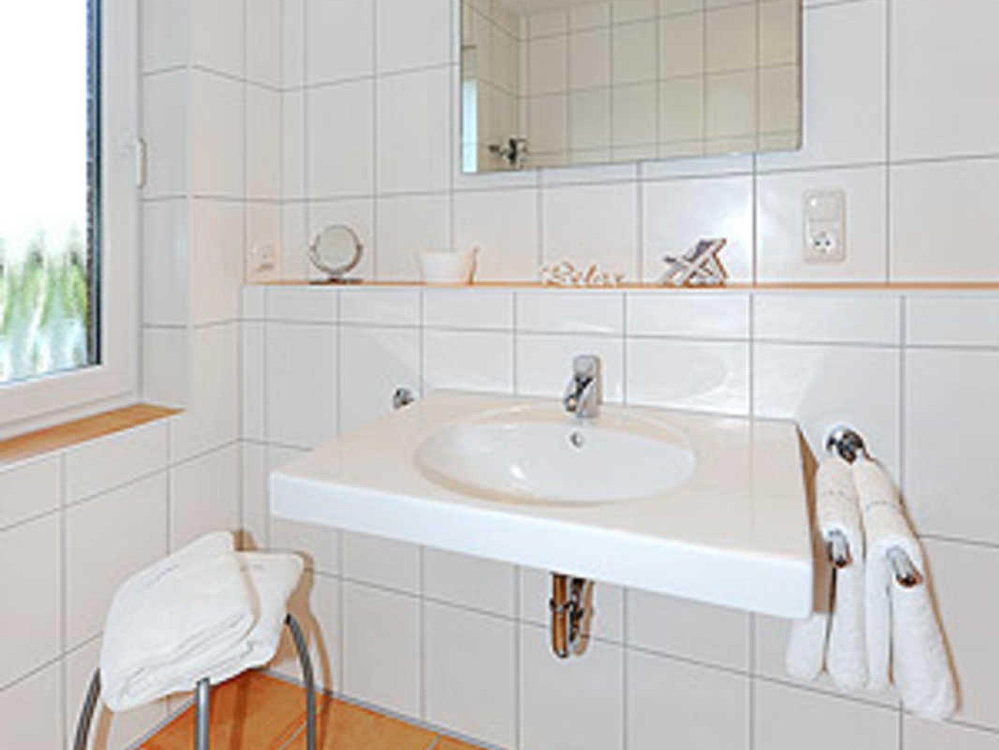 Badezimmer mit Dusche, Waschtisch und WC