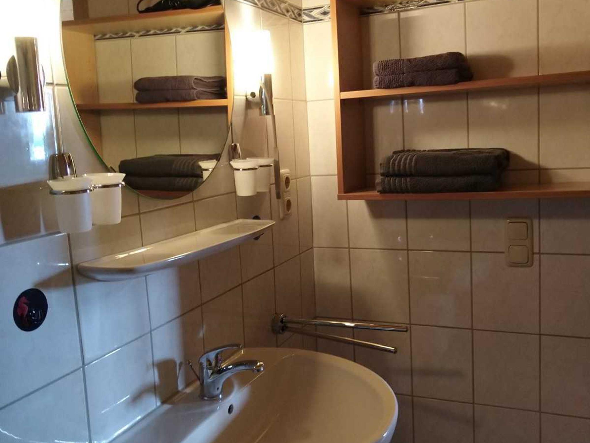 Badezimmer, Heizkörper, Fußbodenheizung, Dusche, Waschtisch, WC, Fön und Erstausstattung Handtücher, einmalig pro Person 3 Handtücher (1 großes Dusch-/Badetuch und 2 kleinere Handtücher) und Toilettenpapier (nicht nur eine Rolle)
