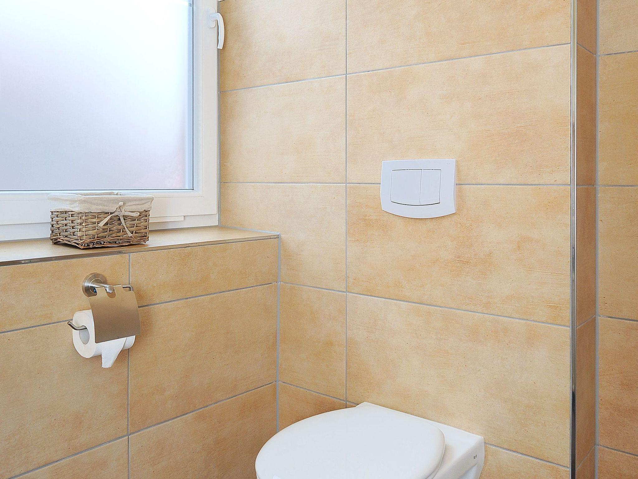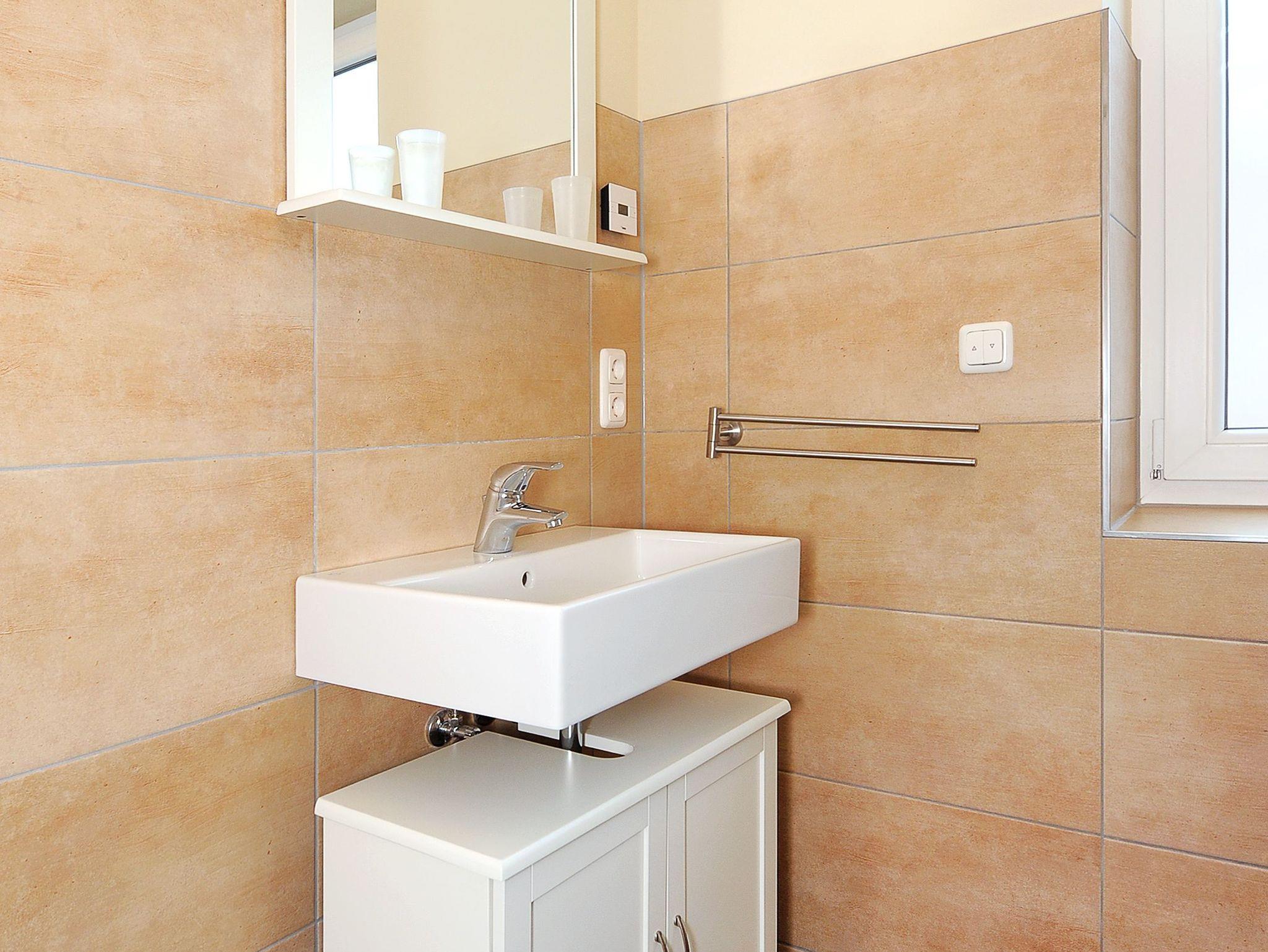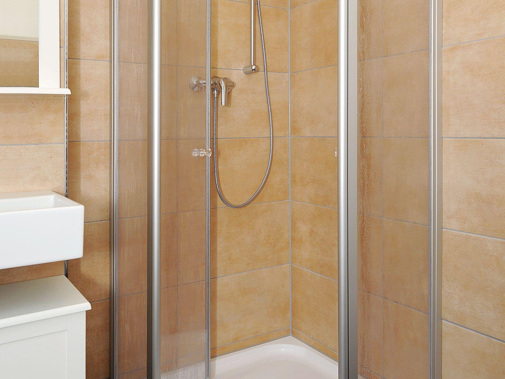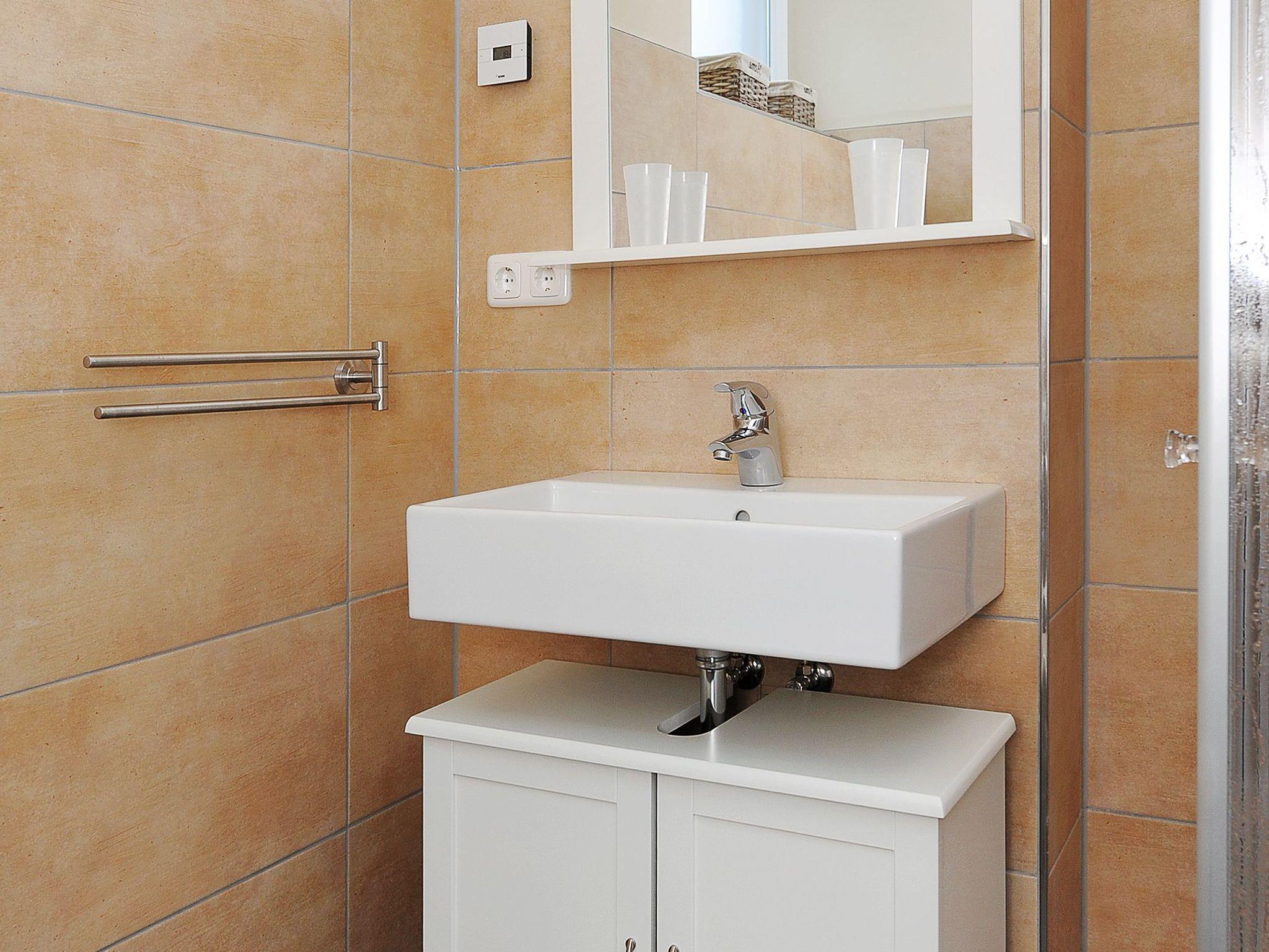 zweites Badezimmer mit Dusche, Waschtisch und WC