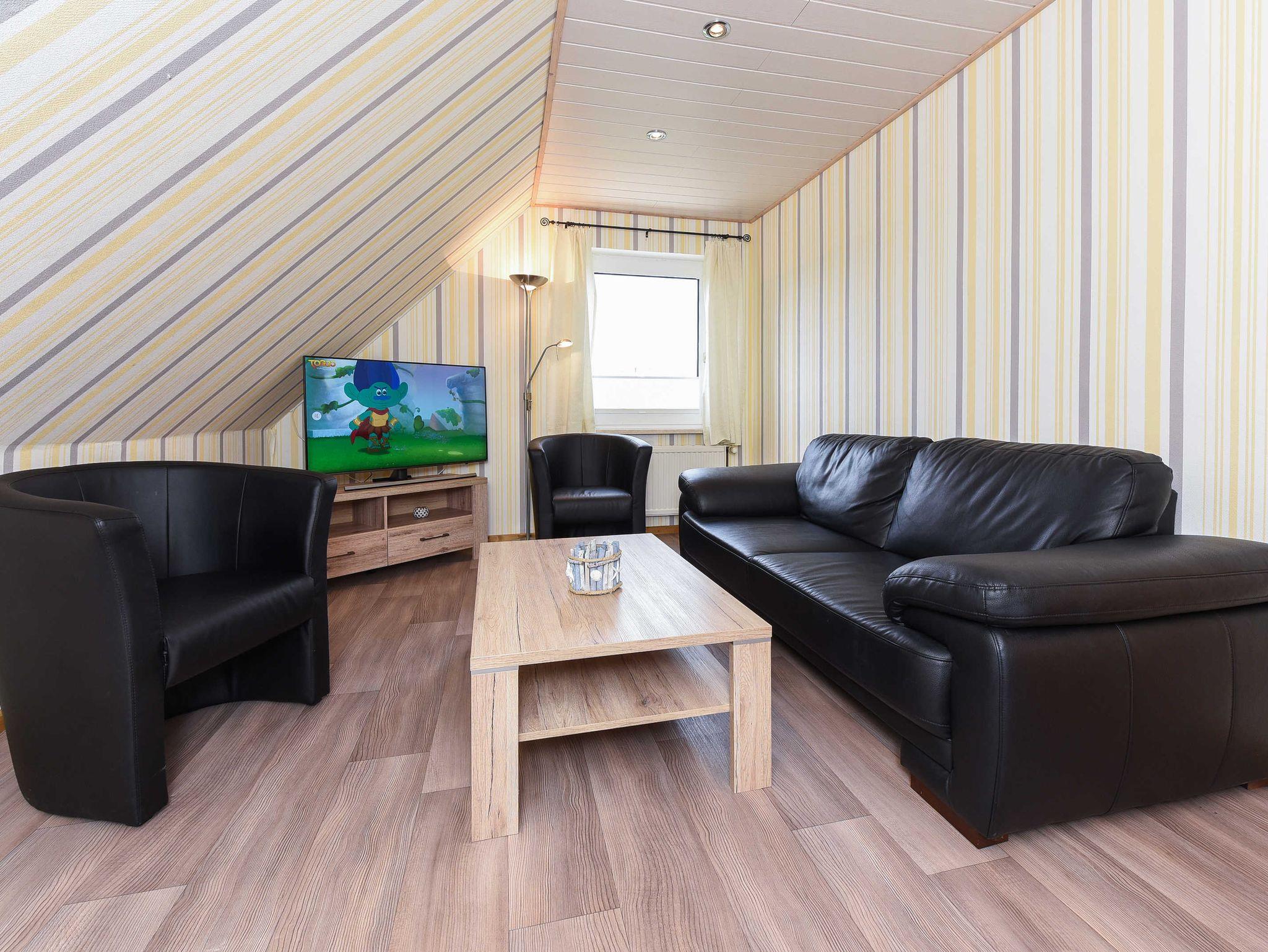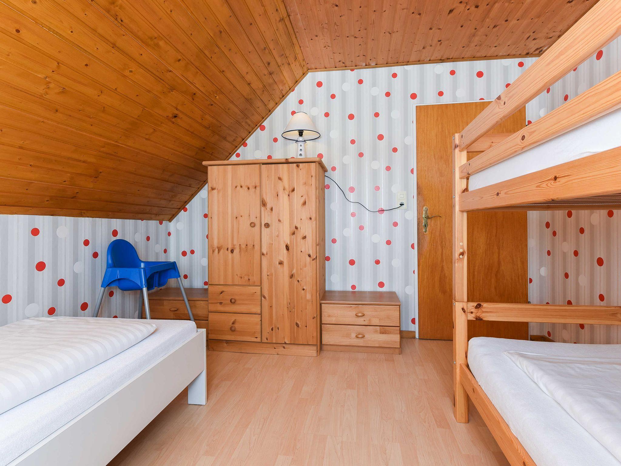 Größe ca. 74 Quadratmeter, Wohnzimmer, Küche, Schlafzimmer, zweites separates Schlafzimmer, drittes separates Schlafzimmer/Kinderzimmer, Badezimmer mit Dusche, Waschtisch und WC, Obergeschoss, Terrasse (Sitzgruppe im Garten), Internetzugang über WLAN möglich, optimal für 2 bis 7 Personen.