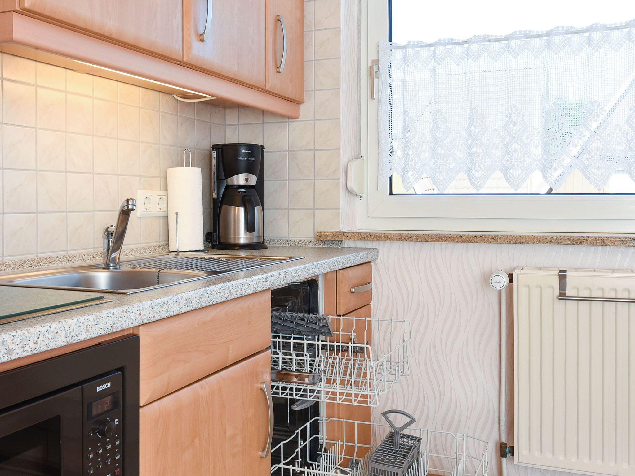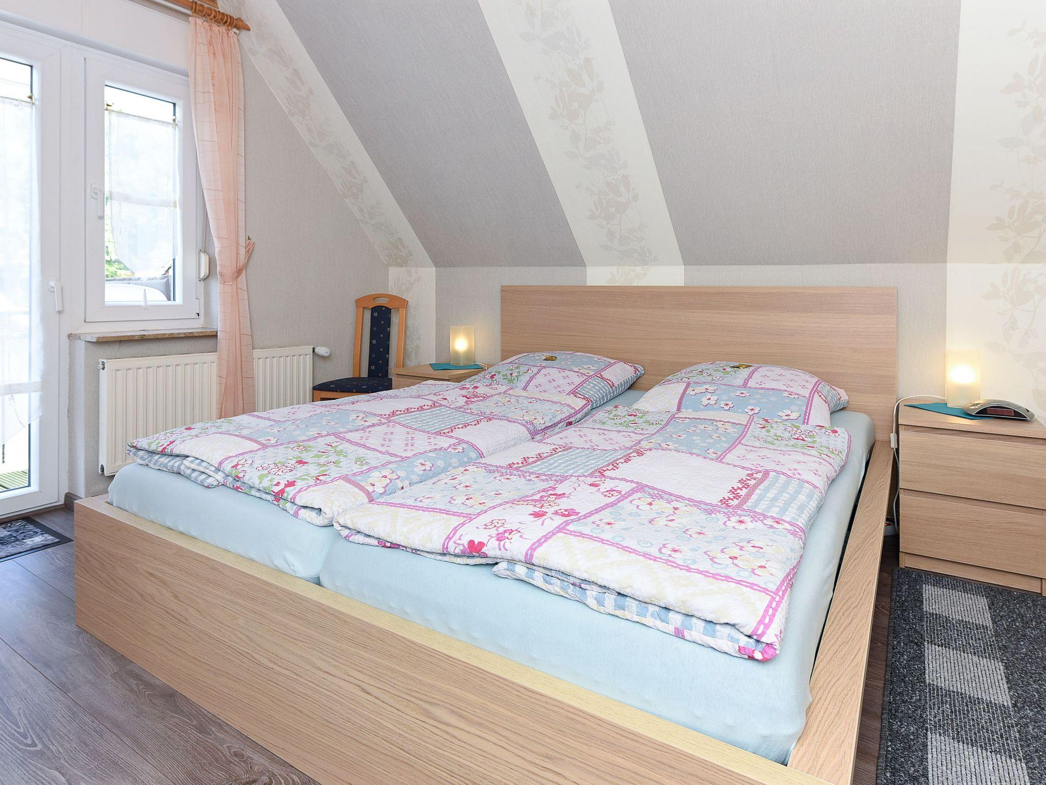 Die Ferienwohnung 2 befindet sich im Obergeschoss und verfügt über einen separaten Eingang, ein großes Bad mit Dusche und WC, eine moderne Küche mit Ess- & Sitz-möglichkeit, ein geräumiges Wohnzimmer, 2 Schlafzimmer, eins mit Kinderbett und Zugang zum sonnigen Balkon. Ein Bollerwagen steht für Ihre Ausflüge kostenfrei zur Verfügung.