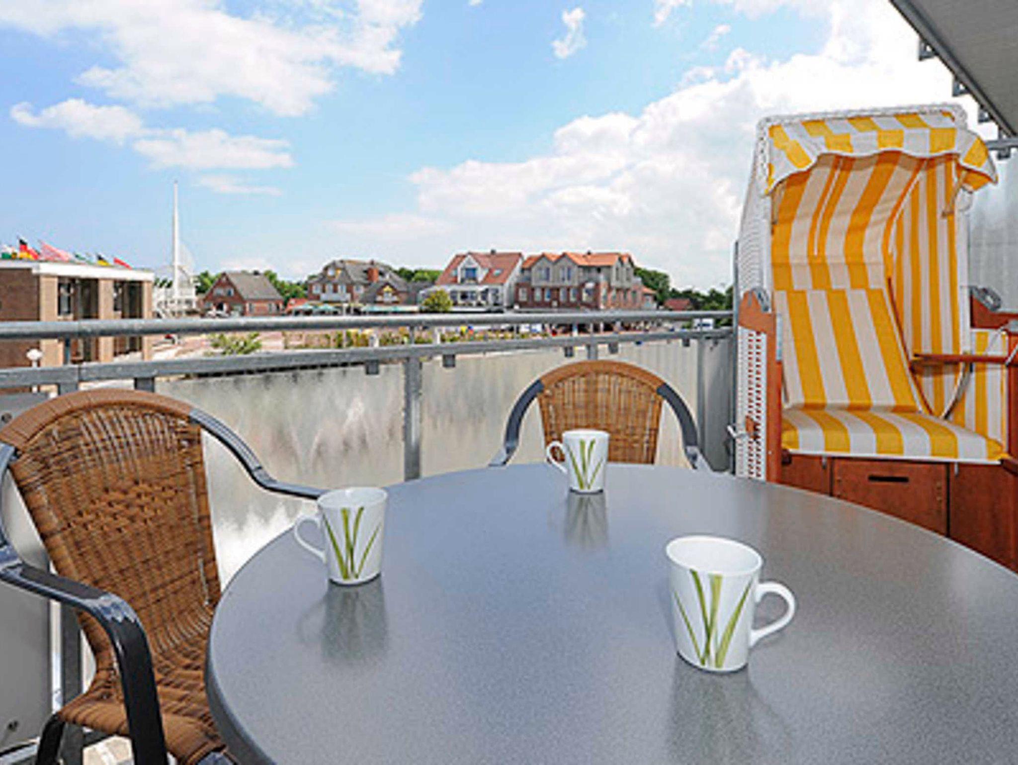 Vom Balkon aus haben Sie einen herrlichen Blick über den Deich hinweg auf den Bensersieler Hafen, auf die Nordsee und auf mehrere Ostfriesischen Inseln! Ihre Ferienwohnung ist von der Tiefgarage und allen anderen Eingängen des Hauses aus mit Fahrstühlen und völlig ohne Treppen erreichbar.