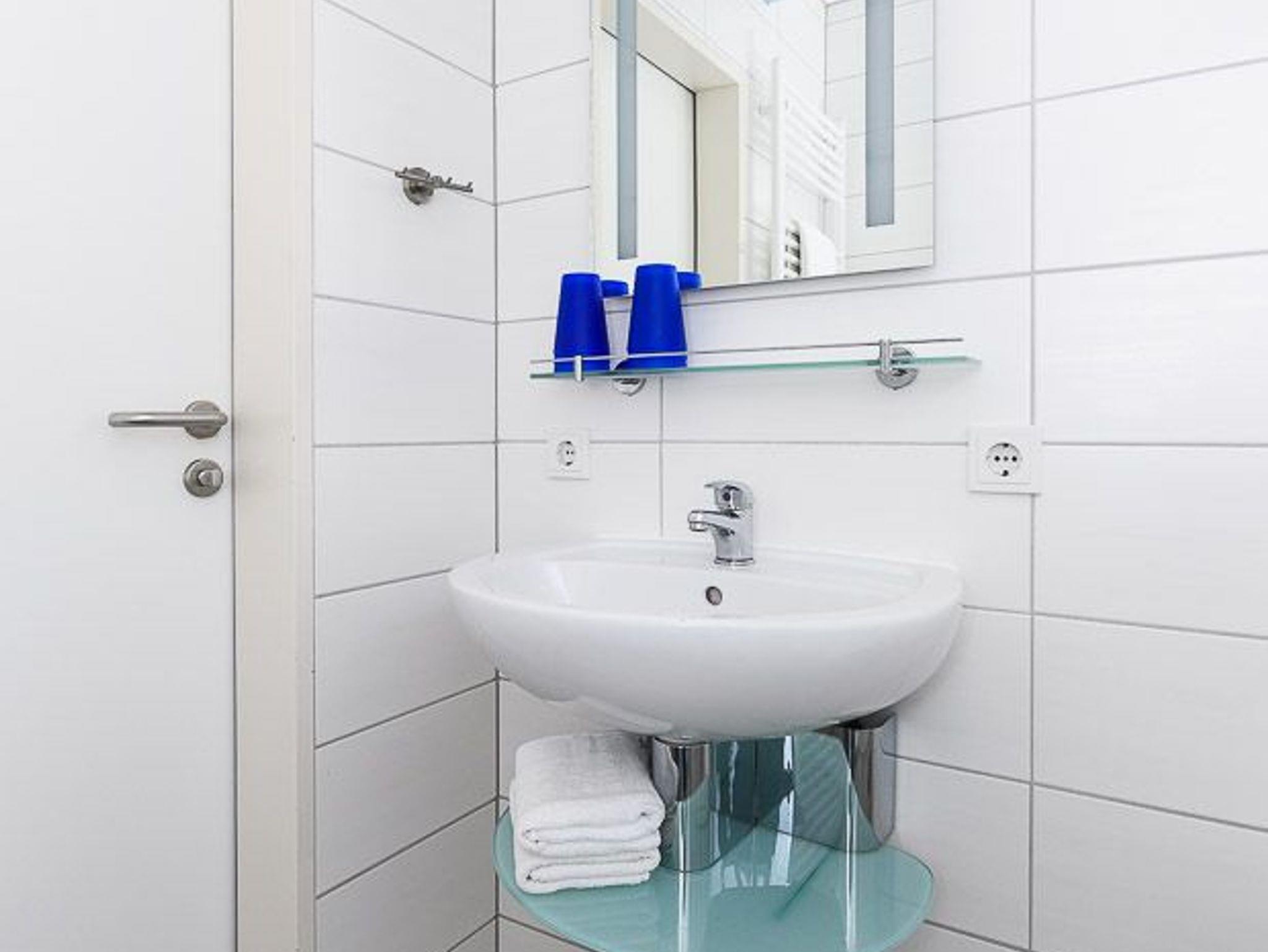 Badezimmer mit Dusche, Waschtisch und WC