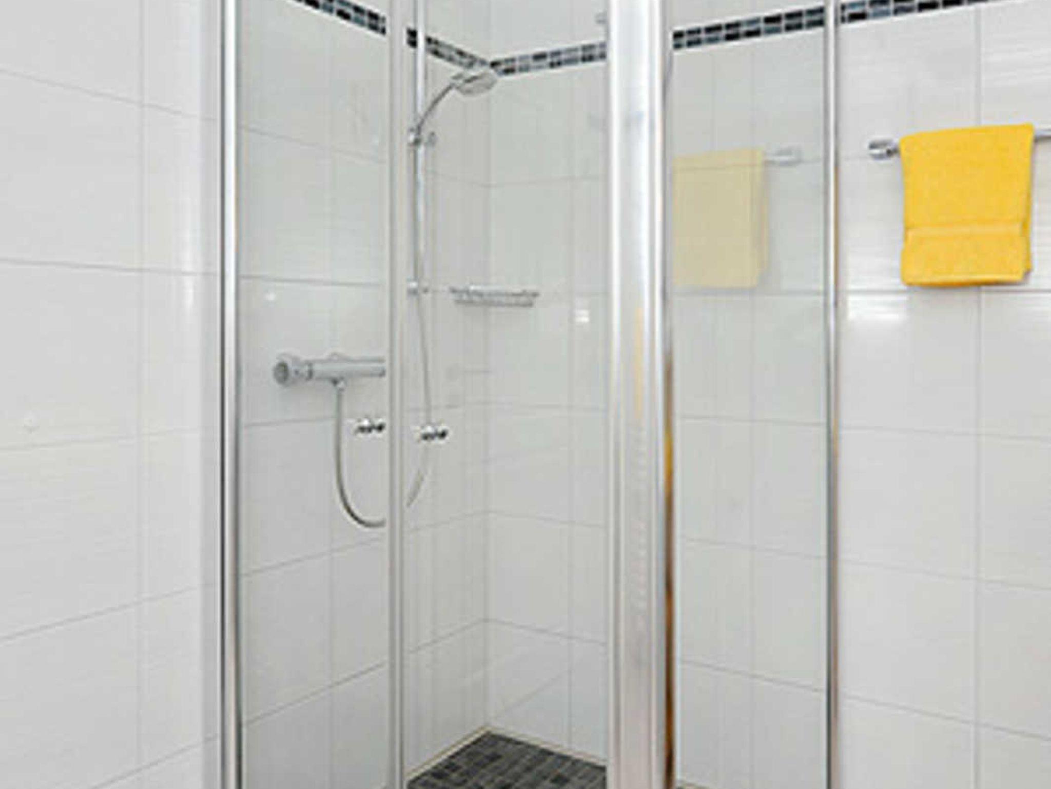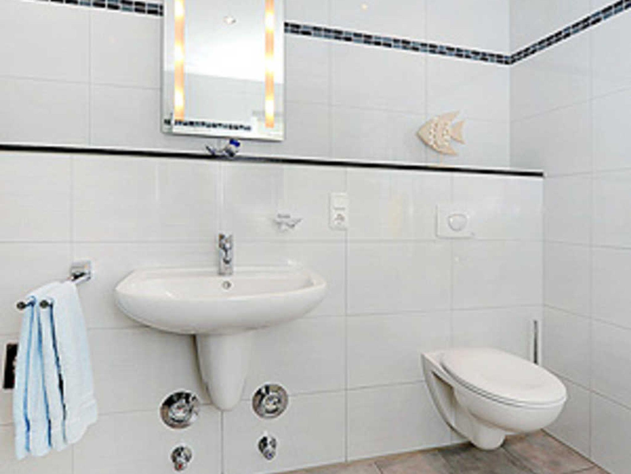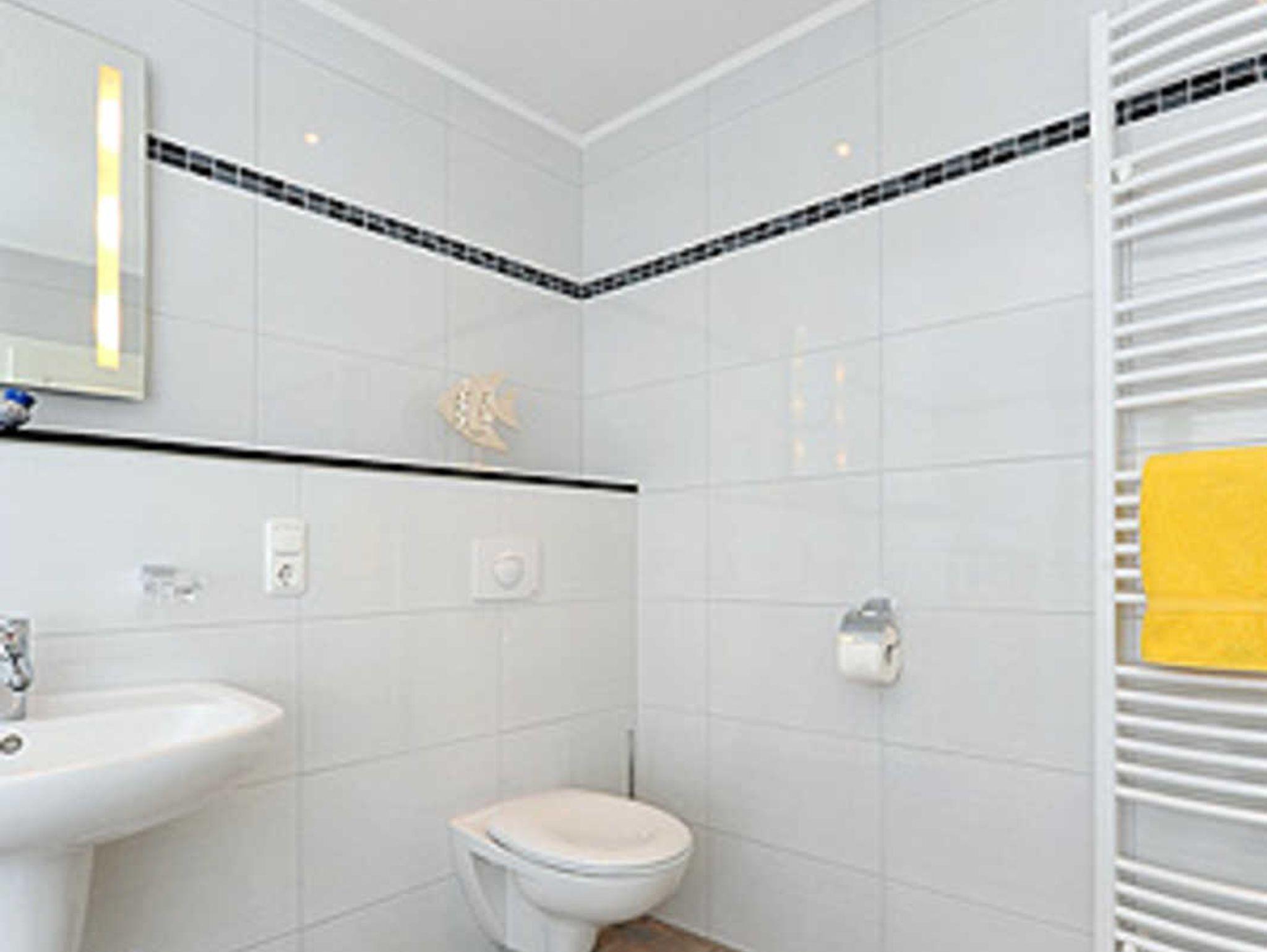 Badezimmer mit Dusche, Waschtisch und WC