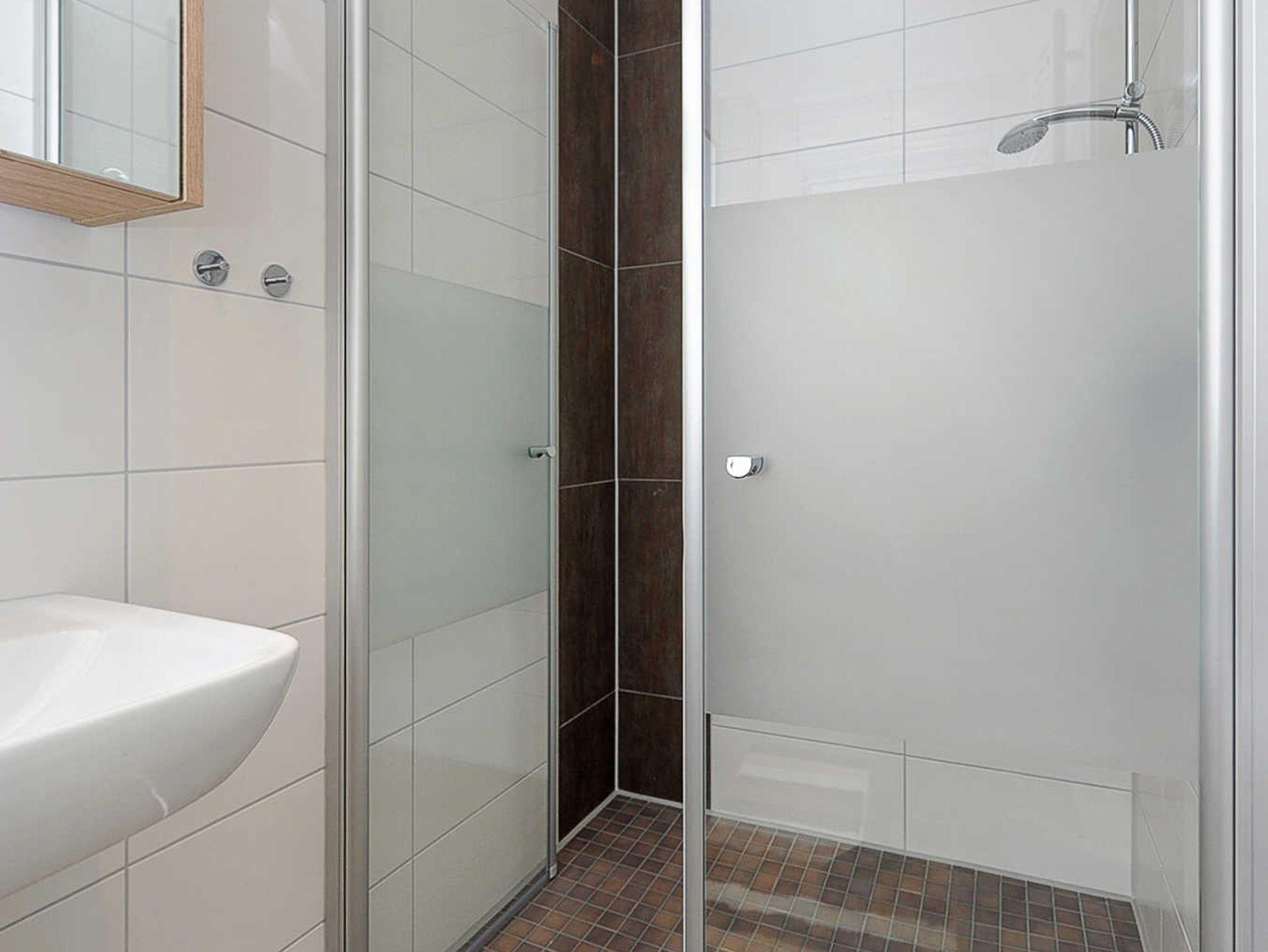 Badezimmer mit Dusche, Waschtisch und WC