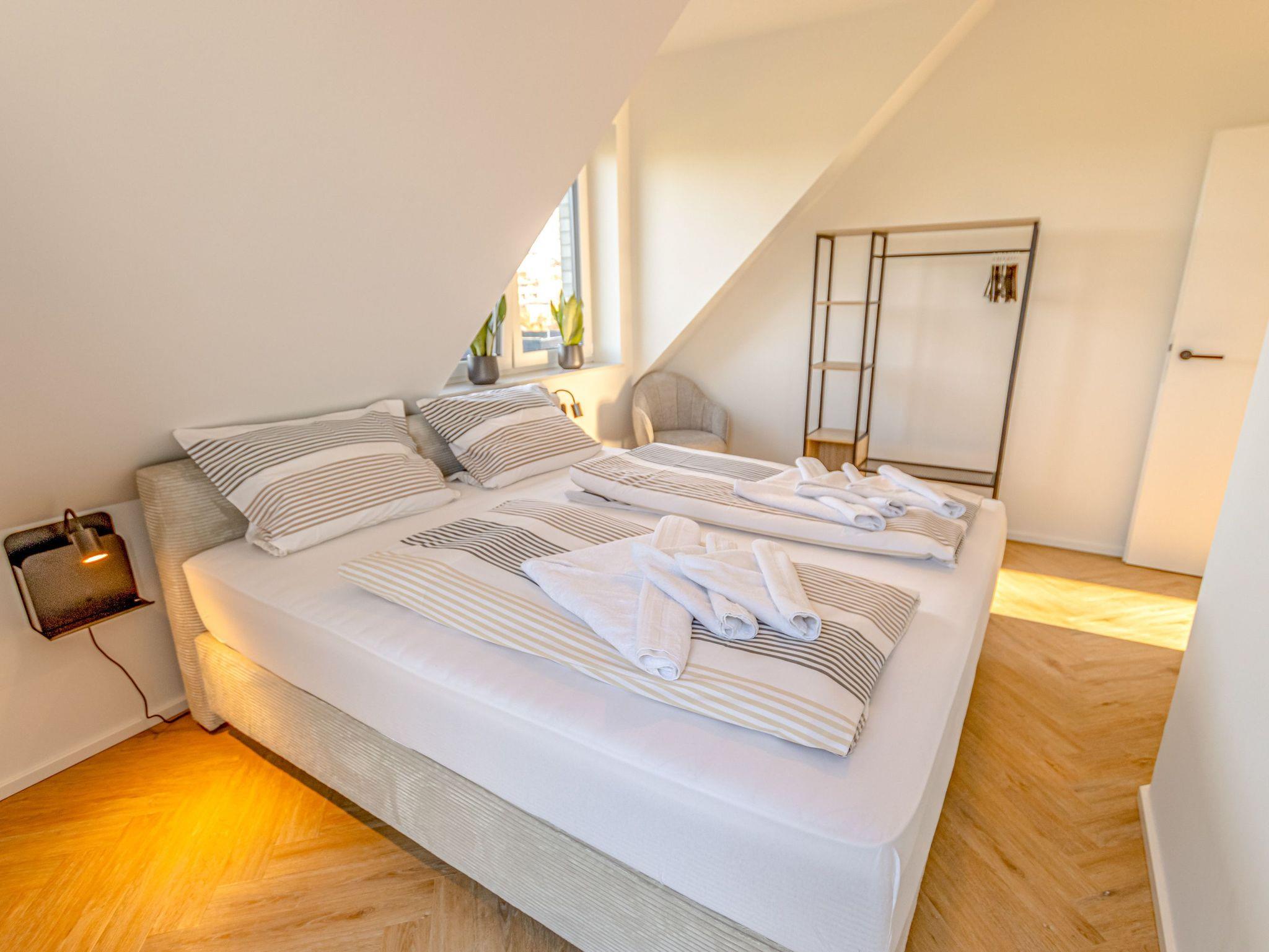 Die Ferienwohnung Friesenloft befindet sich im ersten Obergeschoss, und bietet eine moderne Ausstattung für höchsten Komfort: