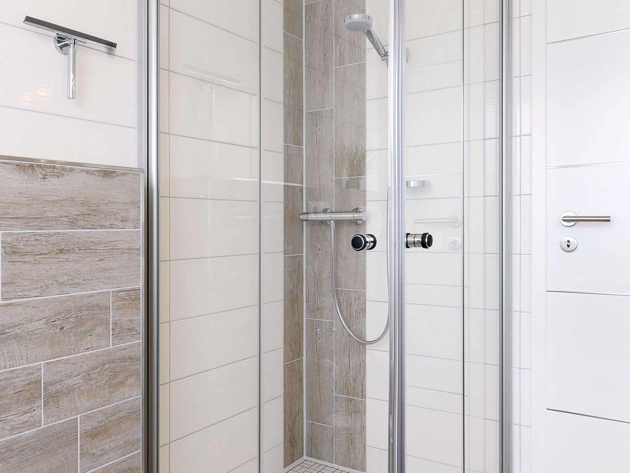 Badezimmer mit Dusche, Waschtisch und WC