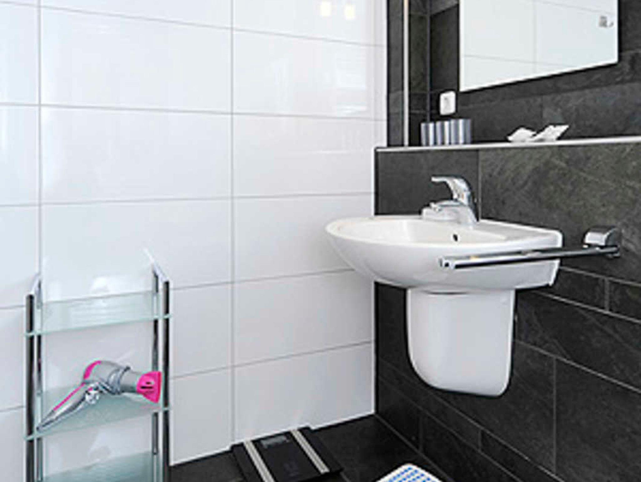 Badezimmer mit Dusche, Waschtisch und WC