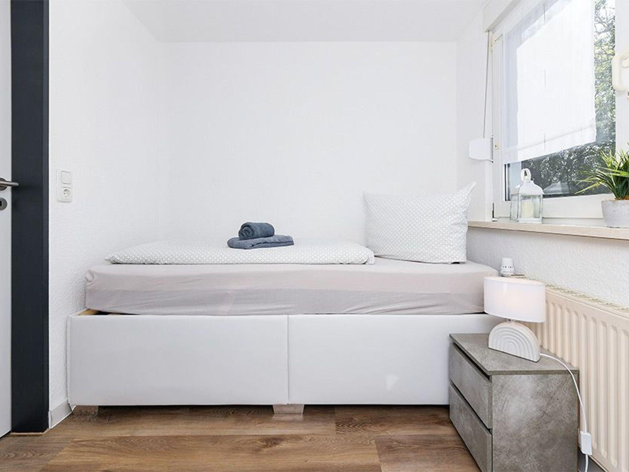 Größe ca. 40 Quadratmeter, Wohnraum mit integrierter Küche, Schlafzimmer, zweites separates, Schlafzimmer/Kinderzimmer, Badezimmer mit Dusche, Waschtisch und WC, Obergeschoss, Balkon, Internetzugang über WLAN möglich, optimal für 2 bis 3 Personen.