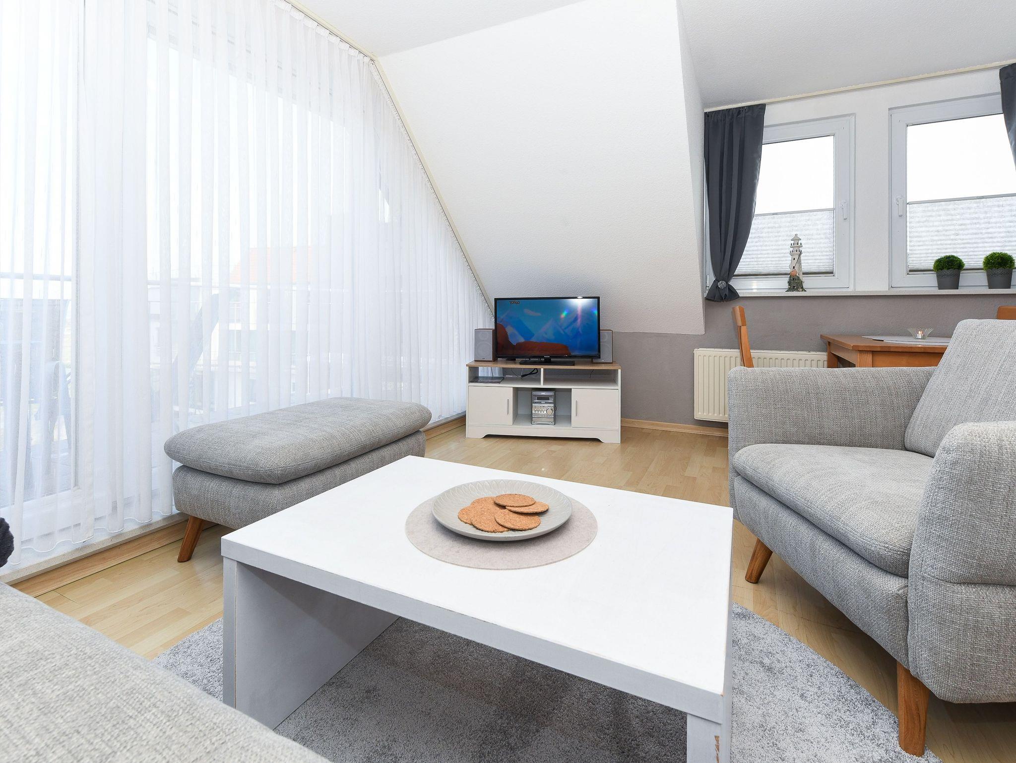 Das zweite Schlafzimmer ist ohne Treppe erreichbar. Das erste Schlafzimmer ist über eine Treppe zu erreichen. Vom Balkon aus haben Sie einen herrlichen Blick auf den Bensersieler Hafen, die Nordsee und die ostfriesischen Inseln, z. B. auf „Langeoog.