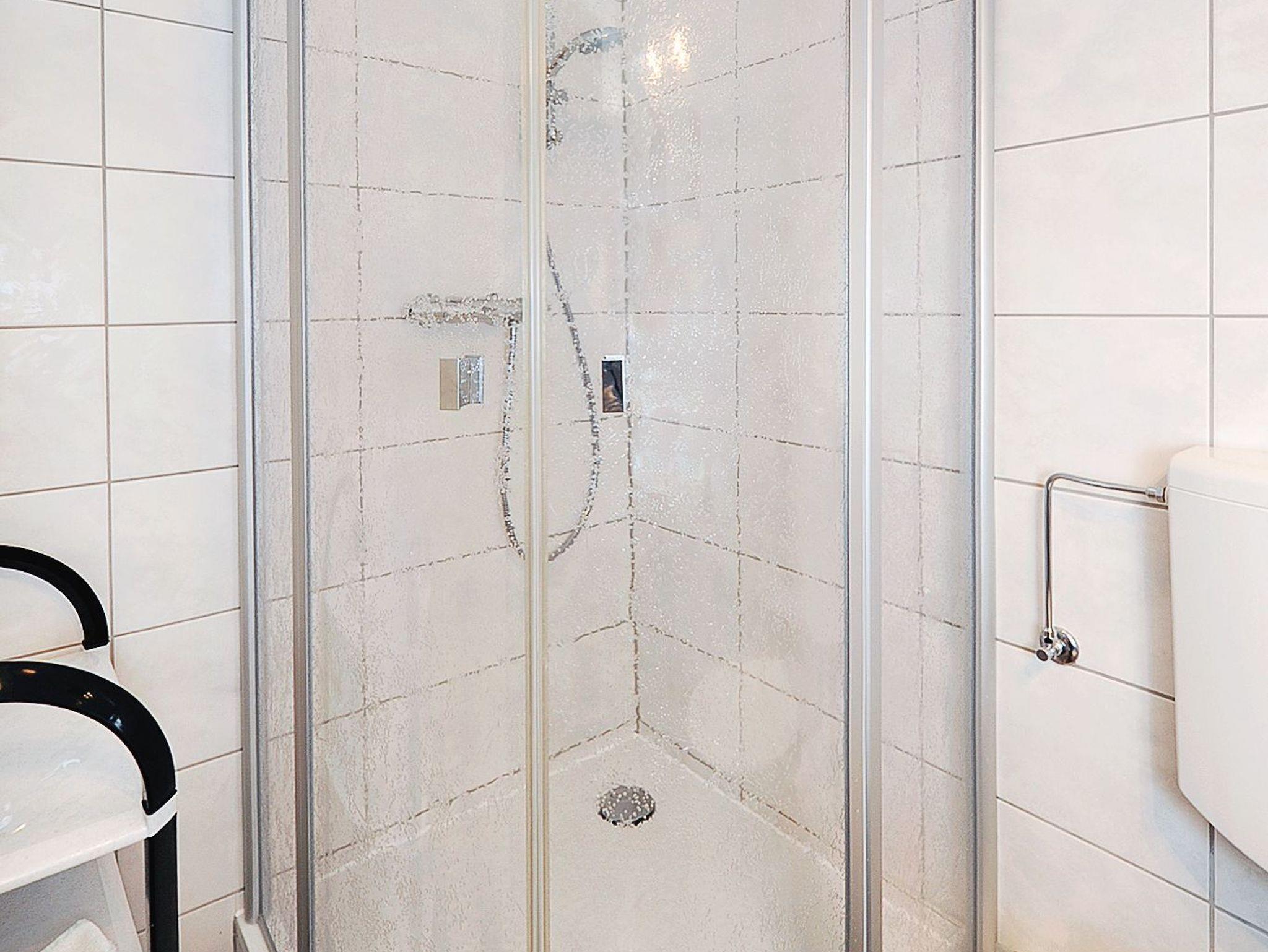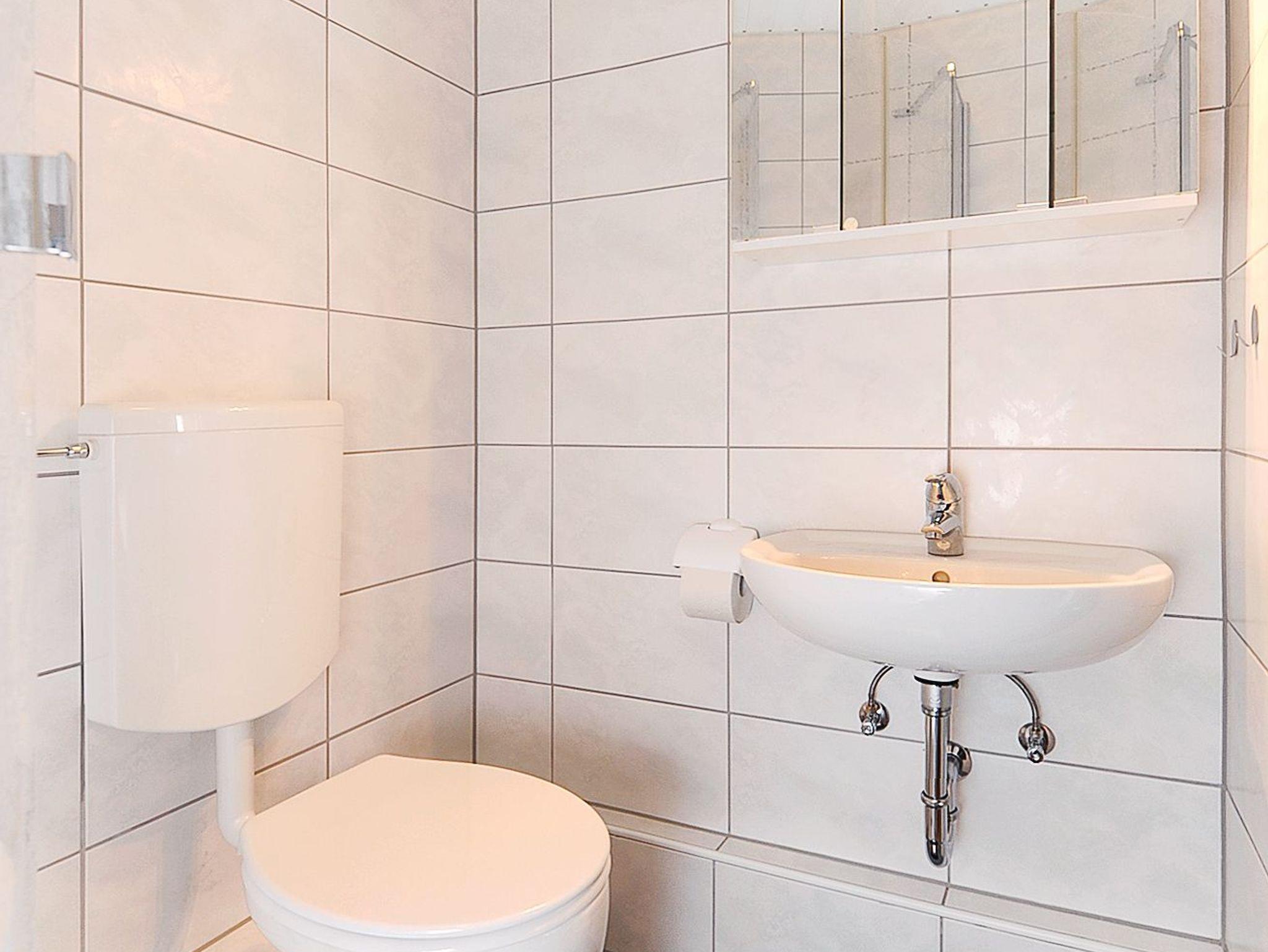Badezimmer mit Dusche, Waschtisch und WC