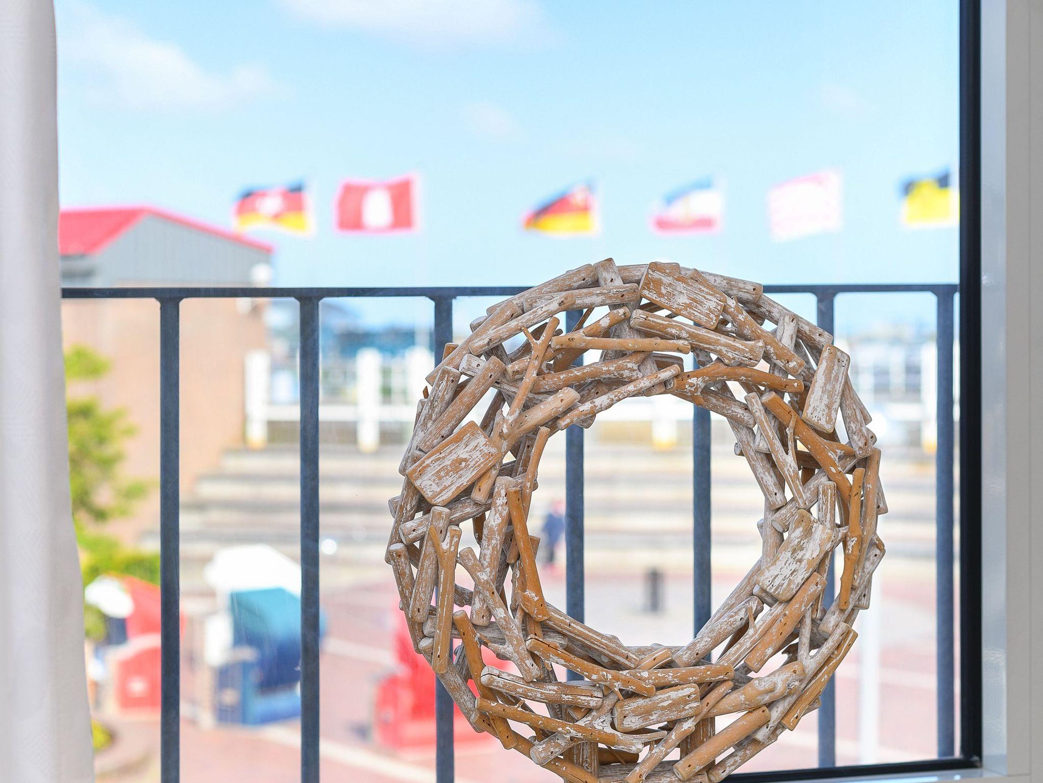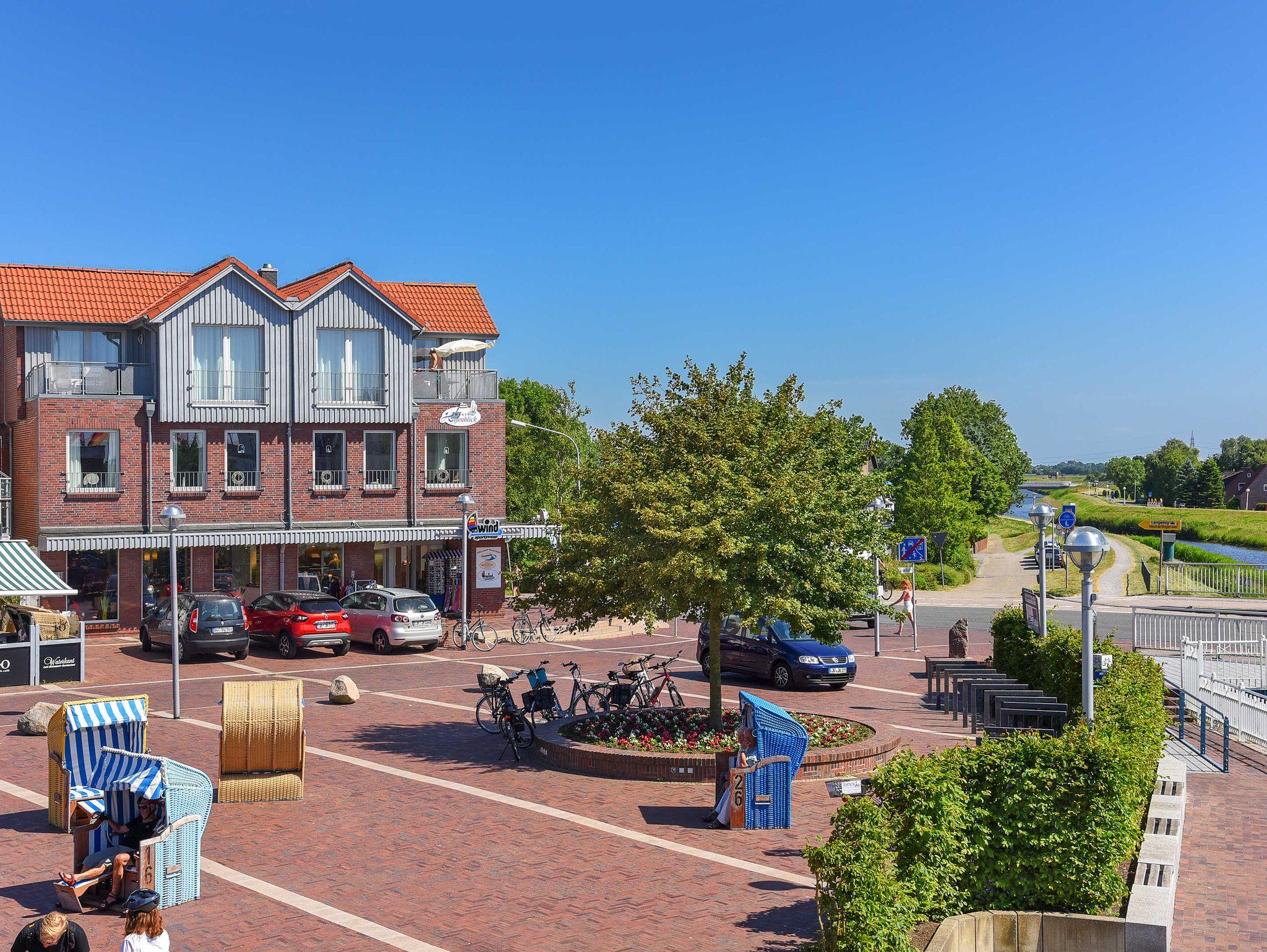 Von der Wohnung „Backbord“ aus haben Sie einen herrlichen Blick auf den Hafen, die Nordsee und das Nordseeheilbad Bensersiel.
