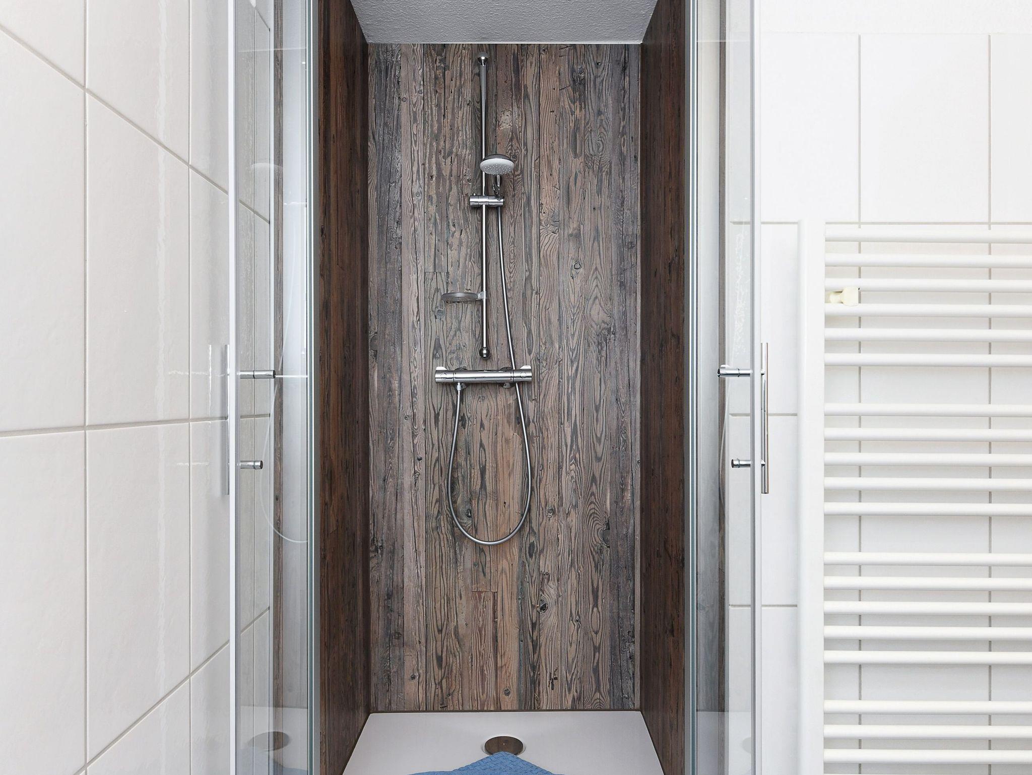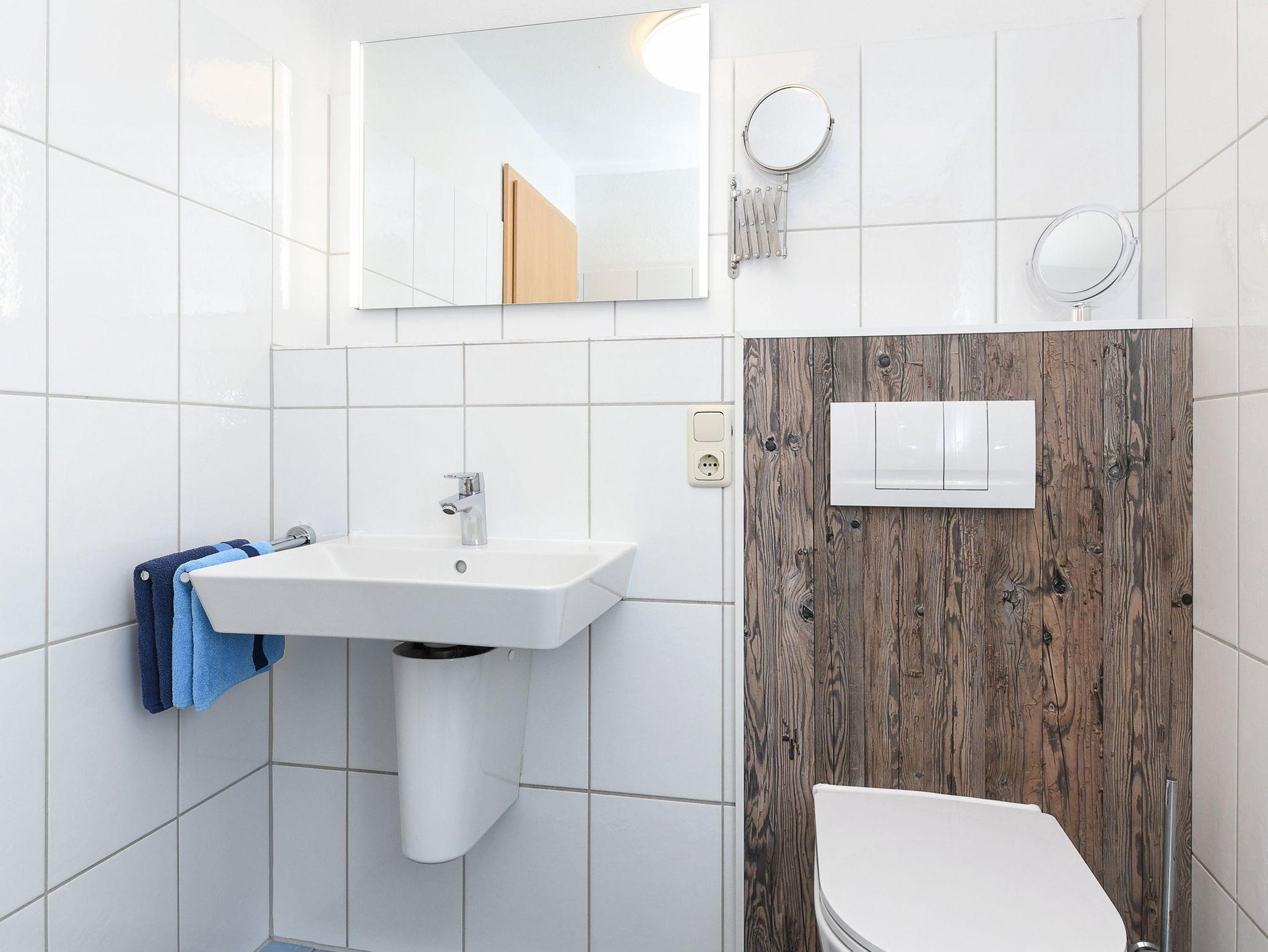 Badezimmer mit Dusche, Waschtisch und WC