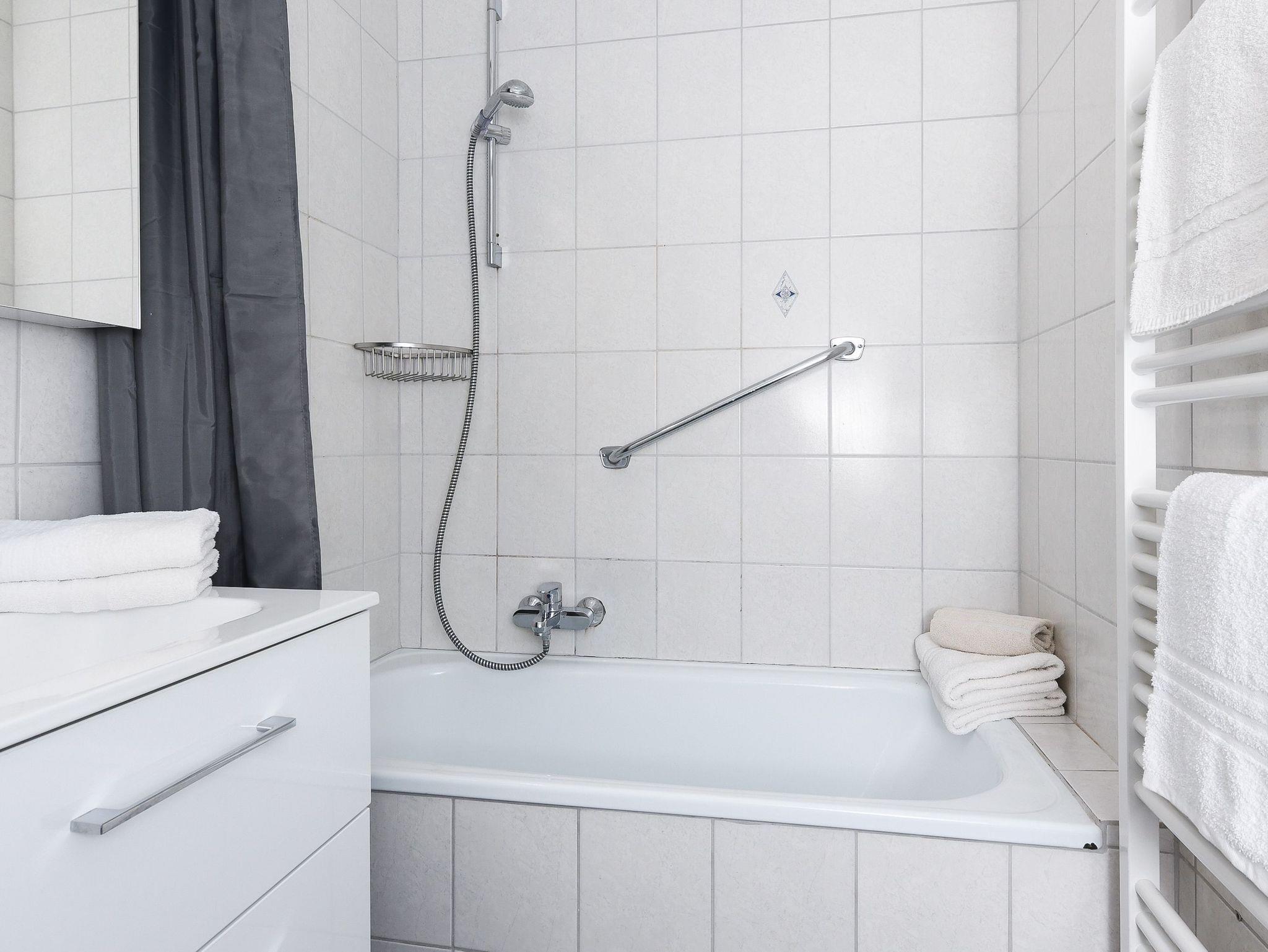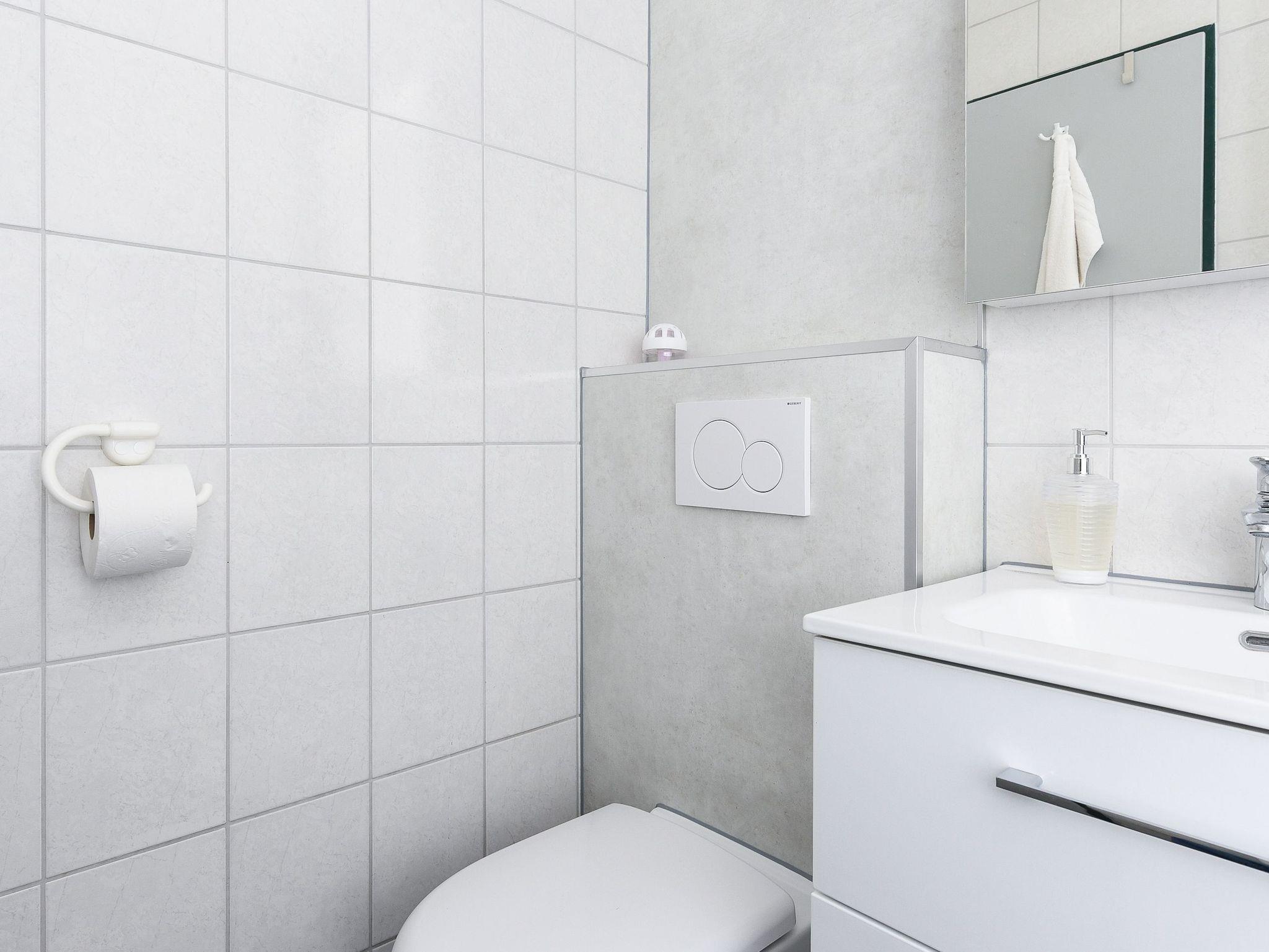 Badezimmer mit Dusche, Waschtisch und WC