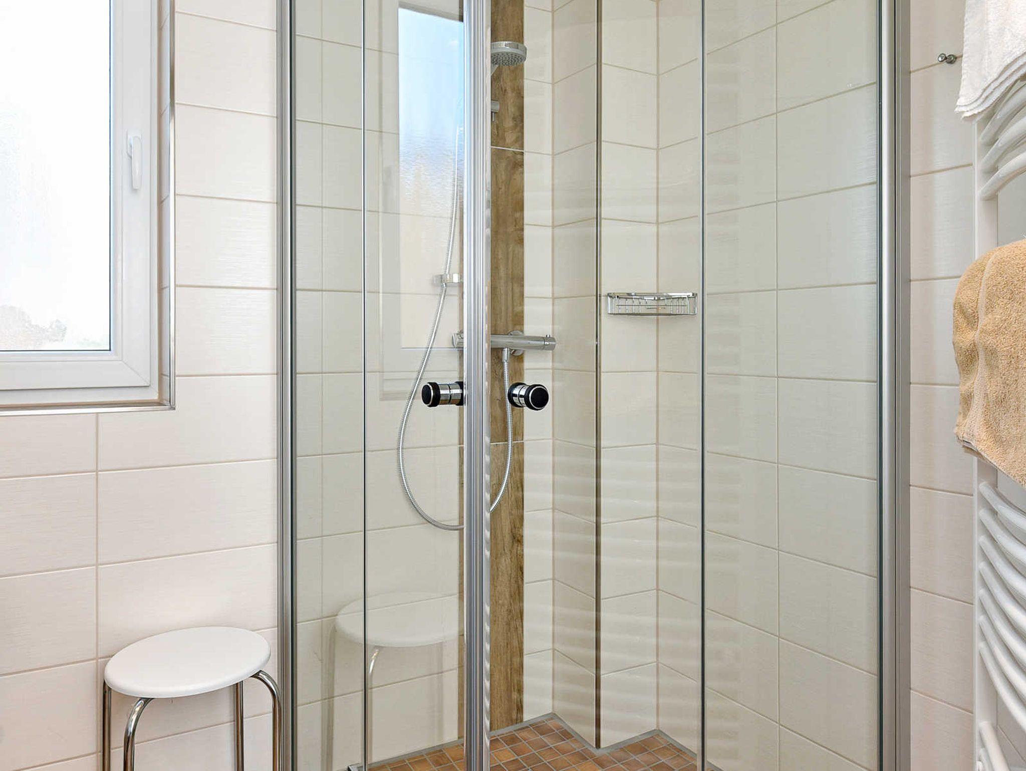 Badezimmer mit Dusche, Waschtisch und WC