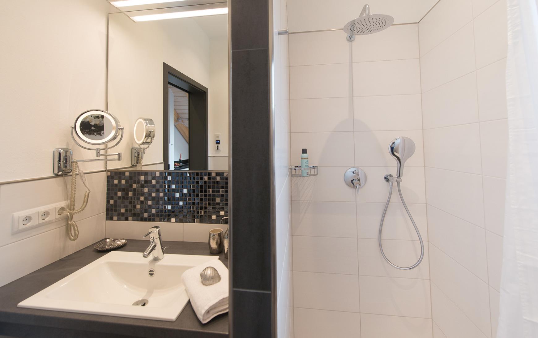 Premium-Bad mit Dusche, Waschbecken und WC & Premium-Ausstattung