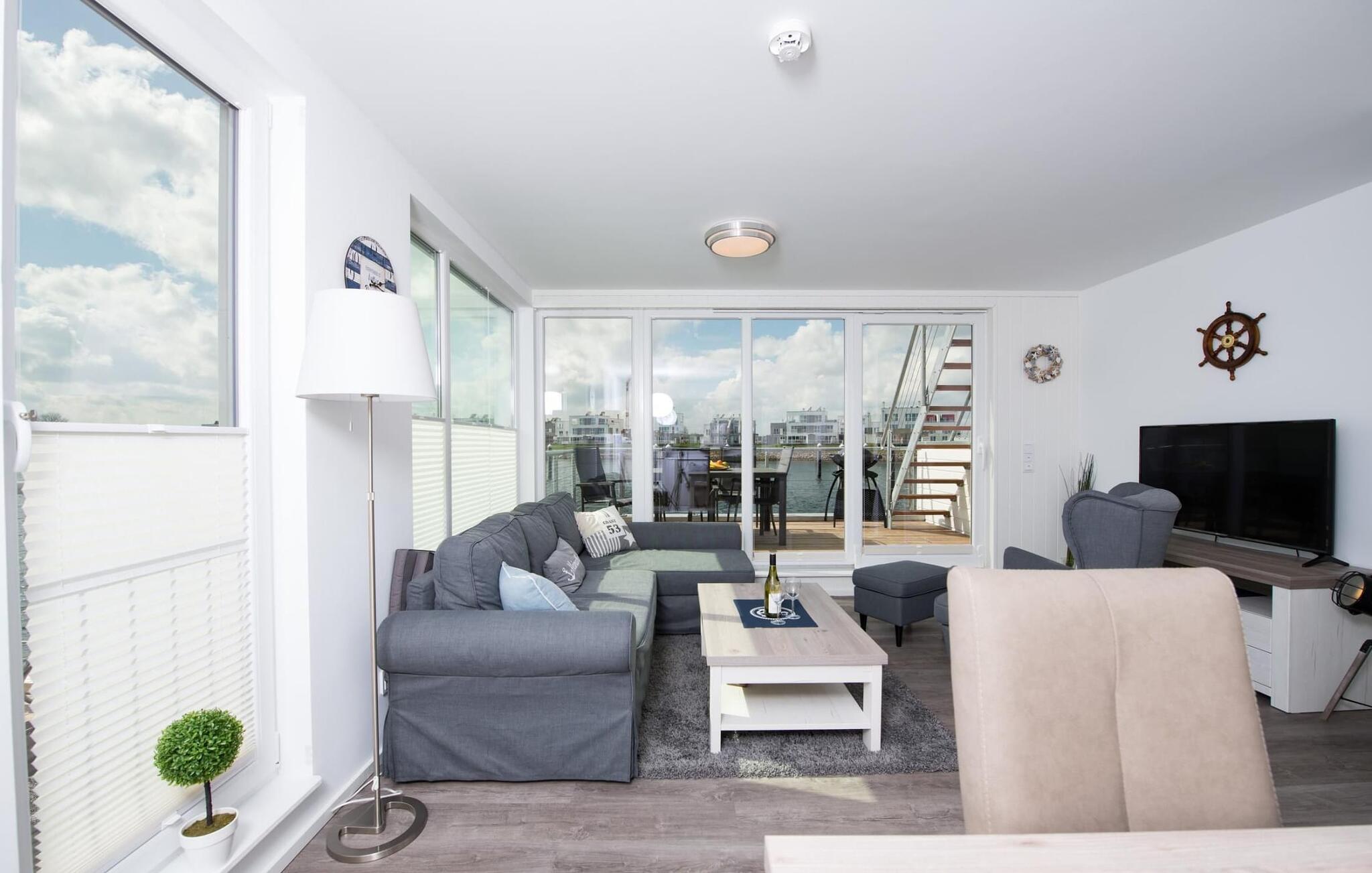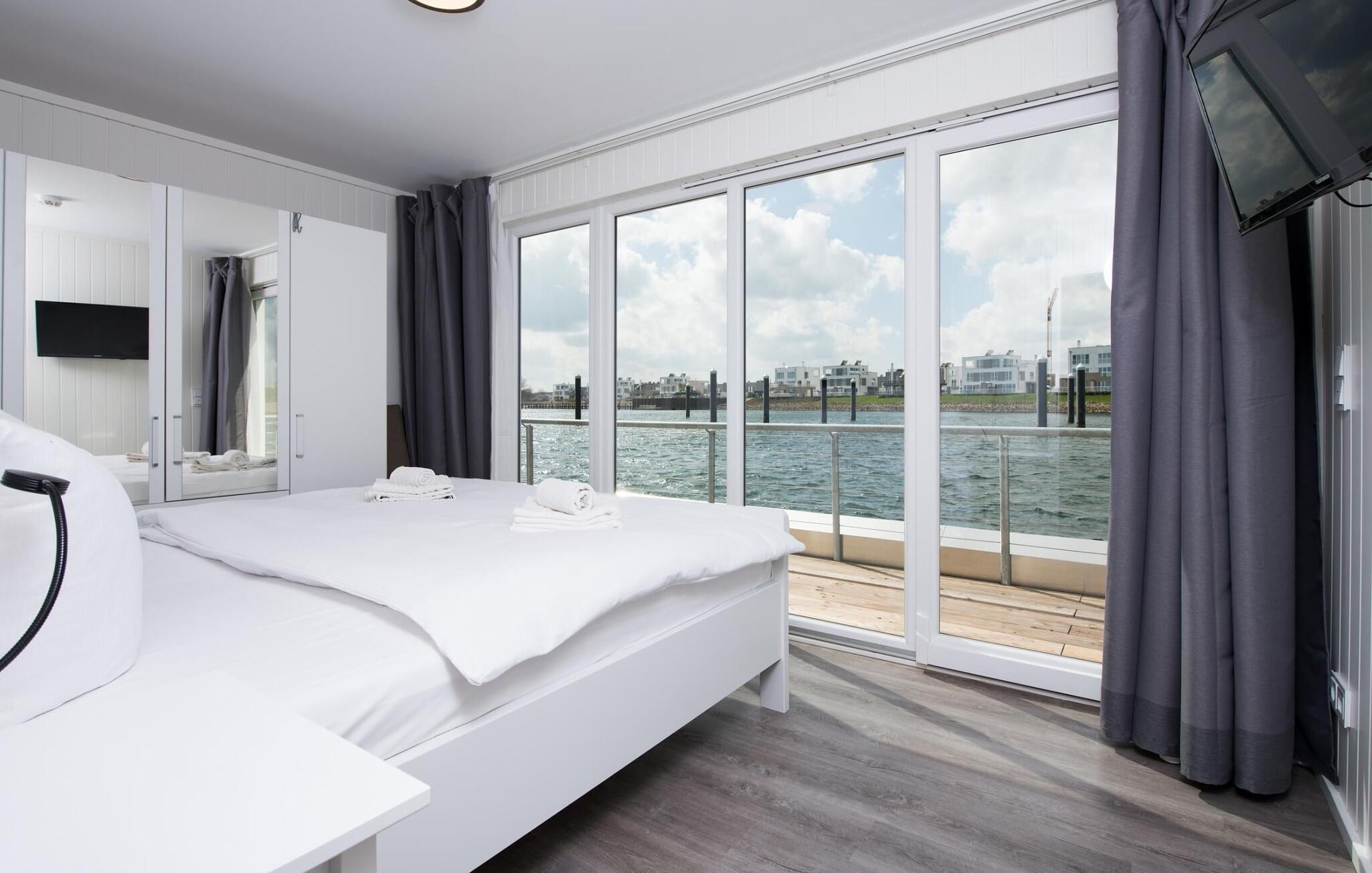 Vann så langt øyet kan se. Det fantastiske landskapet kan nytes gjennom panoramavinduer fra gulv til tak, og takterrassen byr på spektakulær 360-graders utsikt over Schlei, Østersjøen og marinaen. Østersjøen er bare en badestige unna, og sandstranden i Østersjø-feriestedet ligger innen gangavstand. I de mørkere månedene av året sørger gulvvarme og badstue for koselig komfort, og velværeprogrammet om bord er et must. I tillegg til havnekinoen sørger Smart-TV med hjemmeunderholdningsprogram for underholdning.