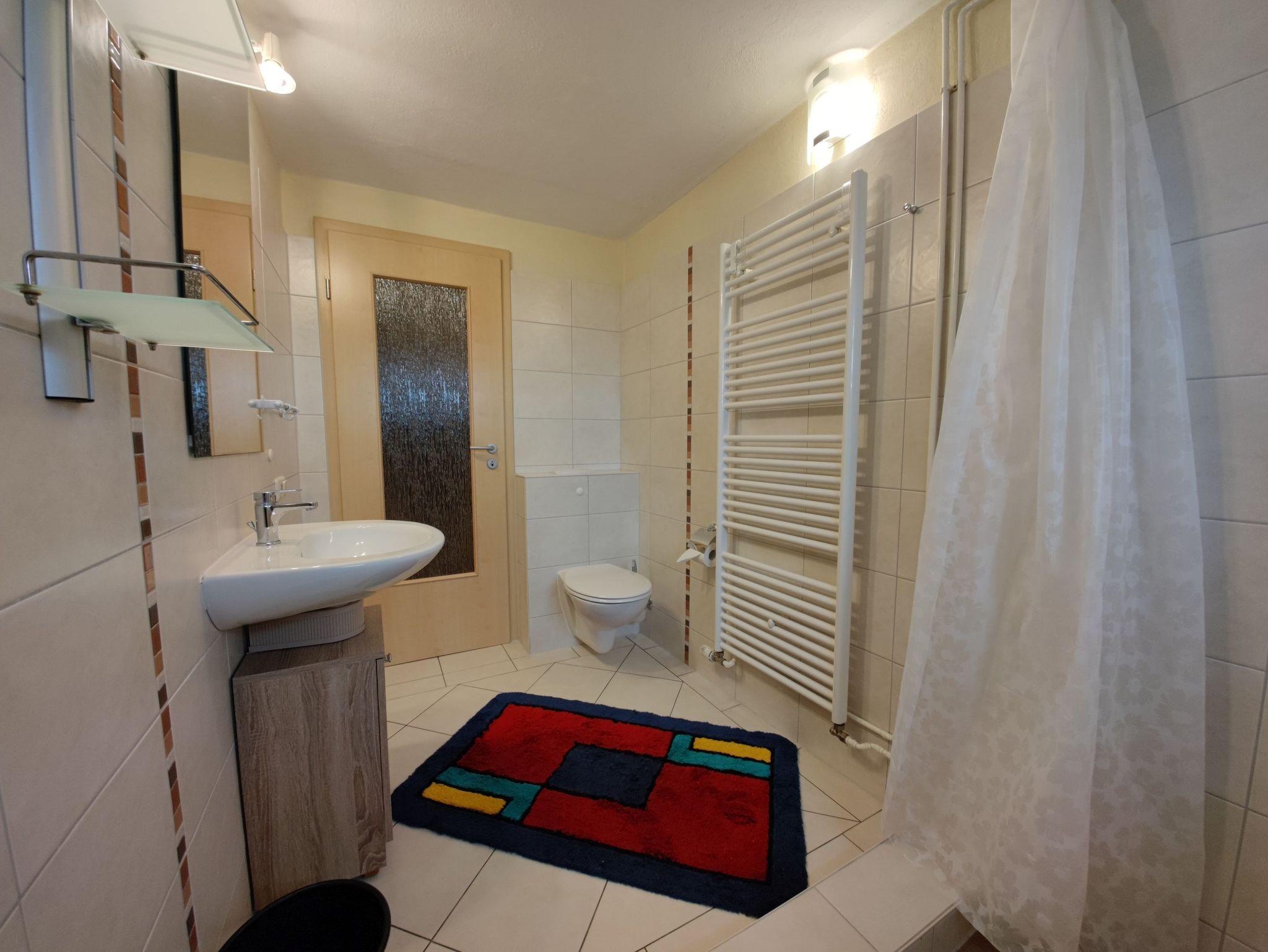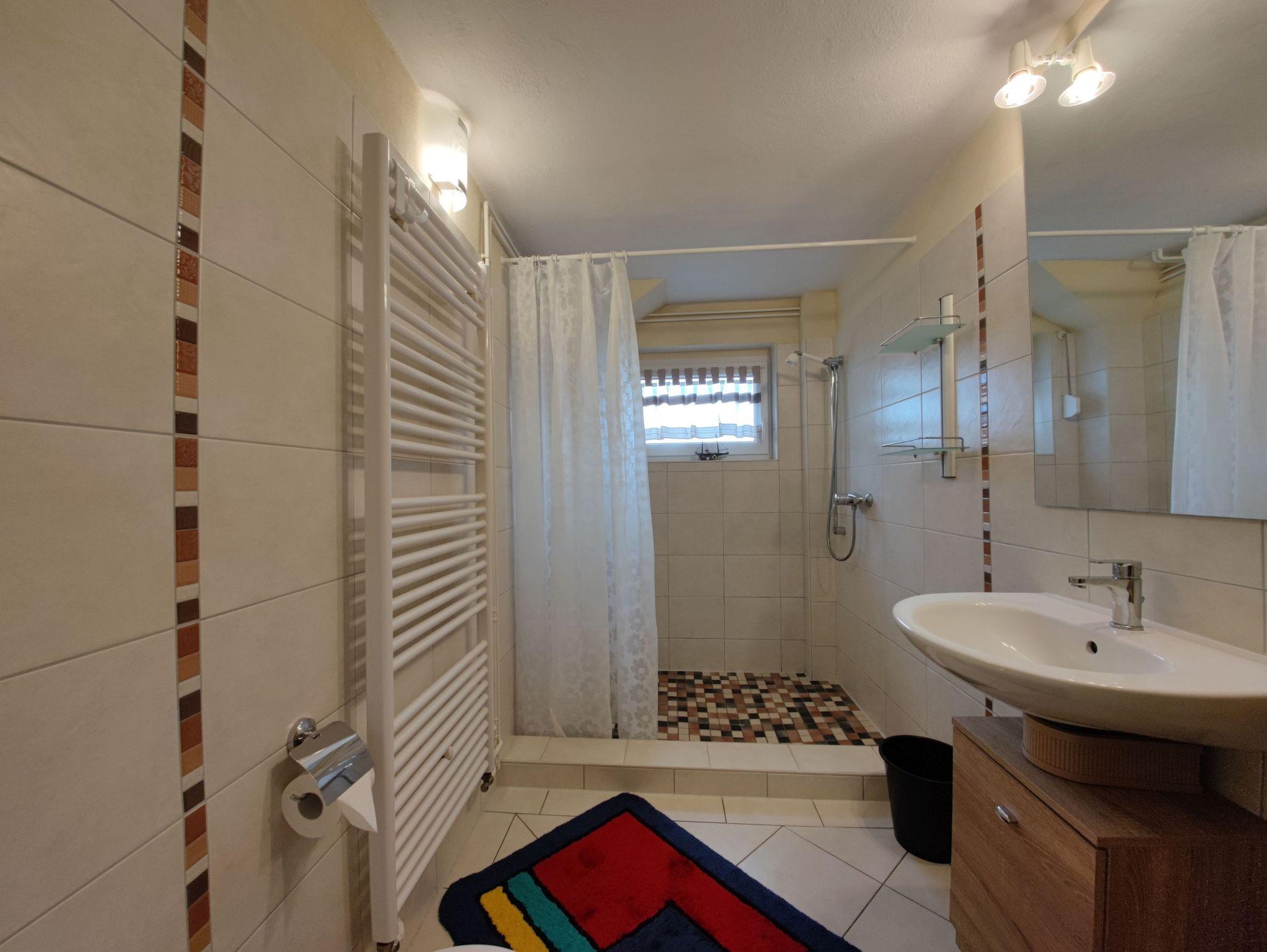 Das Badezimmer mit Dusche und WC sorgt dafür, dass Sie sich morgens erfrischt und bereit für den Tag fühlen können.