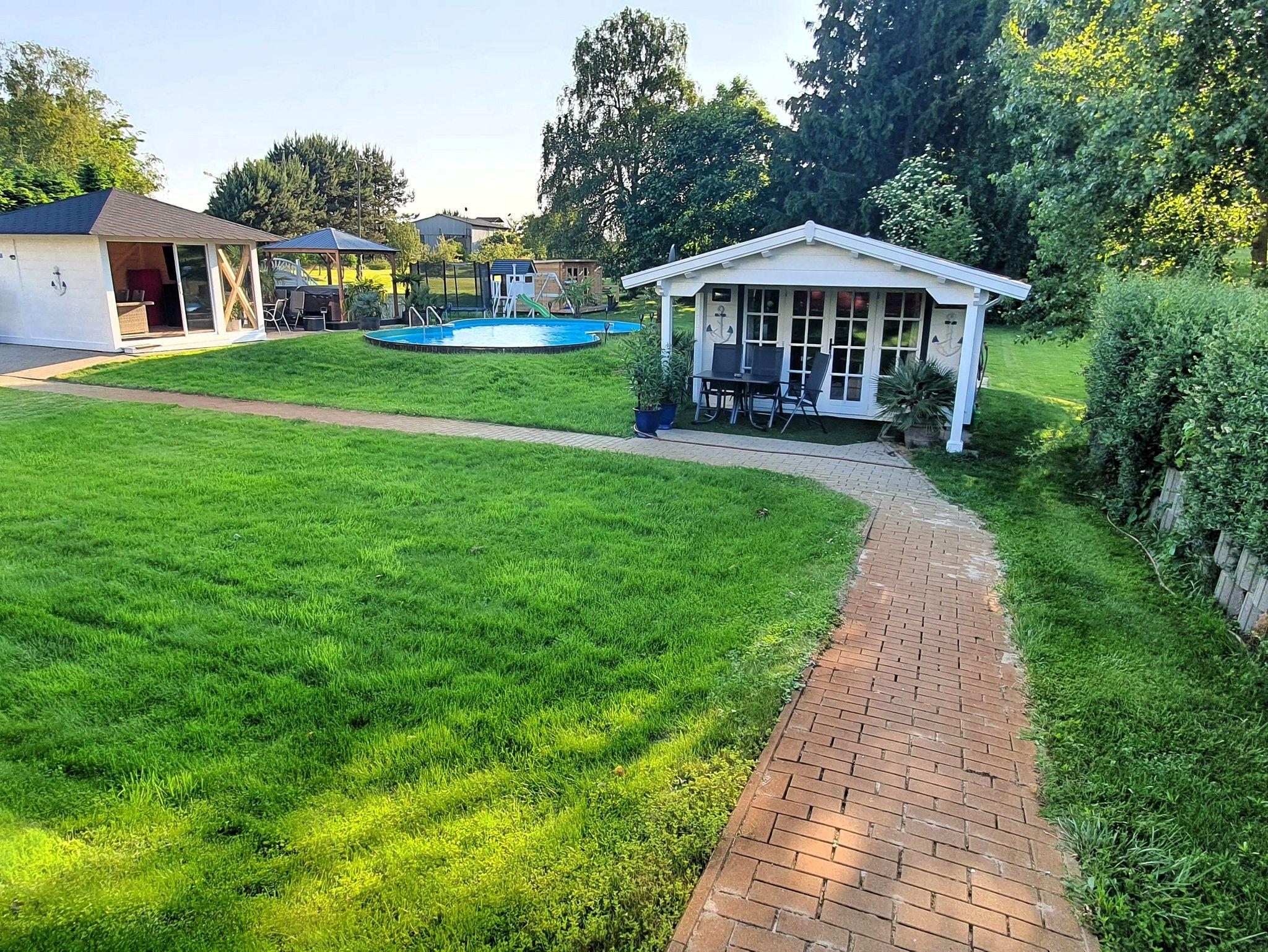 Unser Haus wurde 2014 nach modernsten energetischen Gesichtspunkten auf einem 2.500qm großem Grundstück fertiggestellt und verfügt über mehrere Ferienwohnungen. Liebevoll gestaltete Außenanlagen mit Grillplatz und neu errichteter Pavillon, Swimmingpool und Außen Whirlpool erhöhen den Komfort. Spielturm und Trampolin für Kinder, kostenlose Parkplätze vor dem Haus.