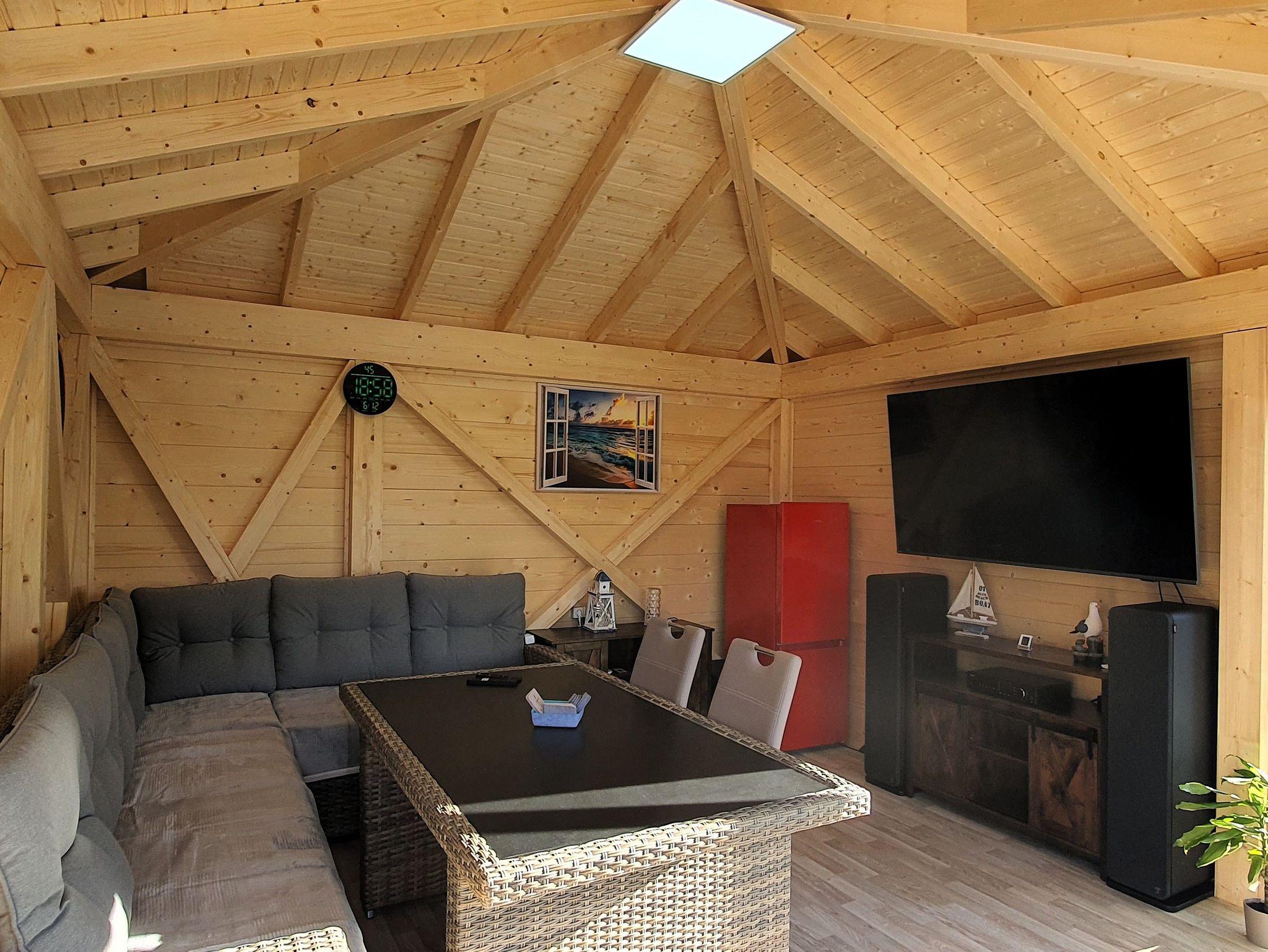Neuer Pavillon (2025) mit 65-Zoll-Fernseher, Kühlschrank und Soundanlage
