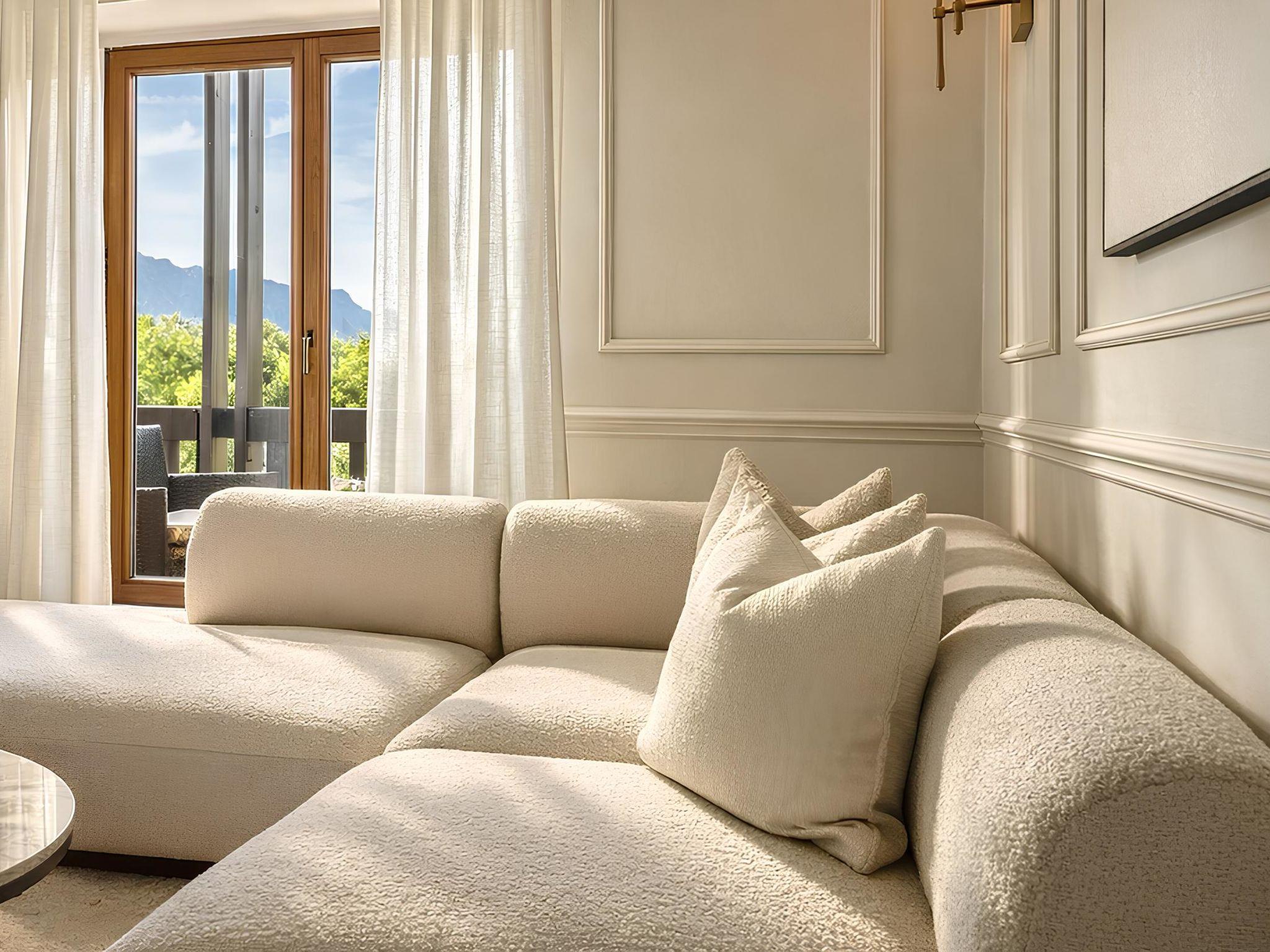 "Am Obersalzberg", 2-room apartment 70 m2 on 1st floor. Luxurious and stylish furnishings: living/dining room with dining table and digital TV. Exit to the balcony. 1 room with 1 double bed (180 cm, length 200 cm), digital TV. Kitchen (oven, dishwasher, 4 ceramic glass hob hotplates, toaster, kettle, microwave, electric coffee machine) with small dining table. Shower/WC. Heating. Balcony. Balcony furniture. Very beautiful panoramic view of the mountains. Facilities: washing machine. Internet (WiFi, free). Parking (1 car) at the house. Please note: non-smokers only. Smoke alarm, fire extinguisher. Internet Smart-TV.