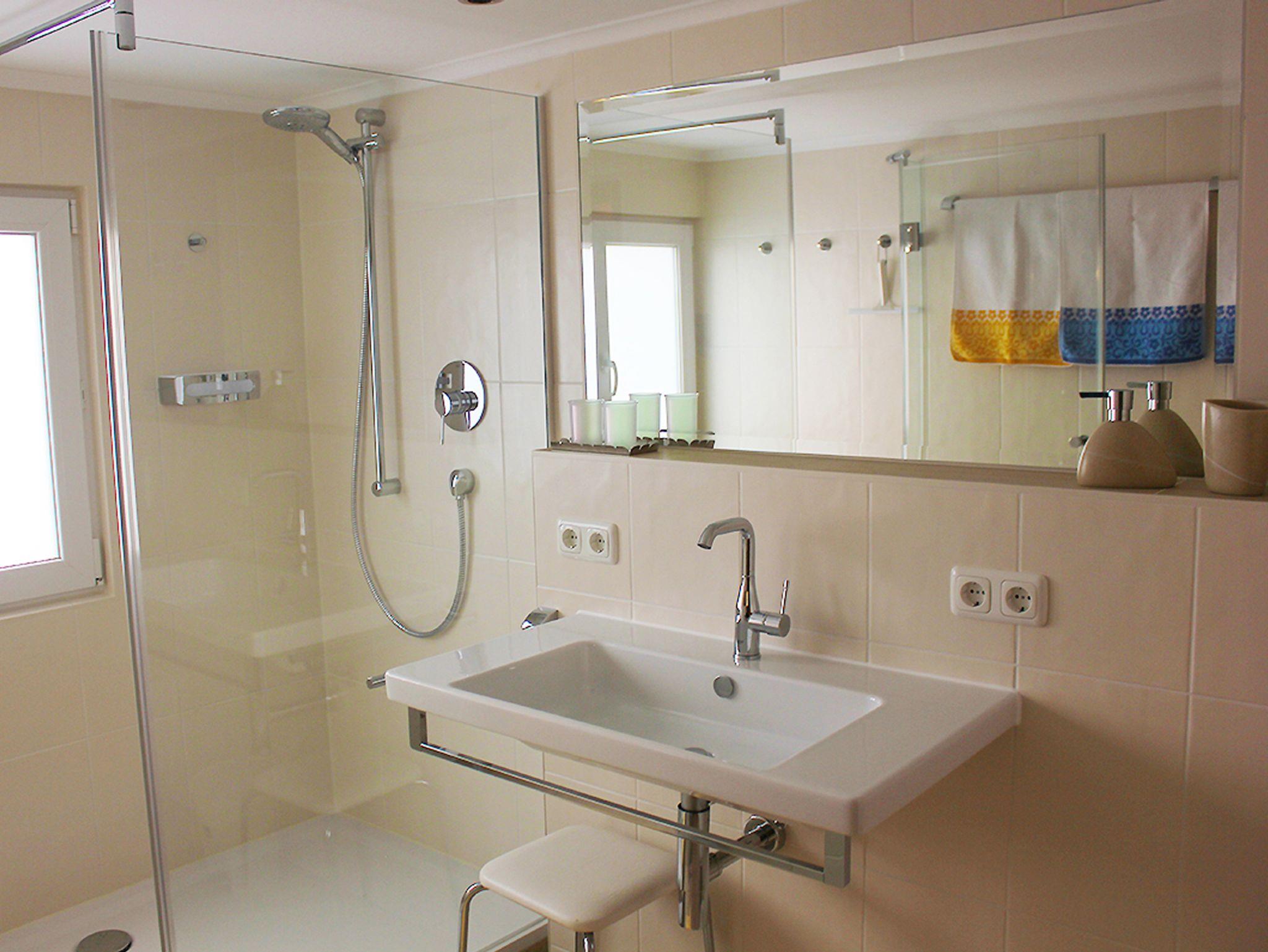 Unsere sehr ruhige Maisonette mit zwei Schlafzimmern haben wir 2018 für Sie frisch renoviert. Sie verfügt über einen eigenen Eingang. Das Schlafzimmer auf der Empore ist mit einem gemütlichem Doppelbett mit hochwertigen Matratzen ausgestattet. In der modernen und vollwertig ausgestatteten Küche können Sie sowohl Ihre kulinarischen Vorhaben umsetzen, als auch gemütlich zusammensitzen – der Essbereich bietet Platz für vier Personen. Im Wohnzimmer befinden sich Satellitenfernseher, DVD-Player und eine Stereoanlage für gemütliche Abende oder falls es doch mal ein Stündchen regnet. Ihr Bad verwöhnt Sie mit einem neuen hochwertigen Waschbecken und einer Regendusche. Es gibt einen Fön und die große Spiegelfläche bietet ausreichend Ablagemöglichkeiten. Die Toilette ist im Bad integriert. Ein Südbalkon steht Ihnen zur alleinigen Verfügung. Sie dürfen den großen Garten mit Liegewiese, verschiedenen Sitzmöglichkeiten und einem Grillplatz gerne mit benutzen. Für Radlbegeisterte haben wir Fahrradstellplätze eingerichtet. Zusätzlich dürfen Sie gerne unseren Hauswirtschaftsraums mit Waschmaschinen und Trockner mit benutzen.