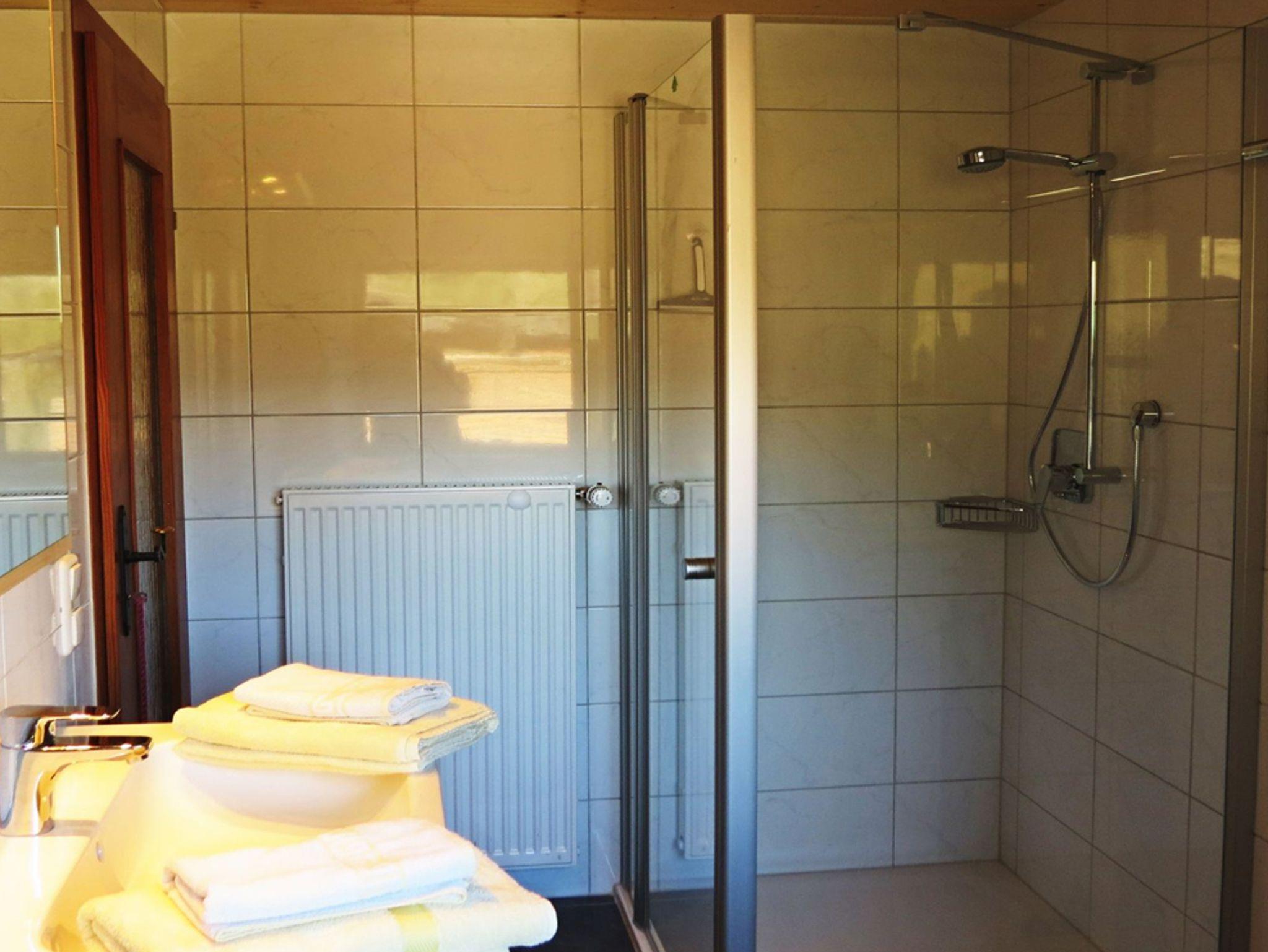 Sehr geräumige, im ländlichen Stil eingerichtete Ferienwohnung in traumhafter Alleinlage.Die Ferienwohnung ist mit über 100 m² sehr geräumig. Alle Möbel wurden vom Hausherrn und Schreinermeister kunstvoll handgefertigt - jedes ein Unikat. Drei Schlafzimmer mit fünf Schlafgelegenheiten bieten besonders Familien viel Platz. Die Wohnung verfügt außerdem über eine vollausgestatte Küche mit Essecke sowie eine Waschmaschine. Auch für die kleinsten Gäste ist gesorgt – Babybettchen, Hochstuhl und Schaukel runden den Familienurlaub ab. Eine Tischtennisplatte mit Schlägern und Bällen steht ebenfalls zur Verfügung.Eine großzügige, überdachte Terrasse mit Holzkohlegrill lädt zu lauschigen Sommerabenden ein.Da die Zufahrt zum Haus eher schmal ist, findet eine Vermietung nur im Sommer statt.