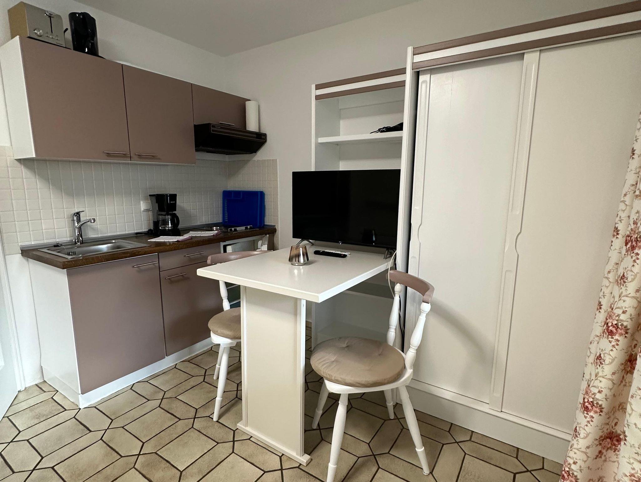 Unsere kleinste Wohnung im ersten Stock verfügt über einen Wohn-Schlafraum (All-in-One-Room) mit praktischer Küchenzeile und Kabelanschluss, Kabel-TV und WLan. Der helle Essbereich für zwei Personen ist praktisch und