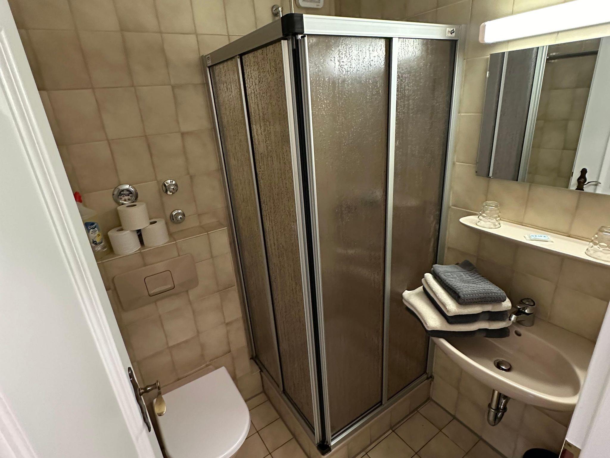 Alle Küchenutensilien für den täglichen Bedarf sind vorhanden. Im kleinen privaten Badezimmer finden Sie Dusche/WC