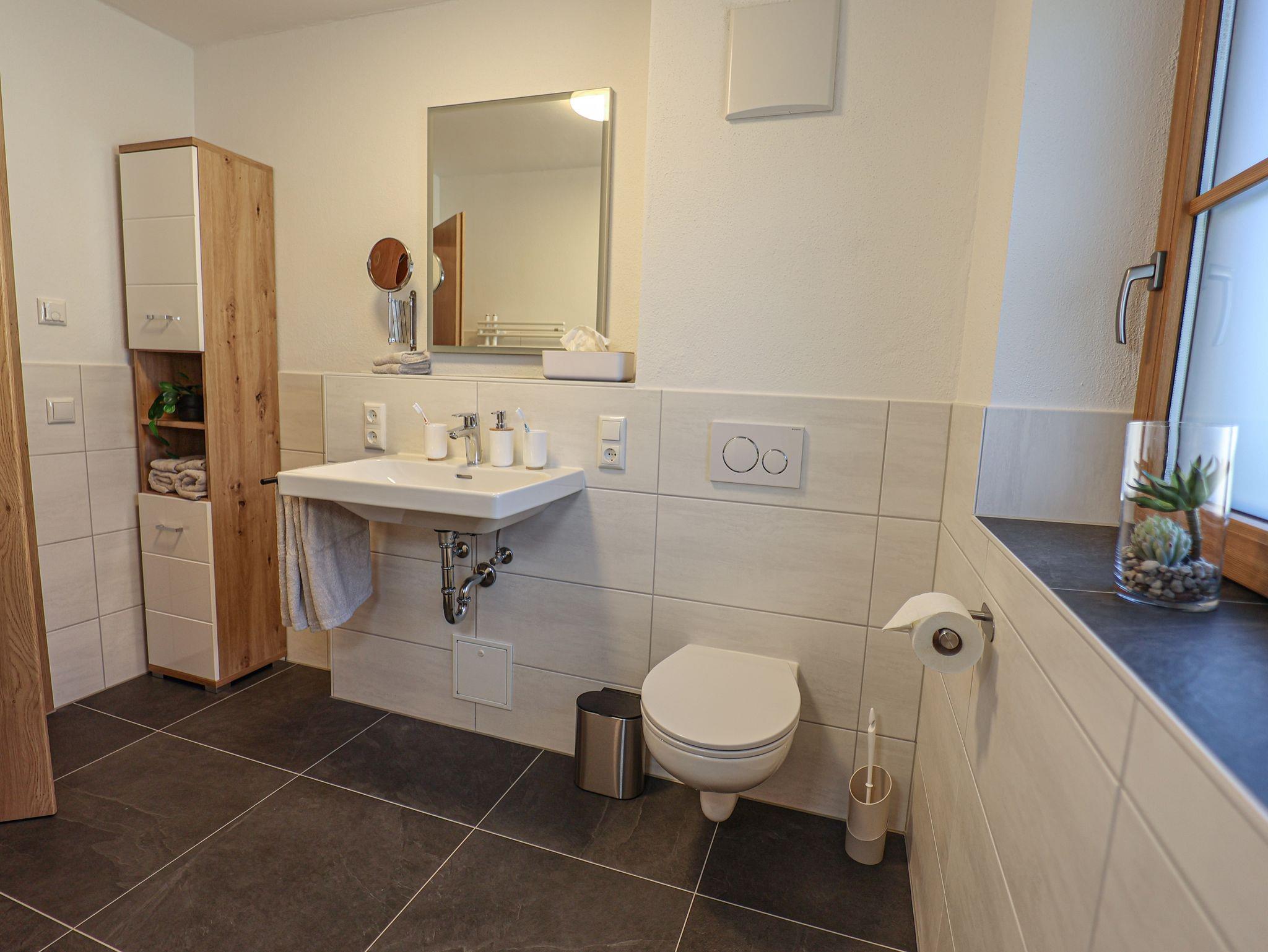 In unseren Bädern finden Sie ausreichend Frottiertücher, einen Handtuchwärmer, sowie eine ebenerdig