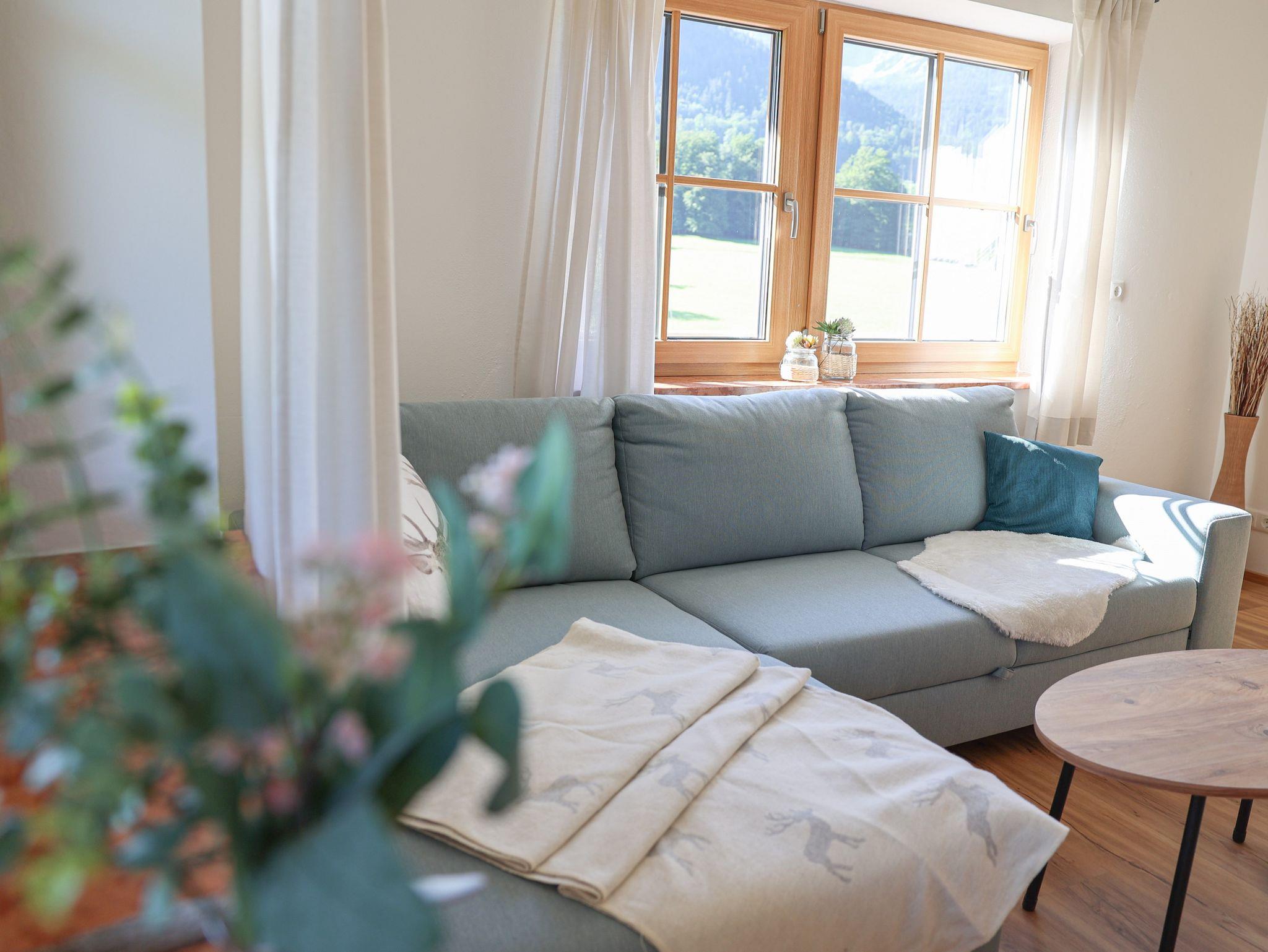 Das gemütliche Wohnzimmer verfügt über eine Ausziehcouch, einem Flachbild-TV und ausreichend