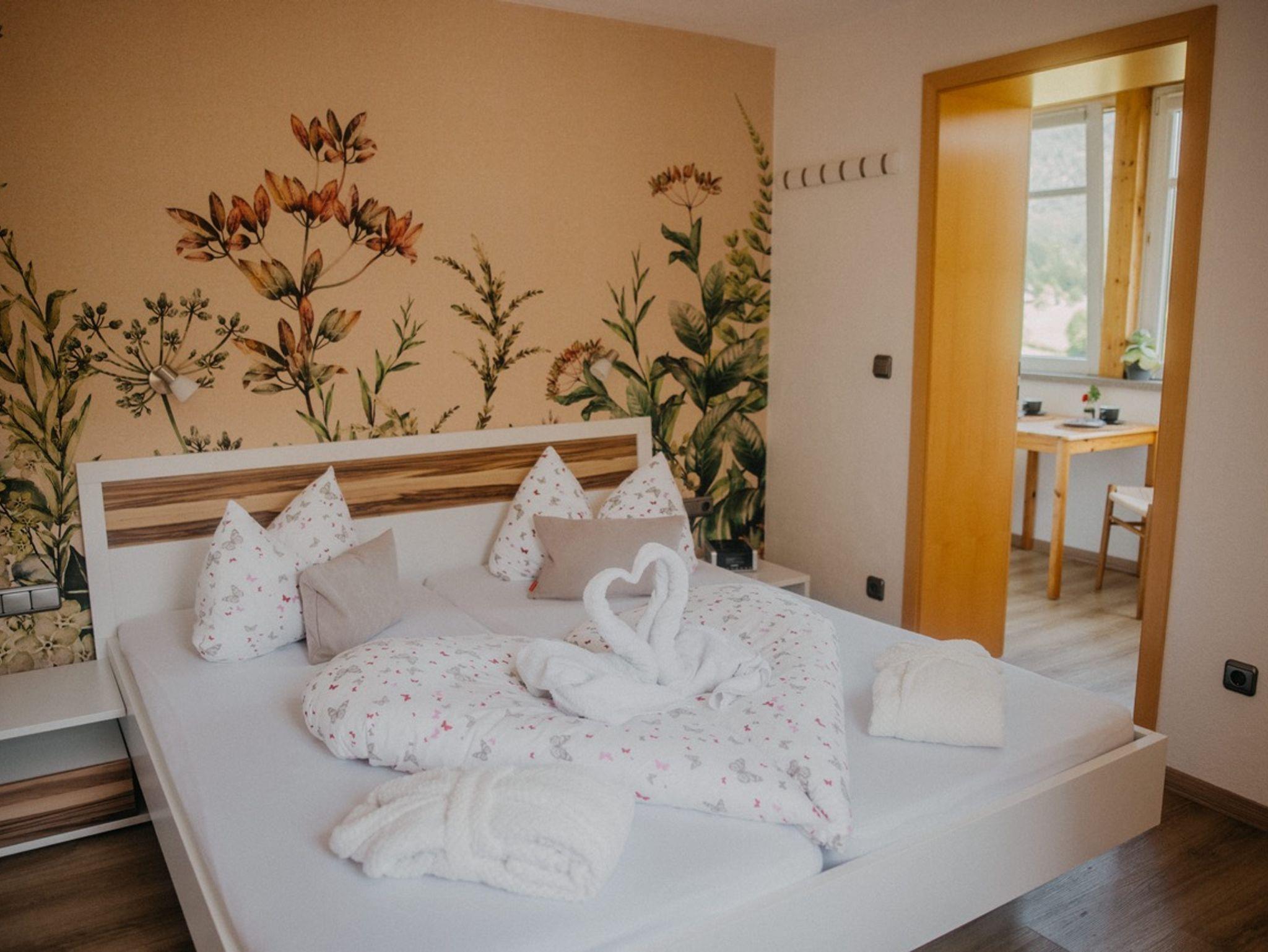 Unsere beiden Ferienwohnungen bieten Ihnen einen atemberaubenden Blick auf die umliegenden Berge und Wiesen – ein wahrer Augenschmaus, der Sie jeden Tag aufs Neue verzaubern wird. Die 80 m² große, private Terrasse lädt dazu ein, die frische Bergluft zu genießen, während Sie entspannen und die Natur um sich herum auf sich wirken lassen. Ob beim Frühstück in der Morgensonne oder beim abendlichen Glas Wein unter dem Sternenhimmel – hier wird jeder Moment zum besonderen Erlebnis.