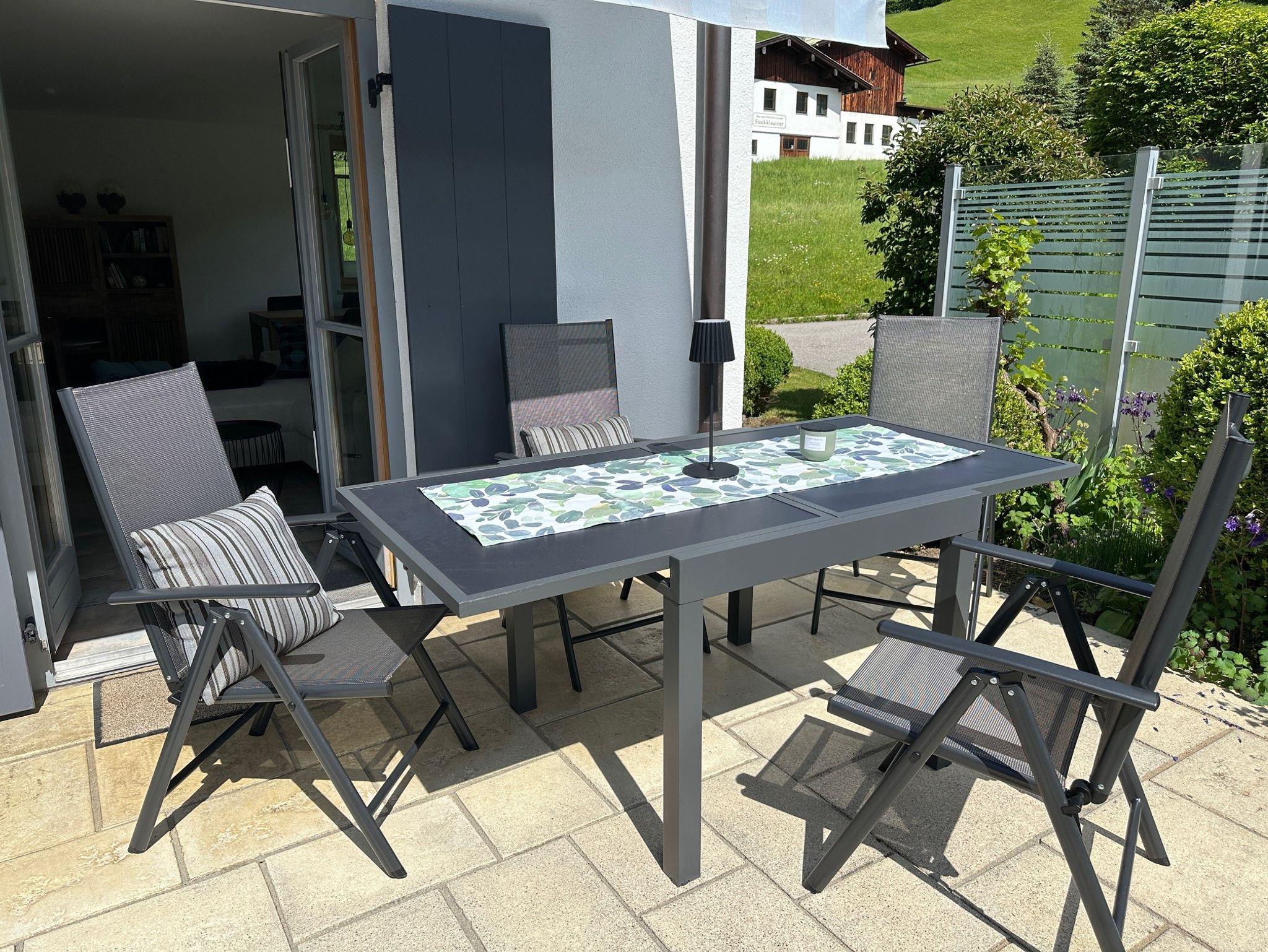Die Ferienwohnung bietet 2 wunderschöne Terrassen mit tollem Ausblick auf die Berge zum Frühstück mit Bergblick oder Chillen und Erholen.