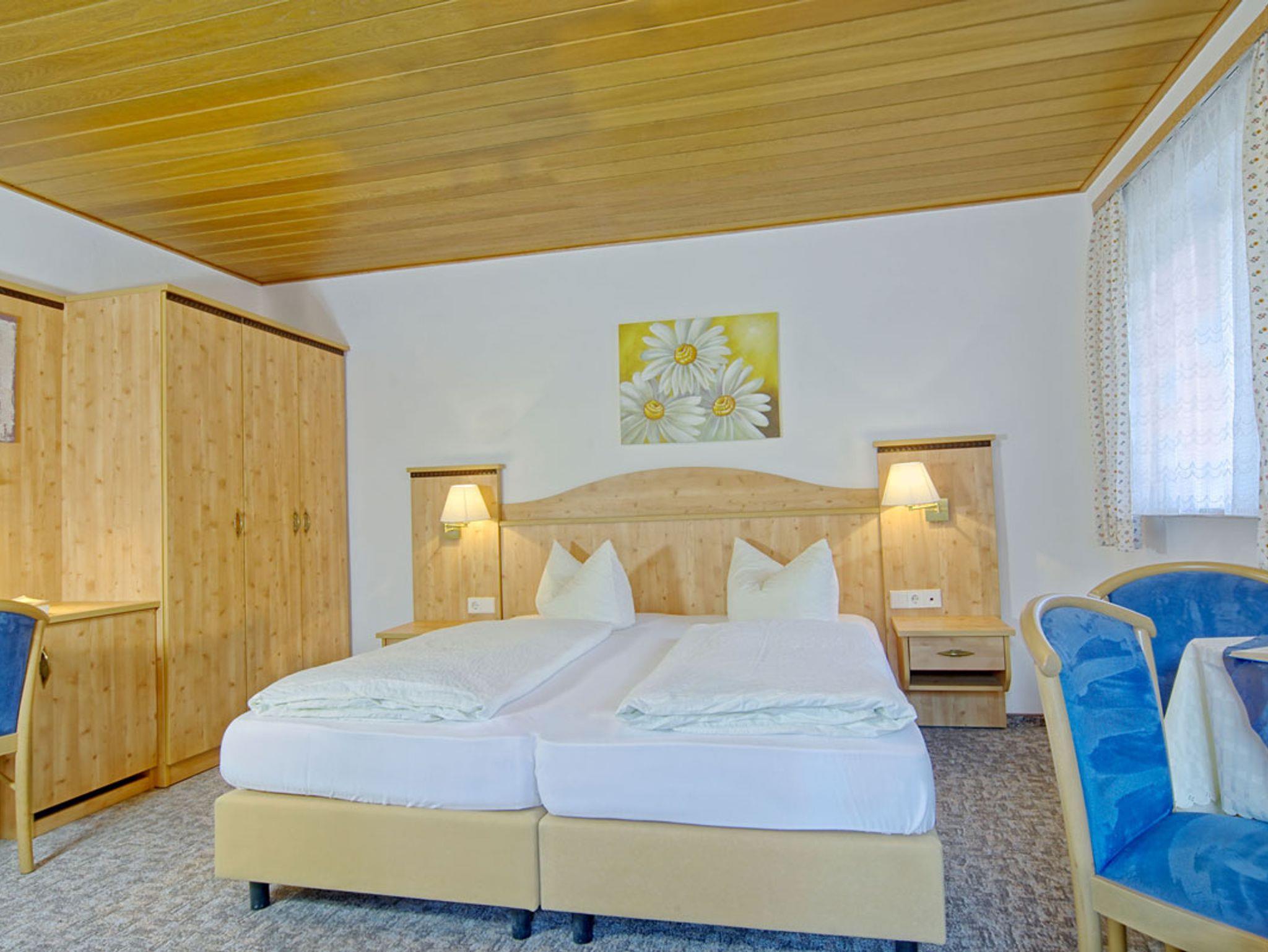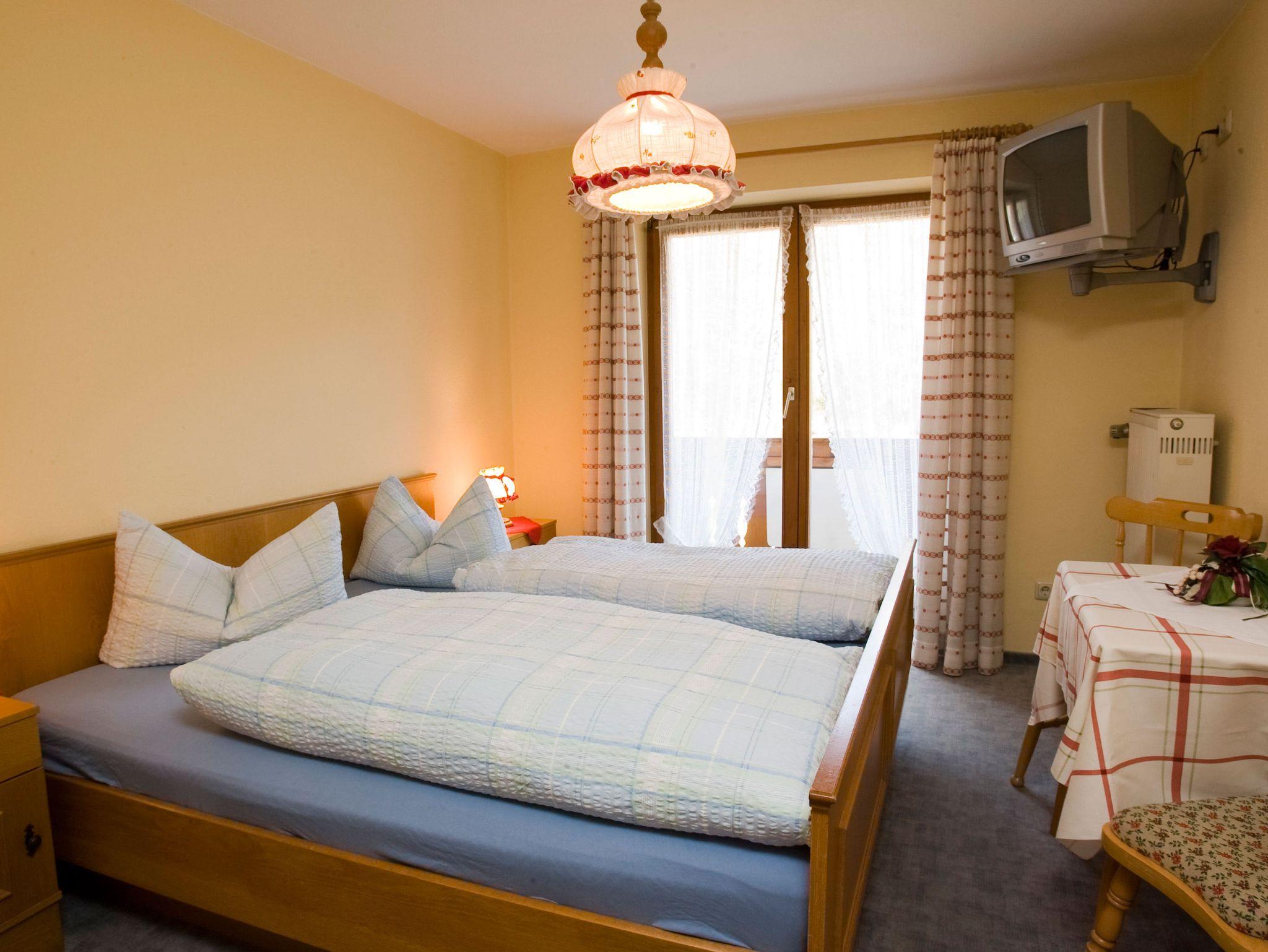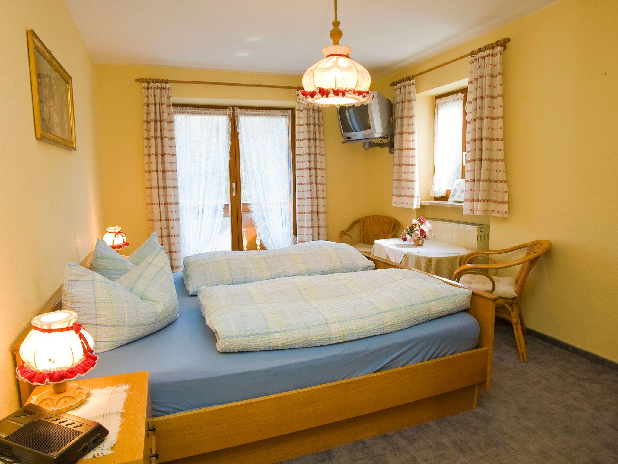 Die Doppelzimmer sind rauchfrei und haben Laminatboden. 4 von 5 Zimmer haben Balkon und Bergblick, Sonne bis in der Nachmittag. Das Gästehaus bietet 1 Zimmer Parterre mit ebenerdiger Dusche. - Neu renoviert - Teilweise mit Boxspringbetten (getrennte Betten möglich) - Gemütliche Sitzecke - Schreibtisch (Zimmer Parterre nicht) - Kabel TV, Flachbild - Radiowecker - Verdunkelungsvorhänge - Neu renovierte Bäder mit Dusche/WC