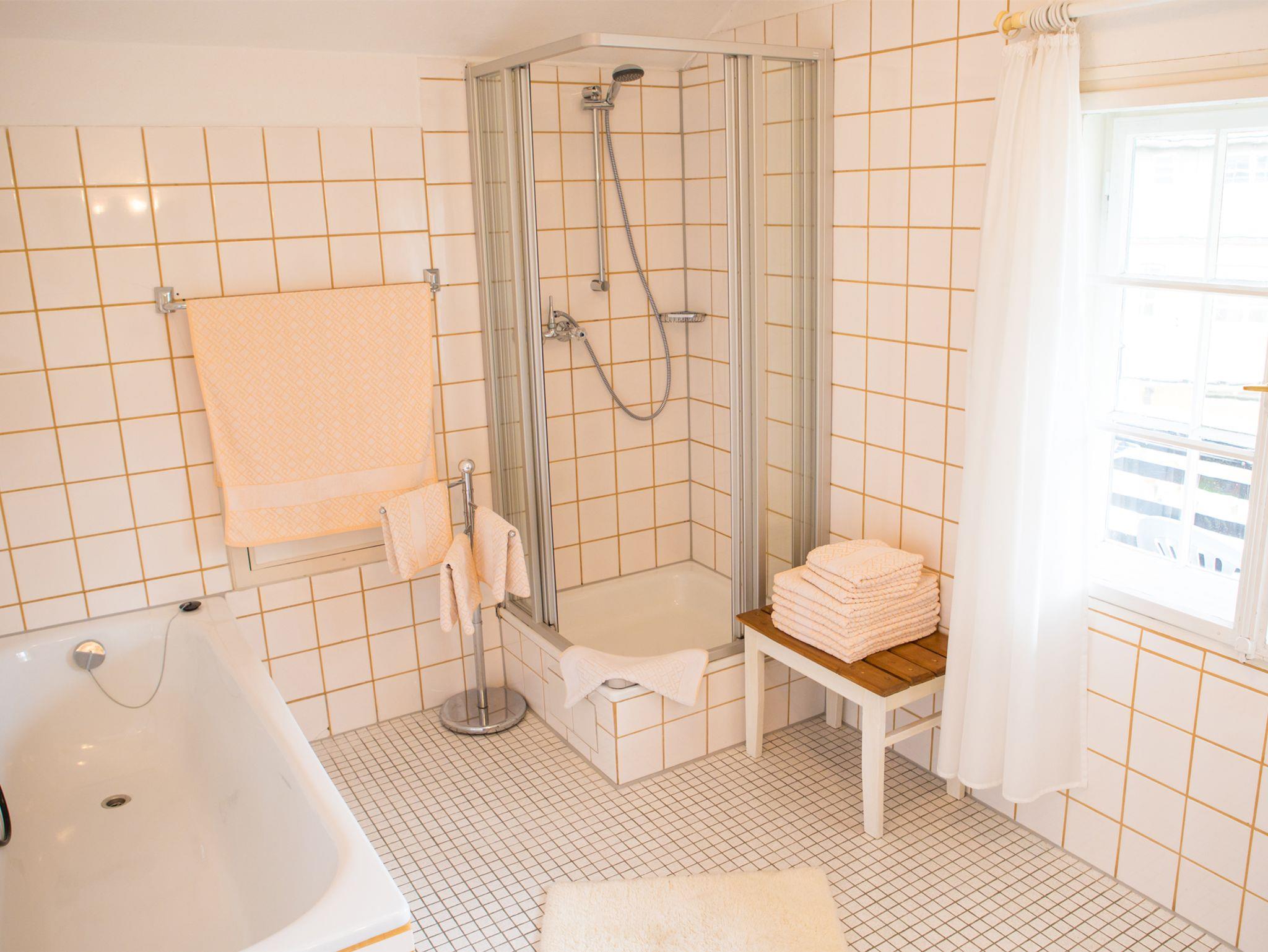 Das Ferienhaus mit Erd- und Obergeschoss und rd. 165 m² Wohnfläche bietet Platz für maximal 10 Personen. Im Obergeschoss befinden sich 3 Schlafzimmer für insgesamt 7 Personen, ein Bad mit Wanne und Dusche sowie eine separate Toilette. Das Obergeschoss verfügt außerdem über einen Balkon. Zu ebener Erde laden das gemütliche Wohnzimmer, die Wohndiele oder die Terrasse zu geselligem Beisammensein ein. Außerdem gibt es im Erdgeschoss ein Schlafzimmer mit Doppel- und eines mit Einzelbett, ein Bad mit Dusche als auch ein separates WC.