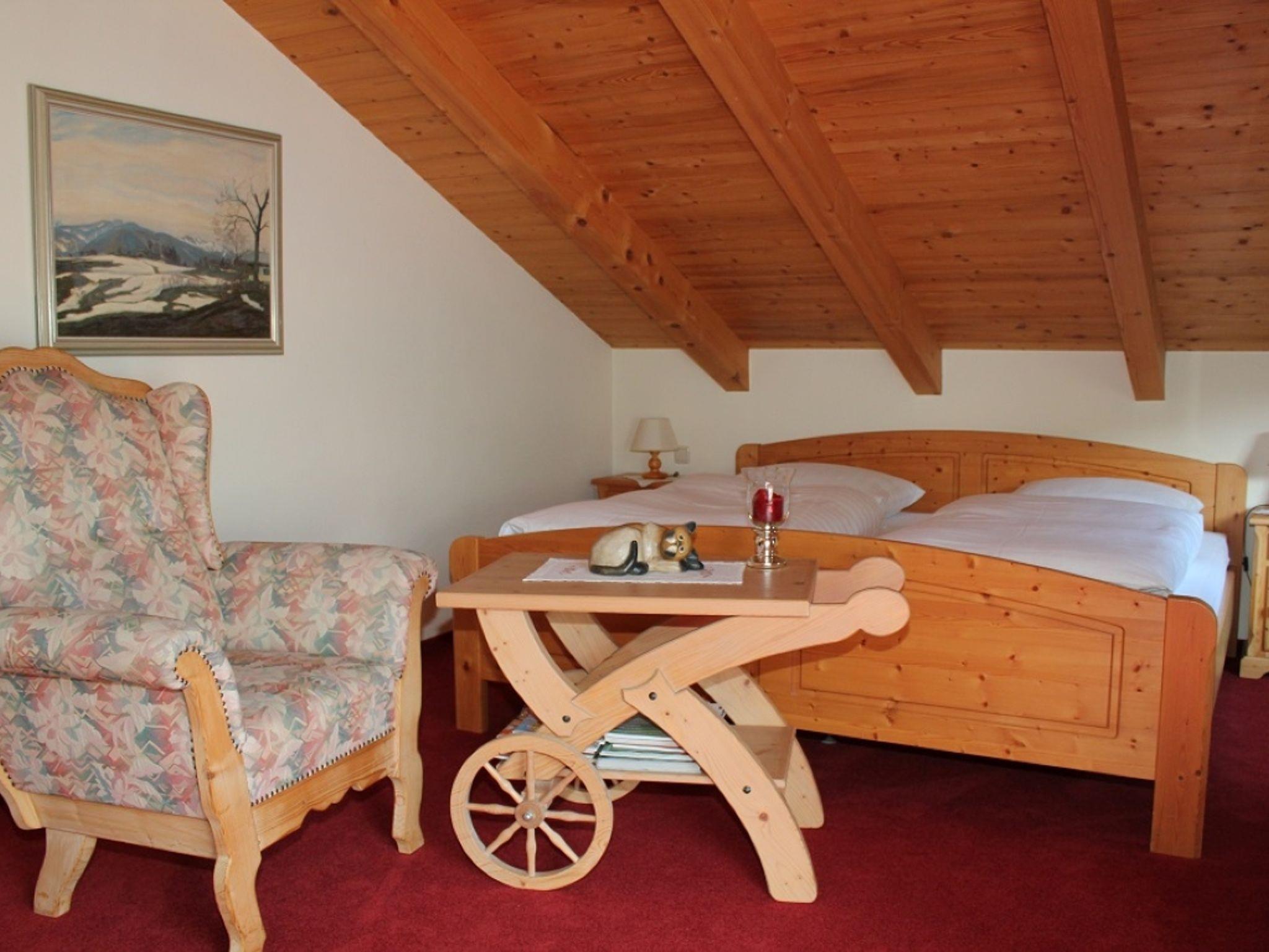 Auf 65qm sind die Räume ideal angeordnet: 1 Schlafzimmer mit Doppelbett, das groß genug ist, um evtl. ein Kinderbettchen aufzustellen; das Wohnzimmer ist ein Mehrfunktionsraum mit ausziehbarer (Doppelliege-)Couch, 2 bequemen Sesseln und Tisch (kann also auch als 2. Schlafzimmer verwendet werden) außerdem bieten eine weitere Sitzbank, Stühle und Esstisch den idealen Rahmen für ein ausgiebiges Frühstück oder das Essen in der Familienrunde. In der kleinen Küche ist voll ausgestattetmiteinem kleinen Essplatz für das Frühstück. Das Bad ist kombiniert mit Dusche und WC und ist großzügig mit Schränken und Ablagen, sowie Fön und Kosmetikspiegel ausgestattet. Die Zimmer liegen zur Südseite und vom großen Balkon ist der Blick auf den Watzmann genau das, was man sich von einem Urlaub in Berchtesgaden erwartet. Hier können Sie den ganzen Tag auf Liegen oder Gartenmöbeln die Sonne genießen, hören das Rauschen der Königsseer Ache und blicken auf die sattgrünen Kastanienbäume im Garten.